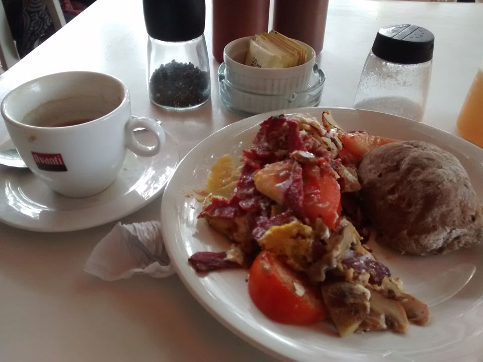 Einige Leute checkten aus und ich war etwas zu spät dran. Viel Zeit bis zum Boot und so ging ich dann erst mal was essen – im Red Tomato.