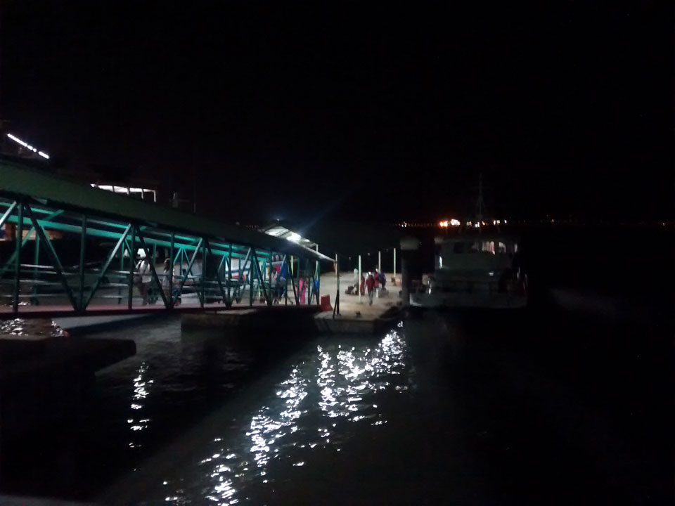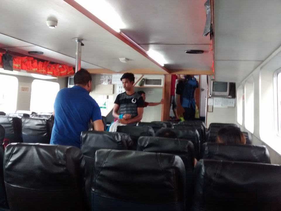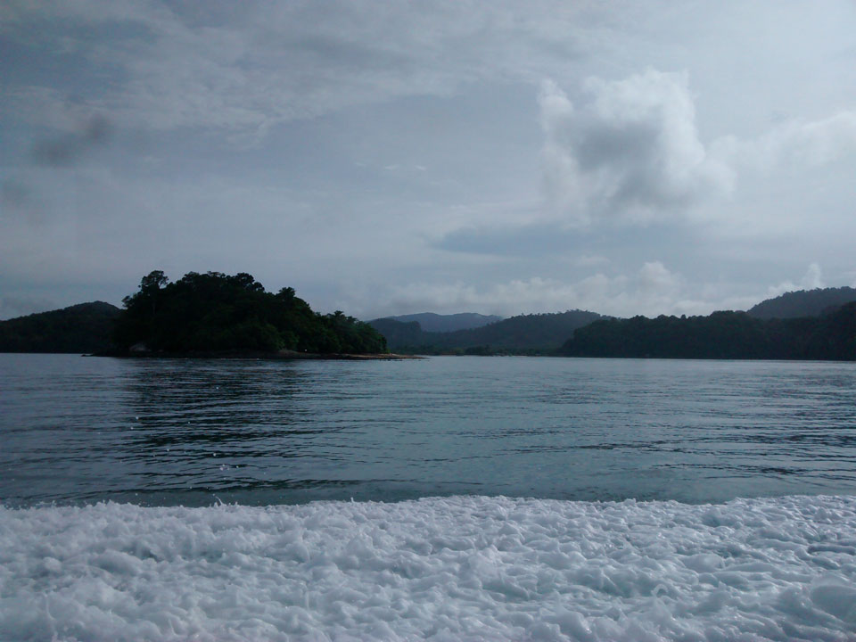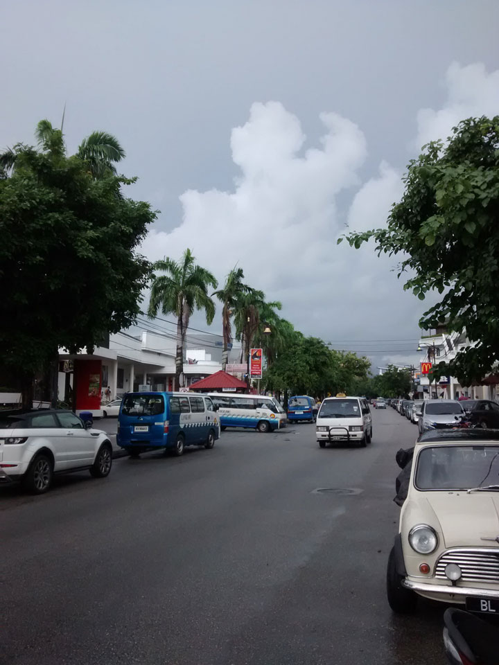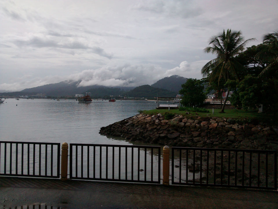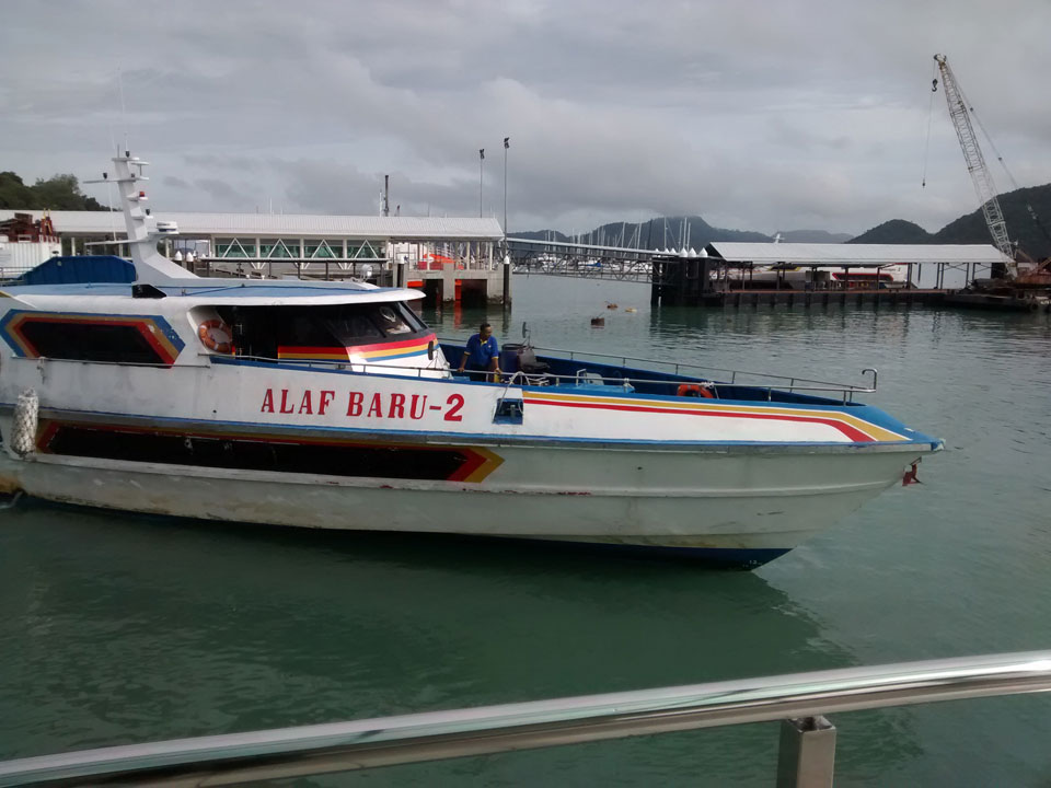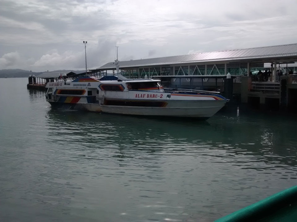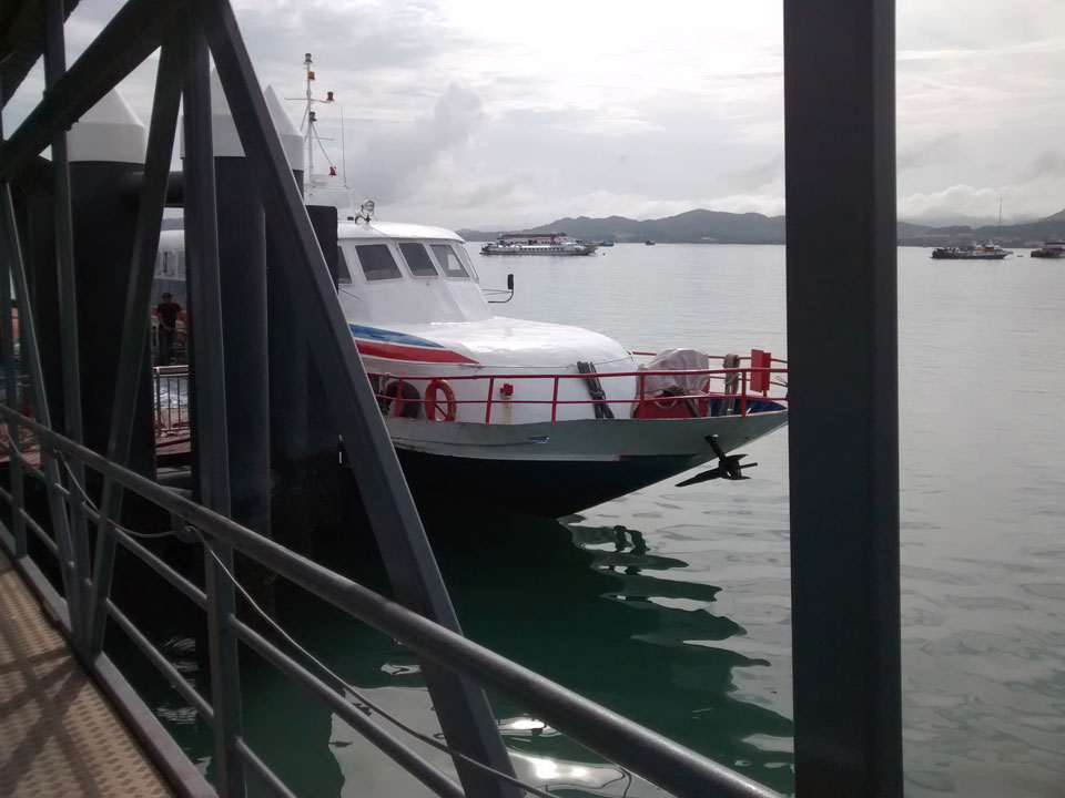 Schließlich saß ich etwas im Hostel Internet. Der Engländer, wohl etwas älter als ich und seine junge Frau redeten, putzen und als es dann 16:00 wurde ging’s schließlich los. Er fuhr mich für 30 (€8) zur anderen Inselseite an den Hafen. Da kaufte ich das Ticket (MYR 70 = €17) und noch etwas für die Fahrt.