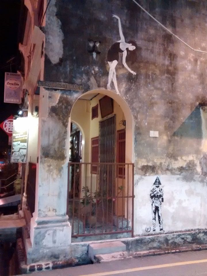 Ich traf mich noch auf ’nen Drink in der Reggae Hostel/Bar und war dann nach langem Quatschen um 2 wieder im Hostel. Mein Long Island Lizard Drink hatte mich aufgeputscht. Erst nach 7(!) kam ich zur Ruhe. Da wurde es schon wieder hell. Wenig Schlaf hat wohl doch wenig mit Müdigkeit zu tun aber OK. Erst mal auf der letzten richtigen Station und Penang gefällt mir mit den chinesischen Häusern und vielem billigen Essen schon mal ganz gut.