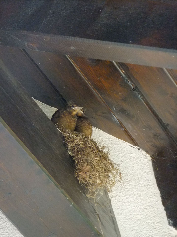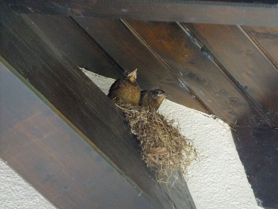 Nach dem Kaffeetrinken machten die Amsel-Babies Anstalten, mal zu fliegen. Ich filmte vor mich hin und nach ein paar Minuten machte eine tatsächlich eine Hüpfer und flatterte los. Schön zu sehen und per Whatsapp auch geteilt.