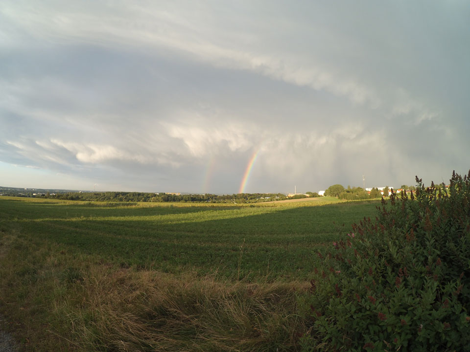 Mit dem Sonnenuntergang gab’s ’nen fantastischen Double Rainbow. Selten so klar gesehen.