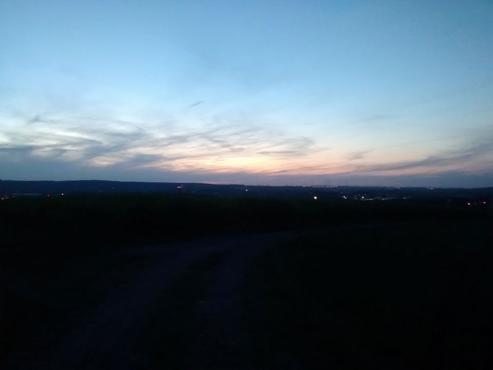 Der ganze Mist wurde mir zu viel. Ich joggte nach 21:00 erst im fast Dunkeln. Die Felder sind teilweise gemäht – lange Stile machen den Weg da etwas spießig.
