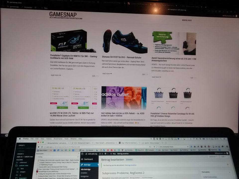 Ich hatte ja schon vor Monaten mal kurz dran gearbeitet. Jetzt machte die BG-Bilder und time-since klar. Als nächsten müssen die Links rein, dann endlich mal die favicons zu den Quellen. Den Dupe-Finder für HN fand ich auch wieder. Ich könnte da sicher meinen Blog mit dem BlackSlate Theme erst mal selber auf Dupes checken. Es wird wichtig, dass ich die Post-Id, die von WordPress über XMLRPC zurück kommt, wieder in DB übernehme, damit ich eine komplette Verbindung der Daten erreichen kann.