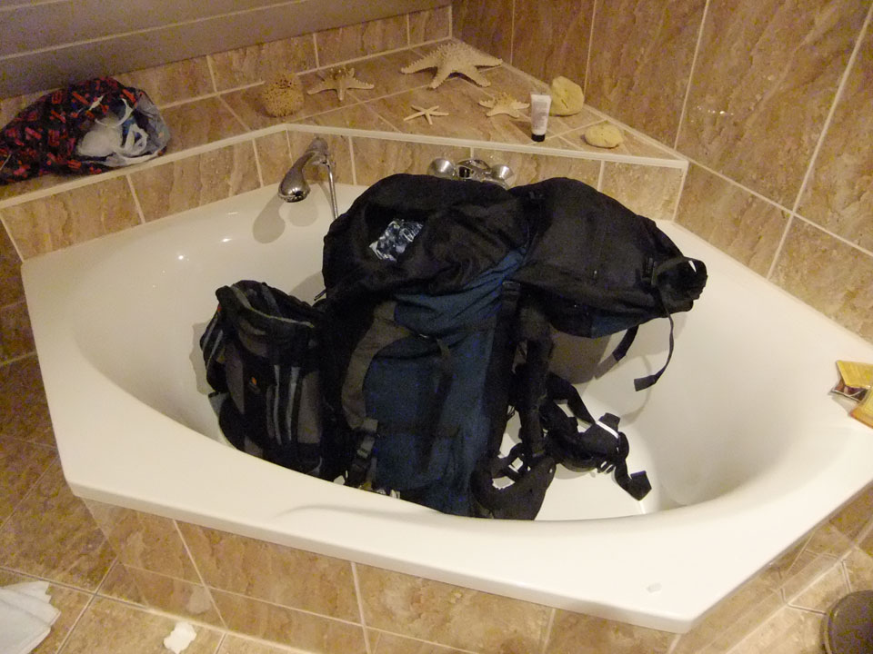 Ich packte dann etwas und holte die Rucksäcke aus der Garage zurück. Winzige Insekten, eventuell Bugs fand ich – tot. Die kleinsten Sachen killte ich schnell aber das killte auch meine Stimmung. Wieder auf Reisen mit den ganzen Tierchen – eigentlich hatte ich noch keine Lust darauf wieder.