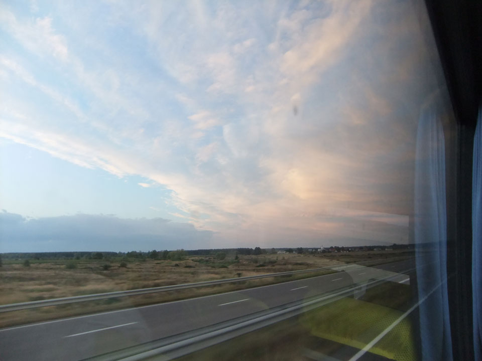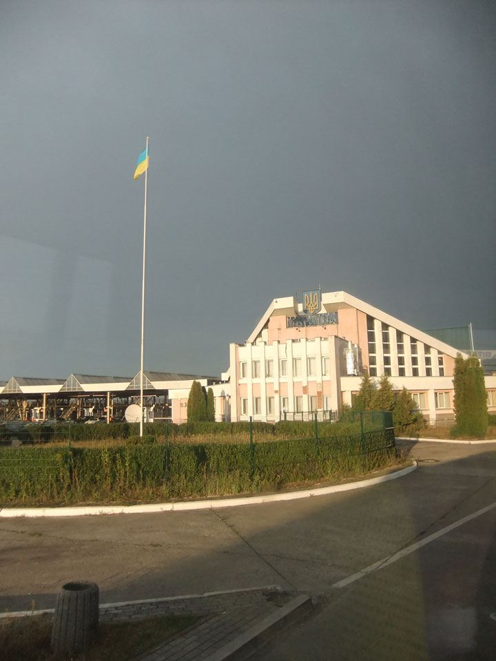 Eine russische TV-Serie wohl über die guten alten Zeiten hatte eine extremst schiefe und nervige Startmusik. Mir wurde davon fast schlecht. Es ging nun aber durch die polnische Pampa bis zur ukranenischen Grenze. Trotz leerem Bus war die Wartezeit erheblich. Whatsapp schickte auch Nachrichten durch sign-in Pages der WLAN Hotspots. Ebenso war Facebook mit der mbasic.facebook.com Domain funktionstüchtig. Nach ca. einer Stunde waren wir durch und es ging durch die gleich anders aussehende Ukraine. Ältere Häuser, huckeligere Straßen und alles etwas etwas verarmt – +1 Zeitzone.
