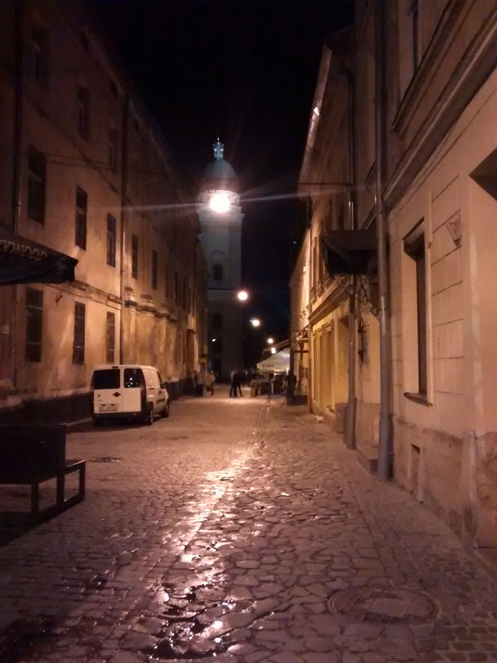 Es wurde dunkel und als ich das nächste Mal auf mein Handy GPS schaute, waren wir schon fast in Lviv. Pünktlich legte der Bus am Busbahnhof an. Ich konnte mich dunkel an die Location von vor 8 Jahren erinnern. Damals wurde ich abgeholt und auch jetzt holte mich jemand ab. Ich gab per SMS meinen Standort durch und wenig später kam ein Mann an, der mich zu seinem großen Auto brachte. Gutes English, sein Vater auch dabei und es wurde gefragt, wie Deutschland nun aussieht, Flüchtlinge und viele und wenig in der Ukraine.