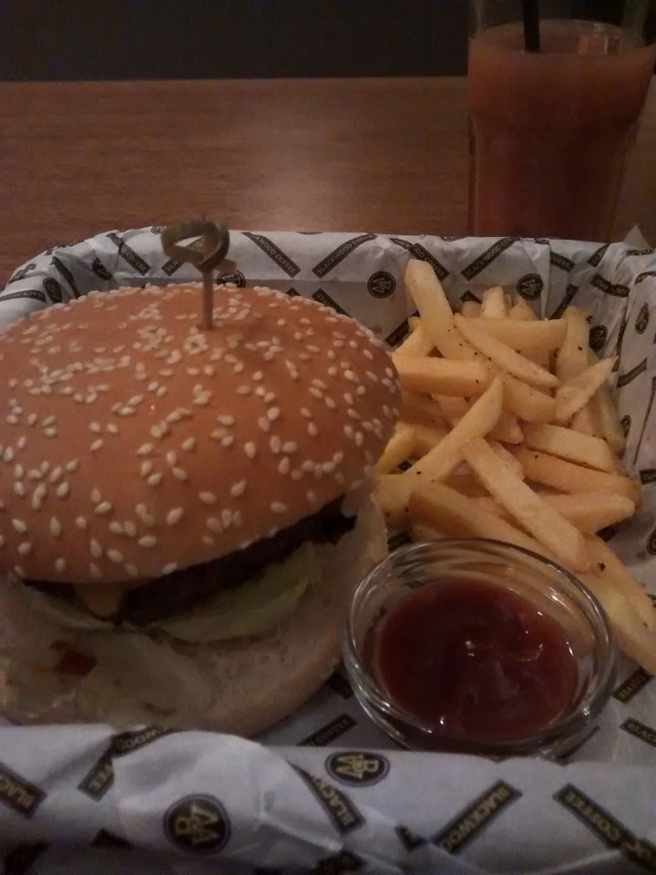 Gegen 22:00 dann los und wenig später sah ich schon ein Restaurant am Schließen, das nächste dann war bis 23:00 offen – Blackwood Burger. Da hatte ich für 80 UAH einen Burger samt Grapefruit Saft und war erst mal zufrieden.