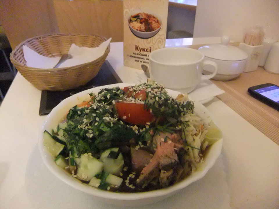 Soweit ist’s noch nicht aber Hunger hatte ich inzwischen. Im Restaurant „Krim“ der Krimtataren gab’s gute Suppen. Dann einkaufen auf dem Rückweg für ca. €10 und im Apartment schließlich mal arbeiten.