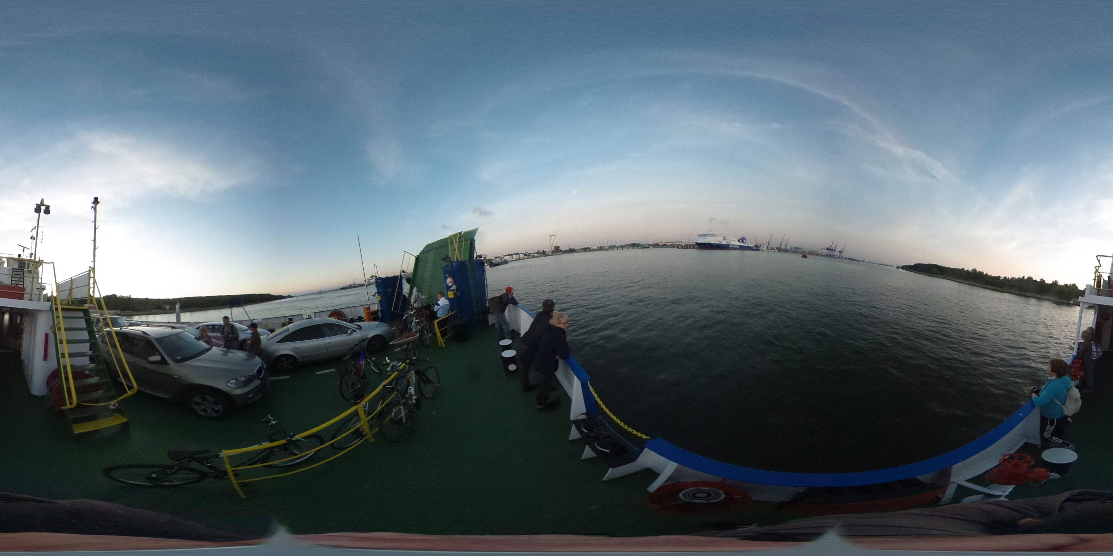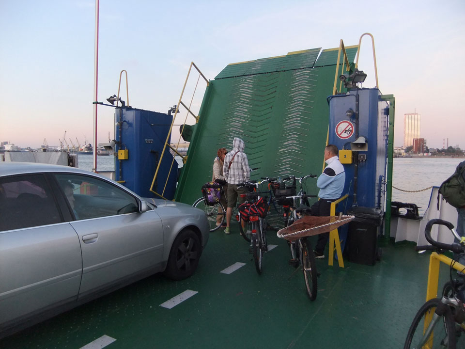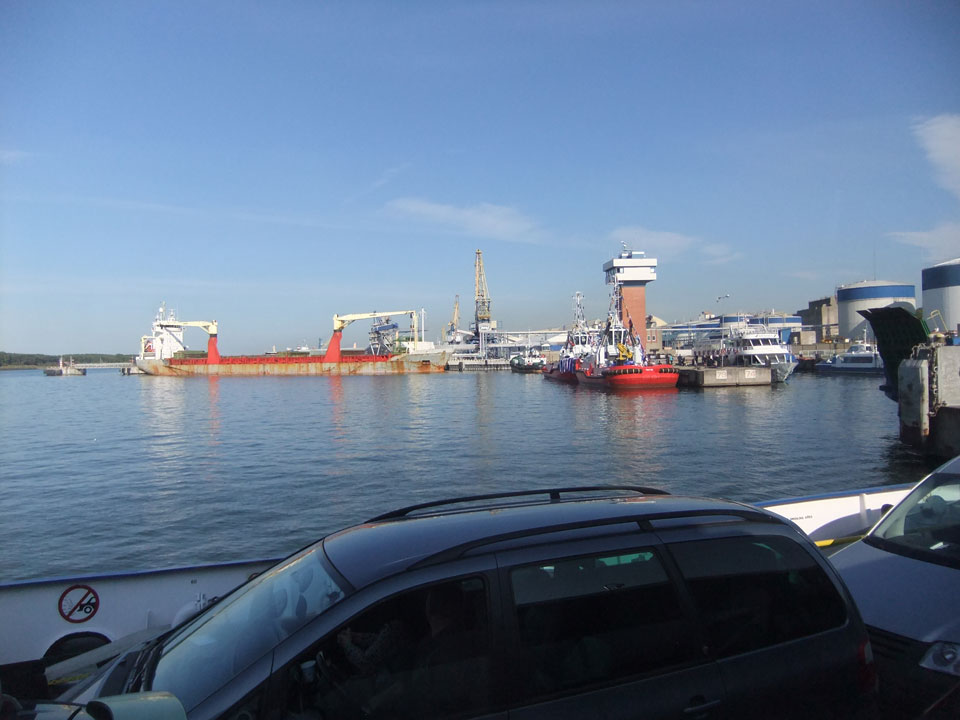 Der Tag neigte sich dem Ende und ich kam auch zum Ende der Strecke. Gegen 19:00, also fast 5h auf dem Rad, kam ich zur Fähre. Ein Ticket wurde nicht verlangt. Der kurze Übersetzer von vielleicht 10′ brachte mich zurück nach Klaipeda.