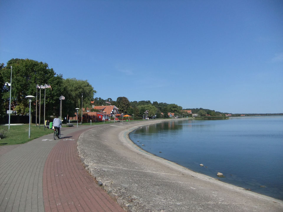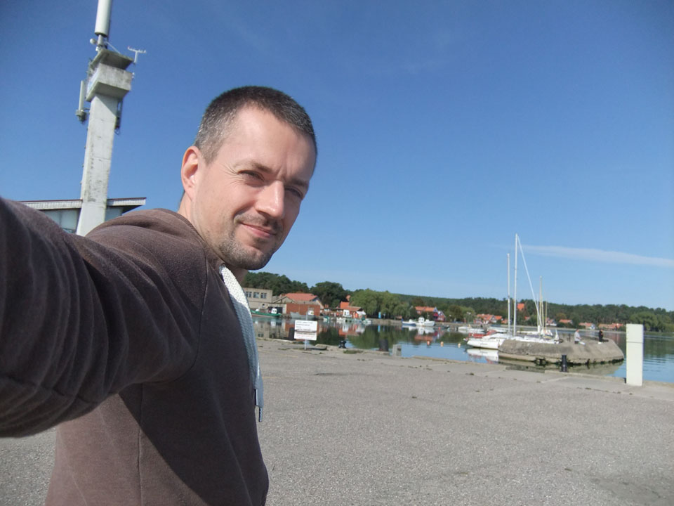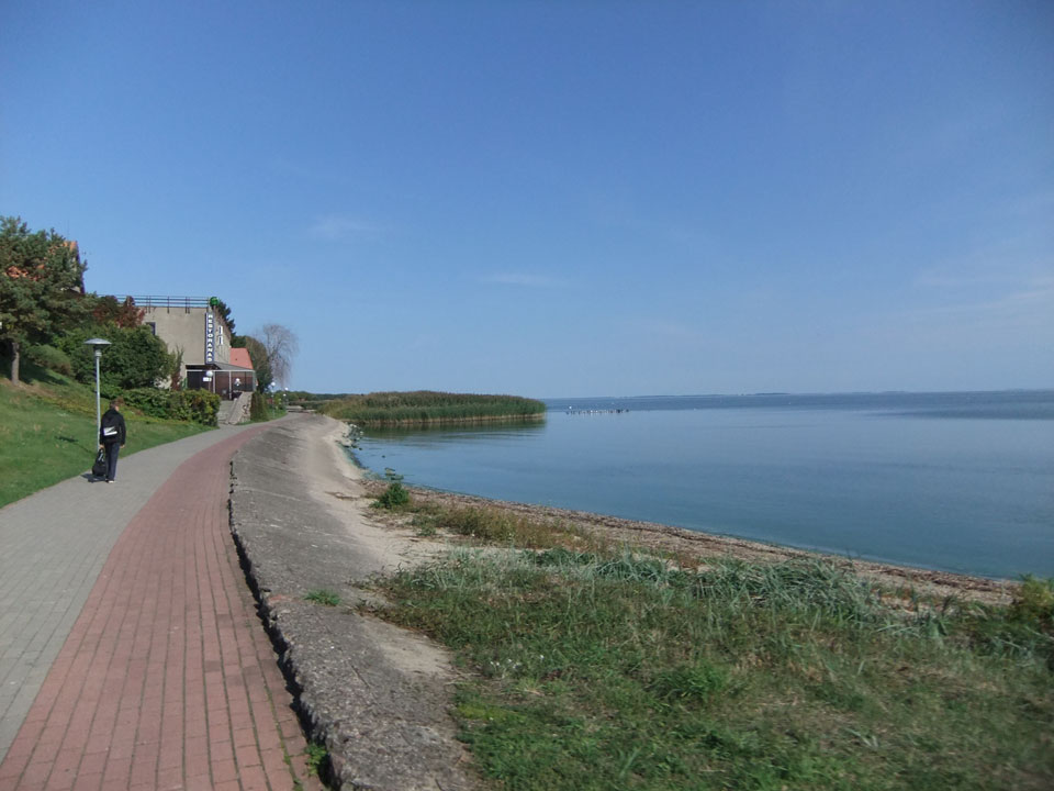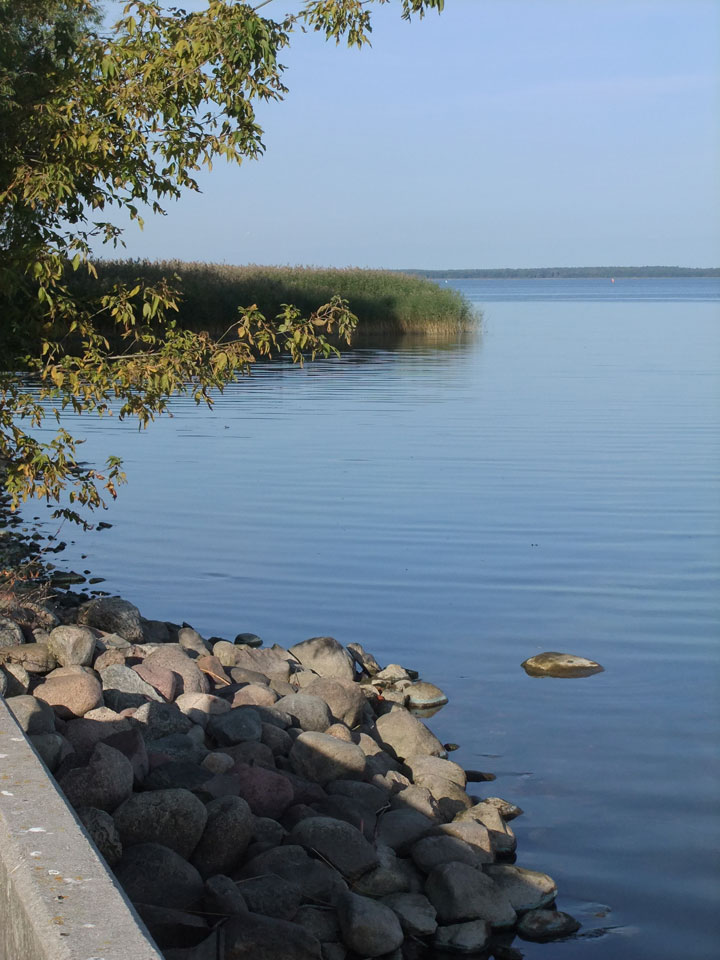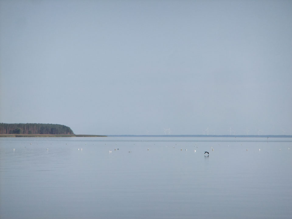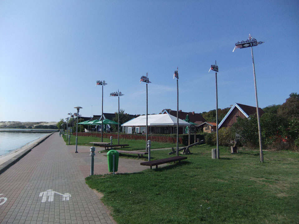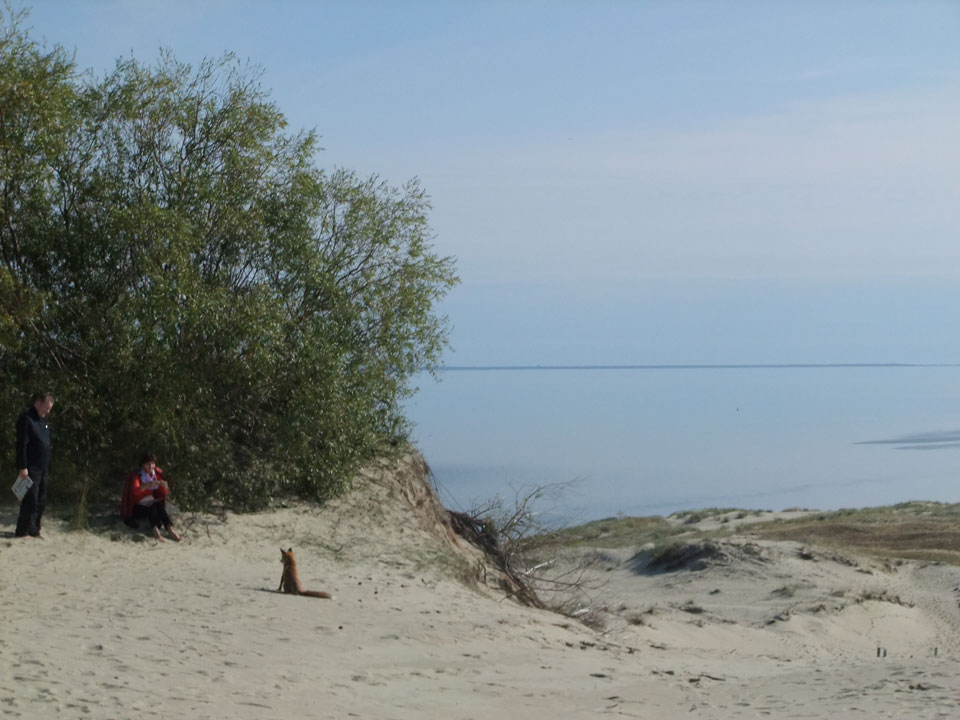 Super Wetter heute und da es nun schon Mittag war, holte ich mir was zu essen. Eine geräucherte Makrele (€5) war super. Die Spatzen hier sind zahm und picken einem fast das Brot vom Teller. Gut gestärkt ging’s schließlich an die Rückfahrt. Ganze 50km lagen vor mir. Der Radeweg Nr. 10 führt den ganzen Weg von Nida nach Smiltynė, wo die Fähre rüber nach Klaipeda fährt.