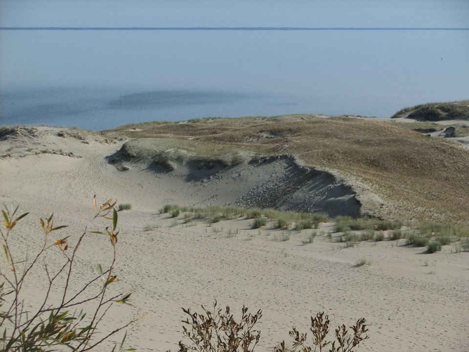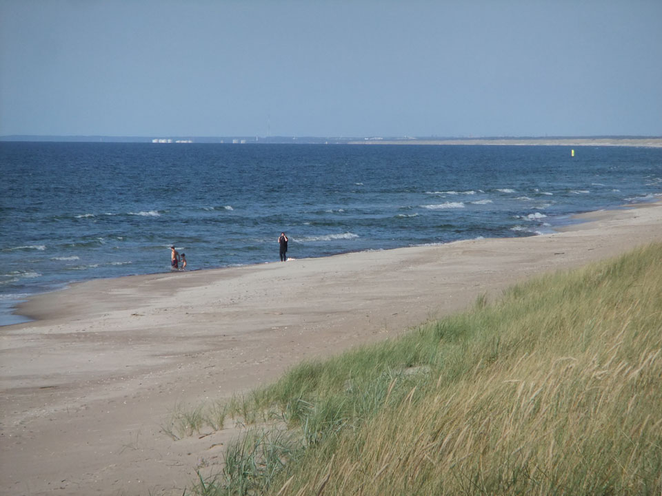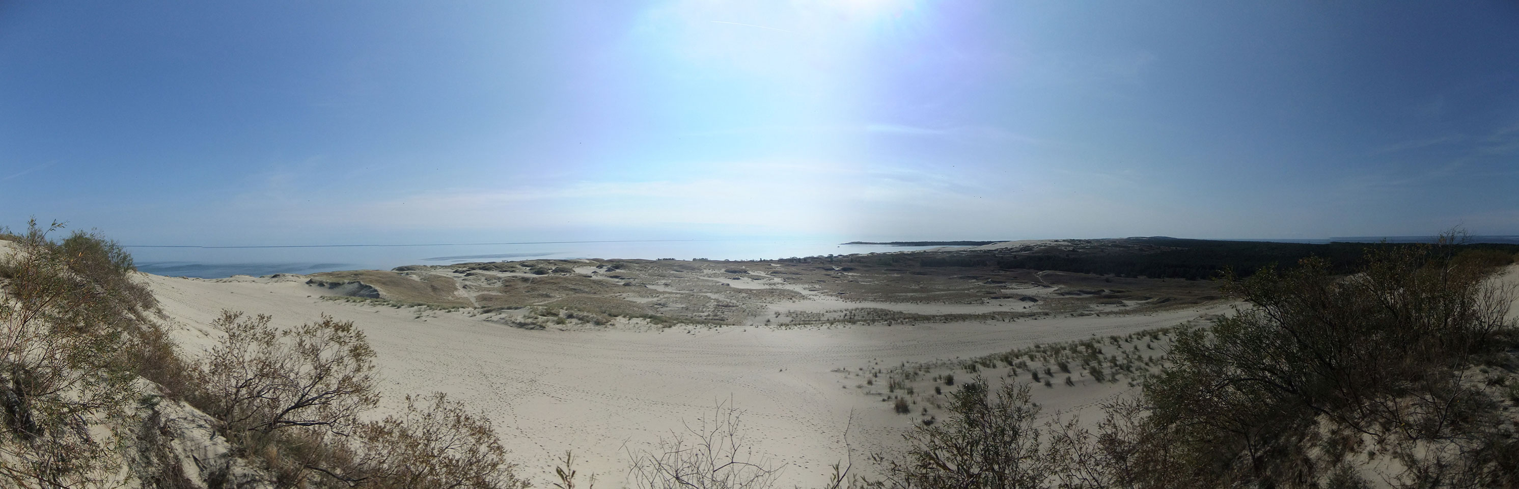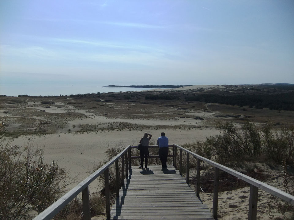 In Nida (ex Nidden) schaute ich mich erst mal etwas um, radelte dann zur großen Düne, wo man auch heraussteigen konnte. Von dort nach Süden schaut man in den russische Kaliningrad-Bezirk. Ein paar Touristen waren auch da.