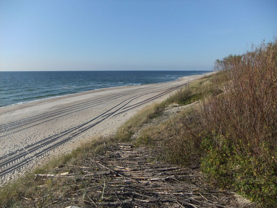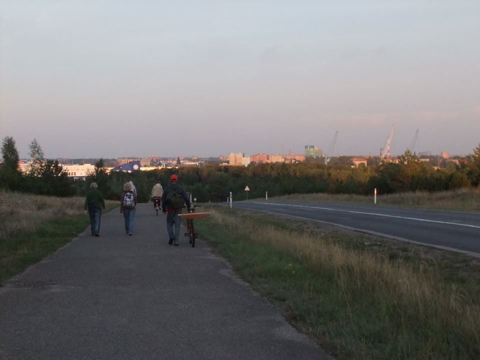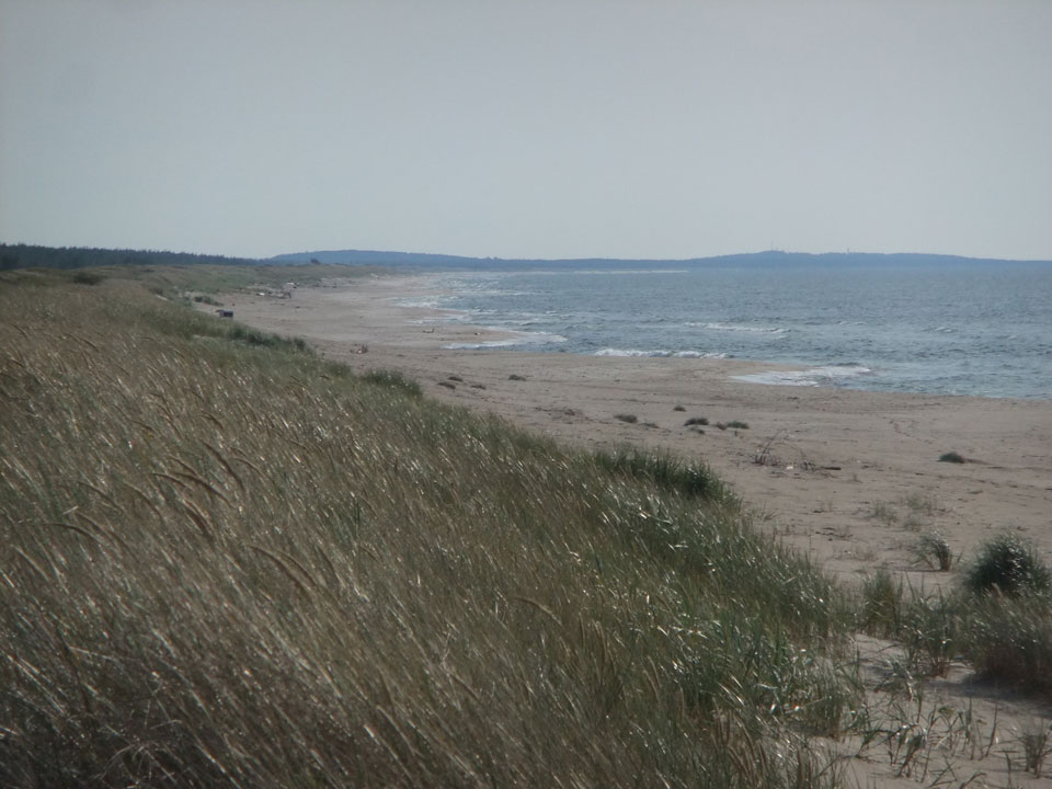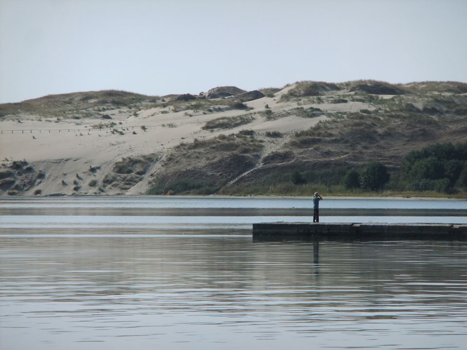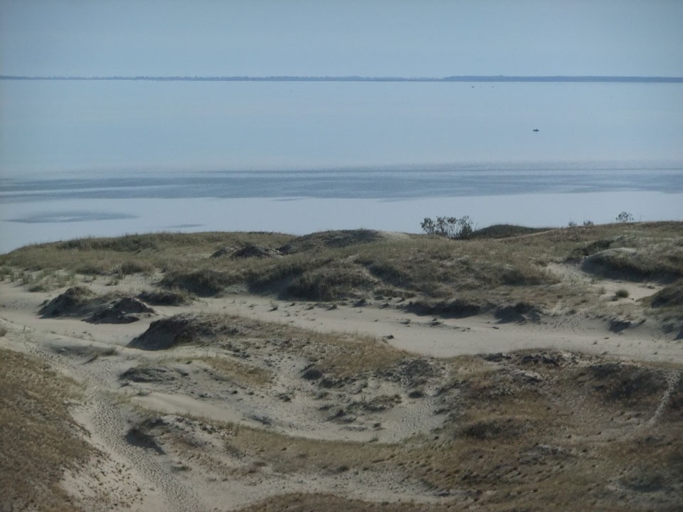 In Nida (ex Nidden) schaute ich mich erst mal etwas um, radelte dann zur großen Düne, wo man auch heraussteigen konnte. Von dort nach Süden schaut man in den russische Kaliningrad-Bezirk. Ein paar Touristen waren auch da.