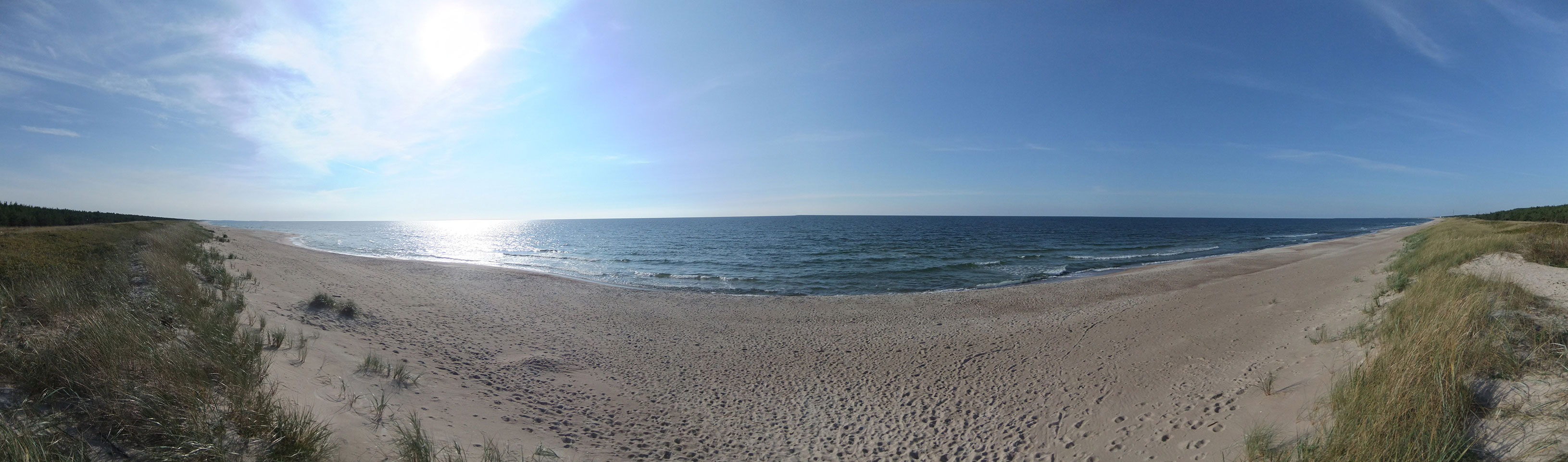 Kurz außerhalb von Nida besuchte ich kurz das Museum im Sommerhaus von Thomas Mann. Dann radelte und radelte ich. Ab und zu stieg ich mal auf eine Düne, oft war das verboten aber es gab halt auch einige Holzwege. Einige Leute gingen sogar baden. Auf kilometerweiten Sandstränden waren nur eine handvoll Leute unterwegs.
