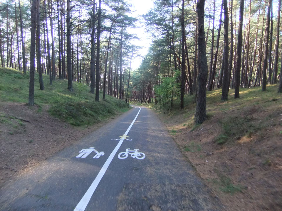 In Juodkrantė wollte ich eigentlich die Hexenschnitzereien im Wald sehen. Ich fuhr eine Abzweigung mit heftigen Hügeln. Ich kam aus der Puste und nach inzwischen um die 28 km merkte ich auch die Beine. Aus dem Ort ging’s nicht zurück auf die Route 10, sodass ich den Weg wieder zurückradeln musste.