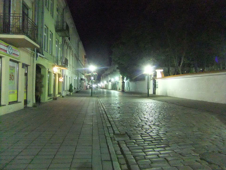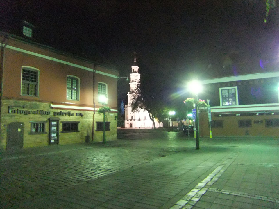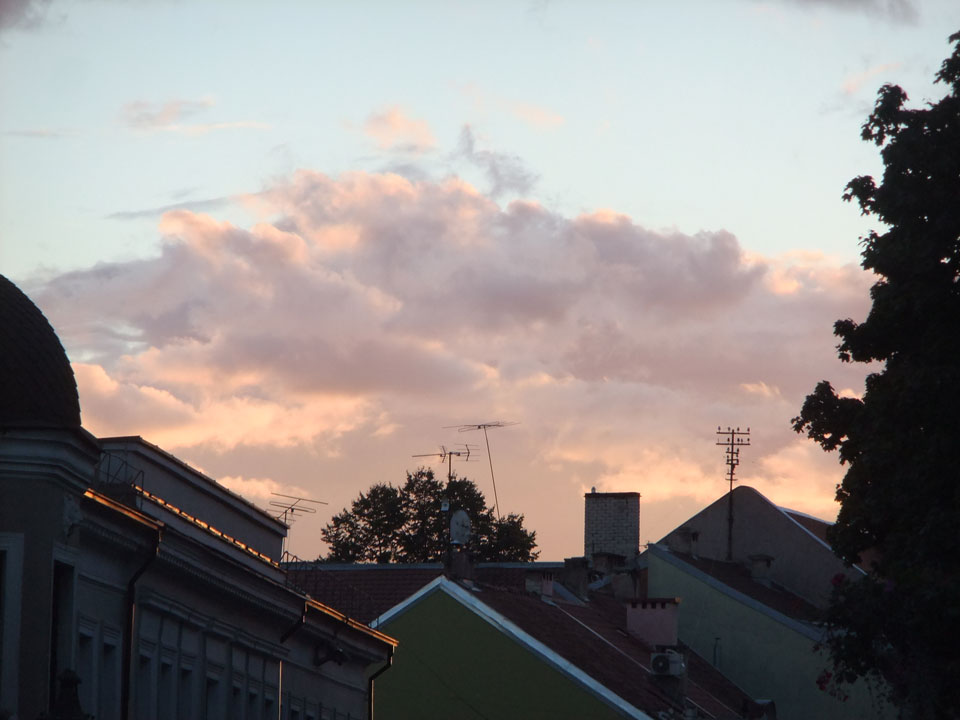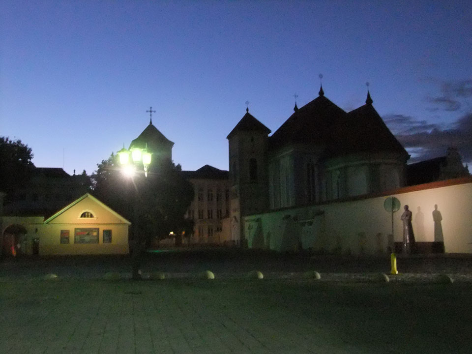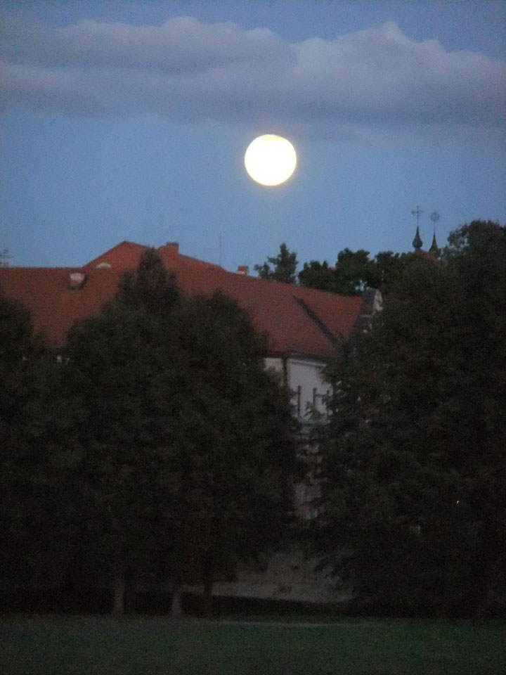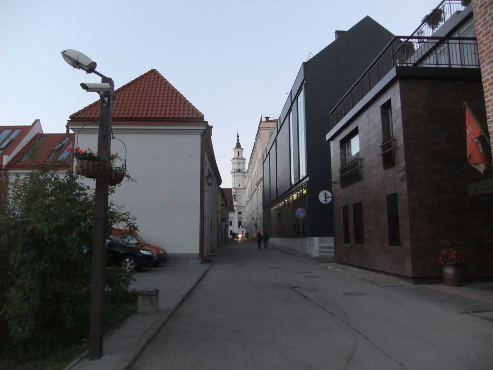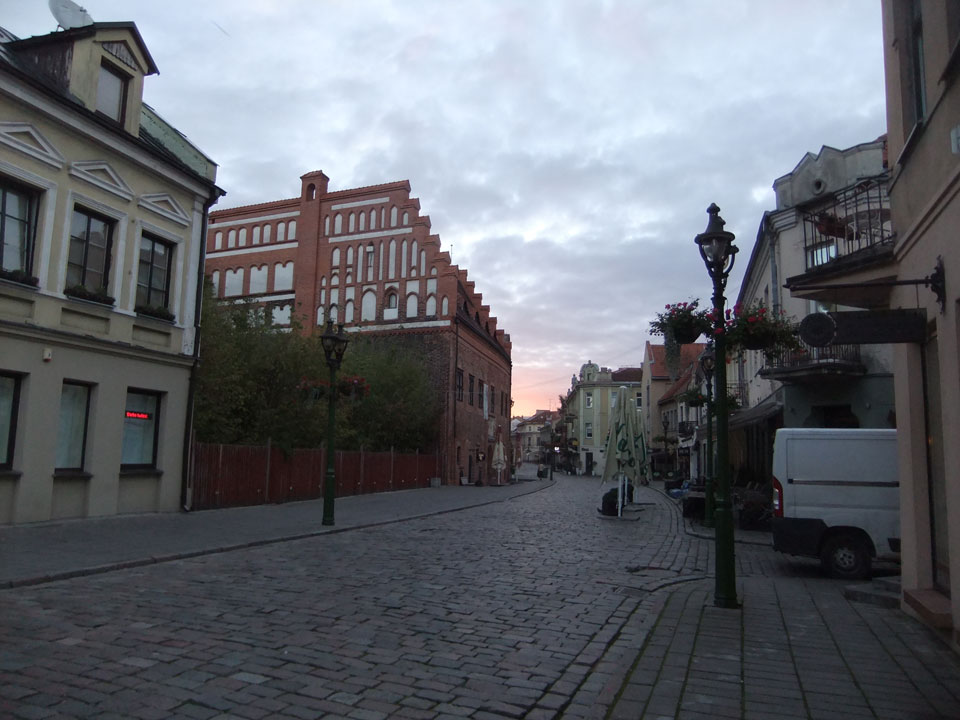 So saß ich bis in den Morgen da und wollte die Mondfinsternis anschauen. Im Web Livestream sah die ganz nett aus. Hier in Kaunas auf der Straße sah ich erst mal nur Wolken. Durch die vielen Häuser war das Blickfeld eingeschränkt und ich suchte nach einem besseren Platz. Ich stieg auf ’nen Hügel aber auch da war nichts zu sehen – Bäume usw. Ich gab’s dann fast auf, lief wieder runter in die Altstadt.