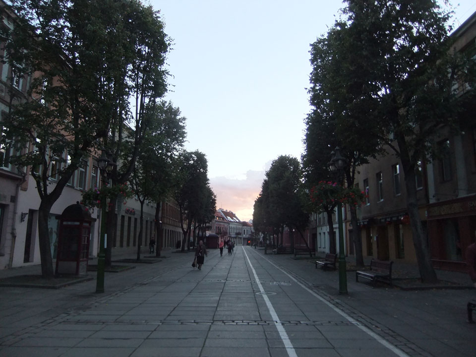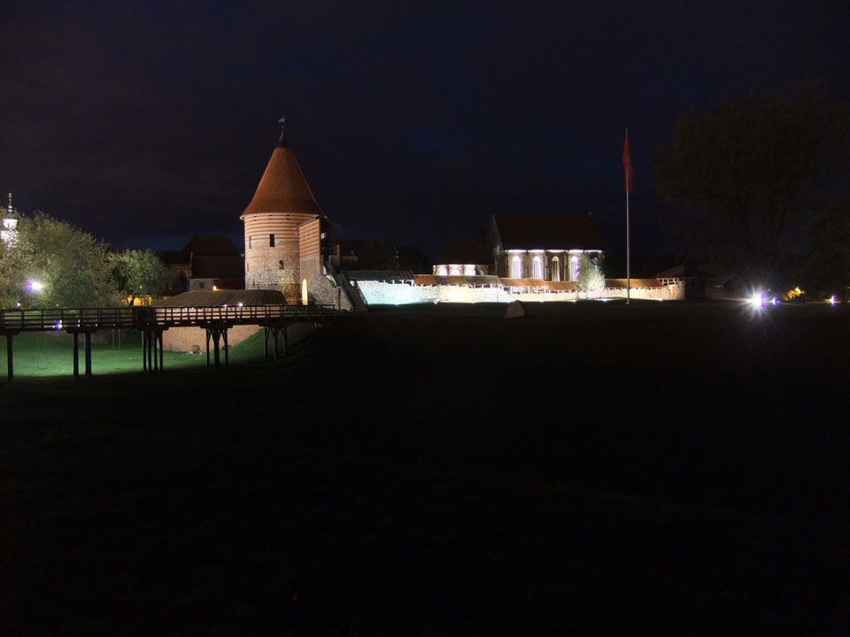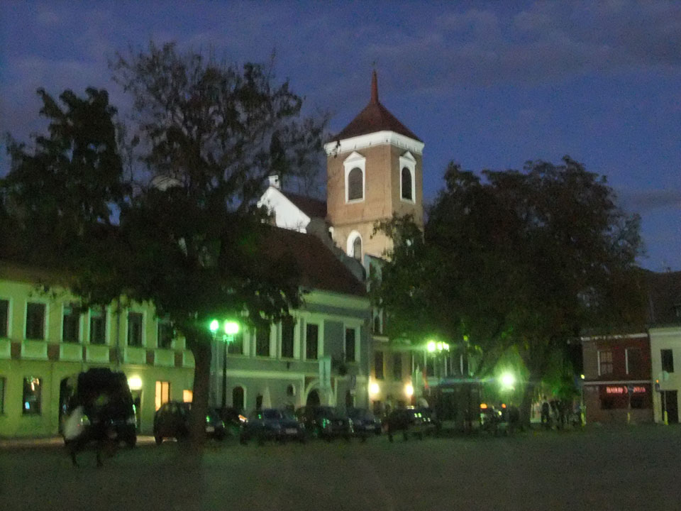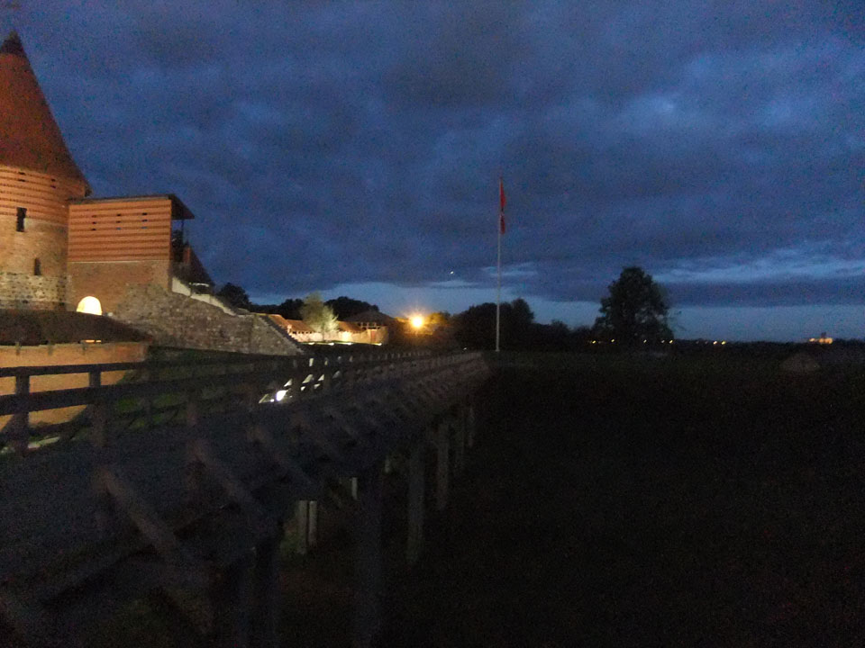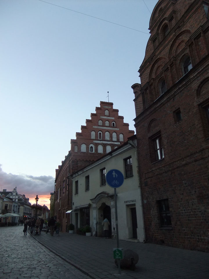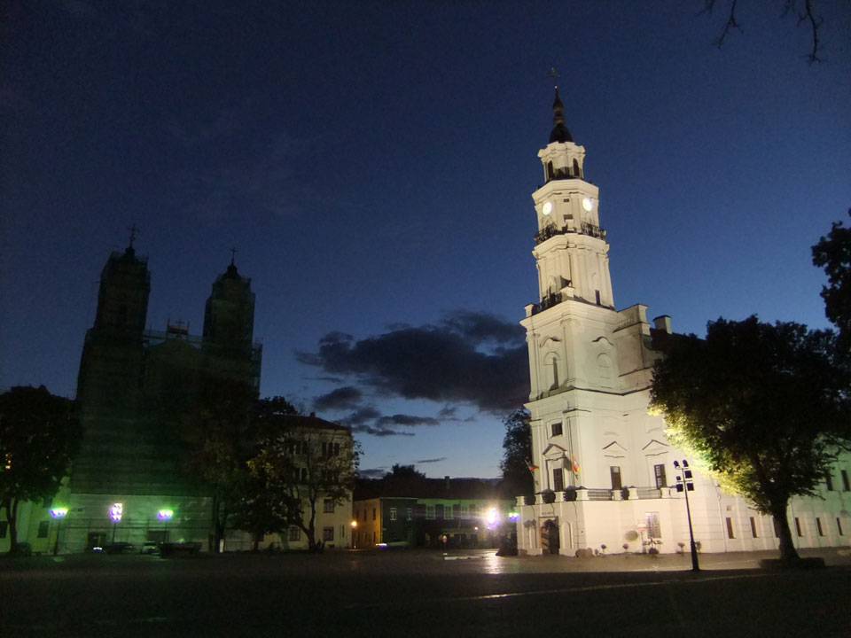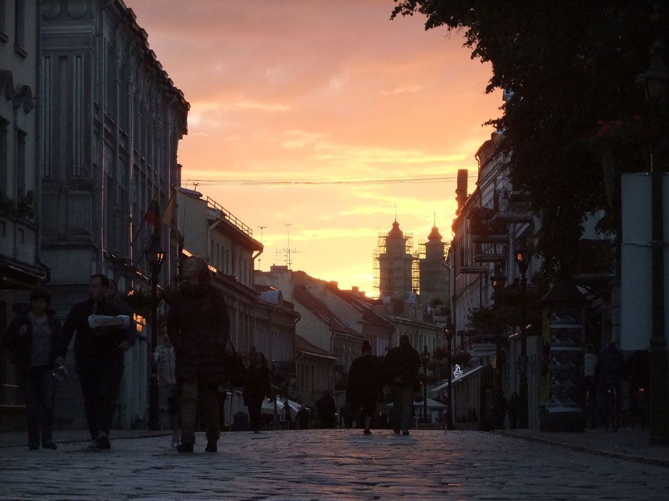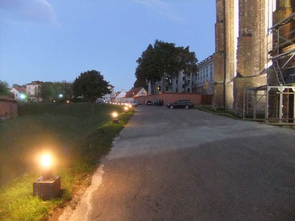 So saß ich bis in den Morgen da und wollte die Mondfinsternis anschauen. Im Web Livestream sah die ganz nett aus. Hier in Kaunas auf der Straße sah ich erst mal nur Wolken. Durch die vielen Häuser war das Blickfeld eingeschränkt und ich suchte nach einem besseren Platz. Ich stieg auf ’nen Hügel aber auch da war nichts zu sehen – Bäume usw. Ich gab’s dann fast auf, lief wieder runter in die Altstadt.