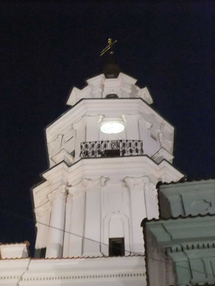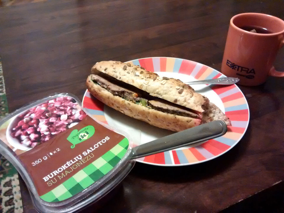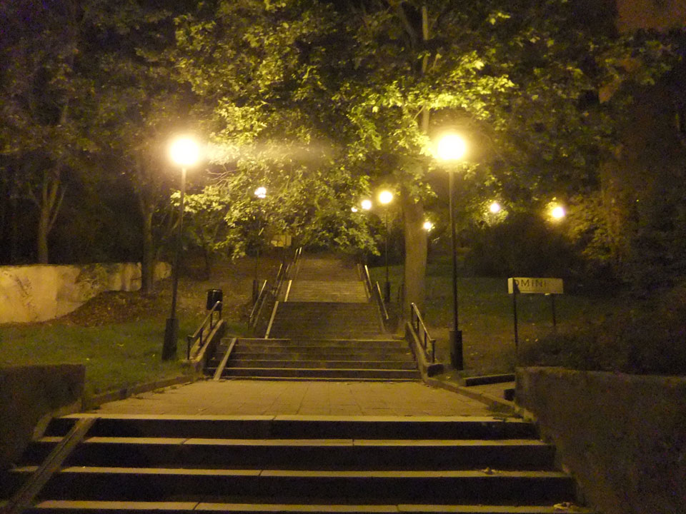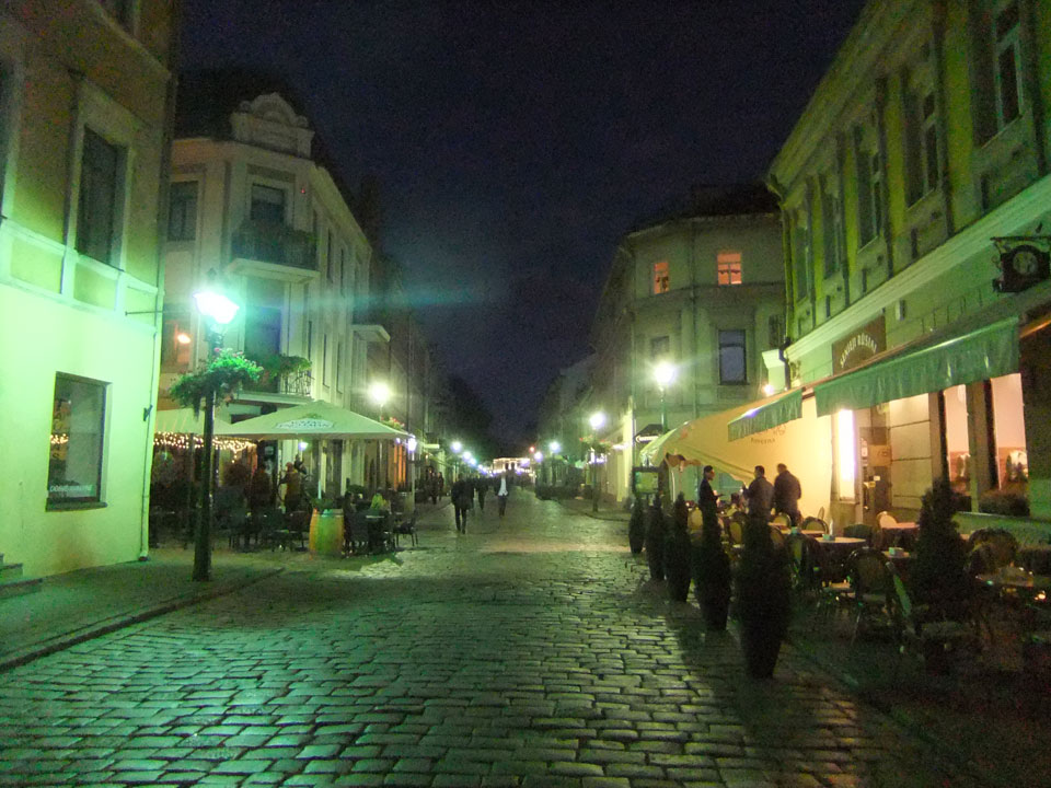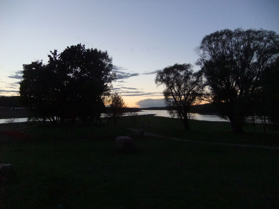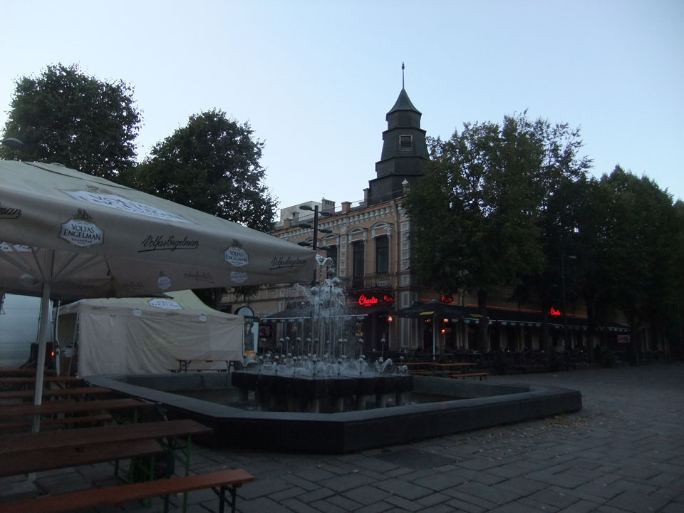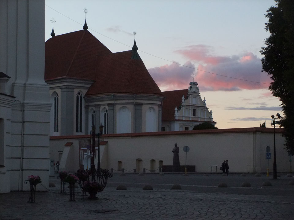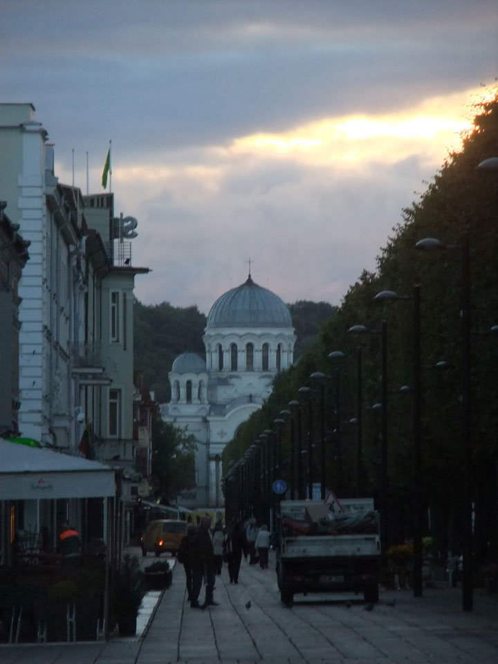 So saß ich bis in den Morgen da und wollte die Mondfinsternis anschauen. Im Web Livestream sah die ganz nett aus. Hier in Kaunas auf der Straße sah ich erst mal nur Wolken. Durch die vielen Häuser war das Blickfeld eingeschränkt und ich suchte nach einem besseren Platz. Ich stieg auf ’nen Hügel aber auch da war nichts zu sehen – Bäume usw. Ich gab’s dann fast auf, lief wieder runter in die Altstadt.