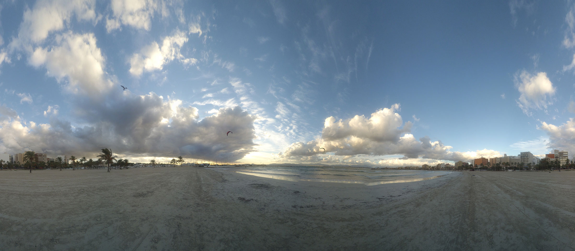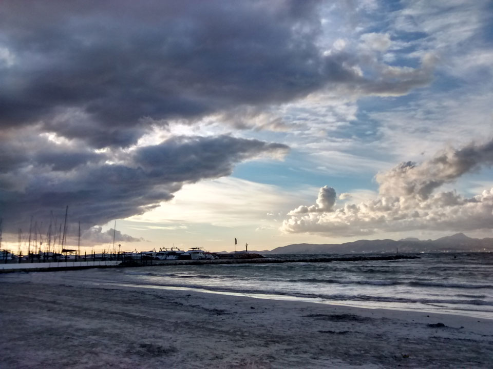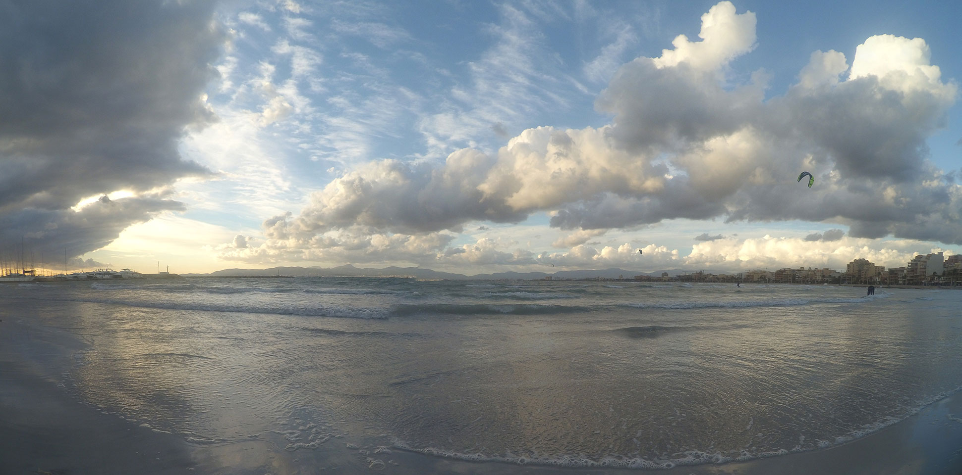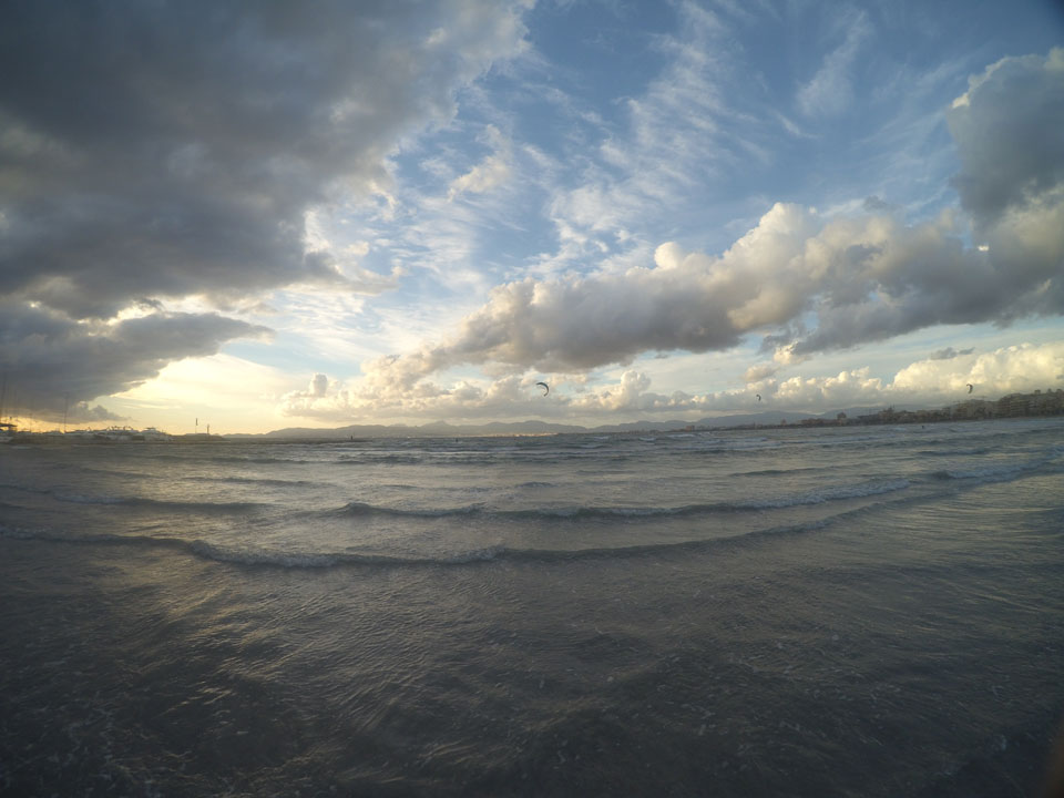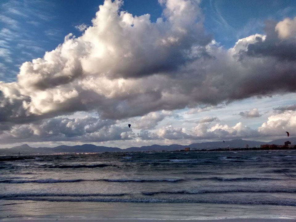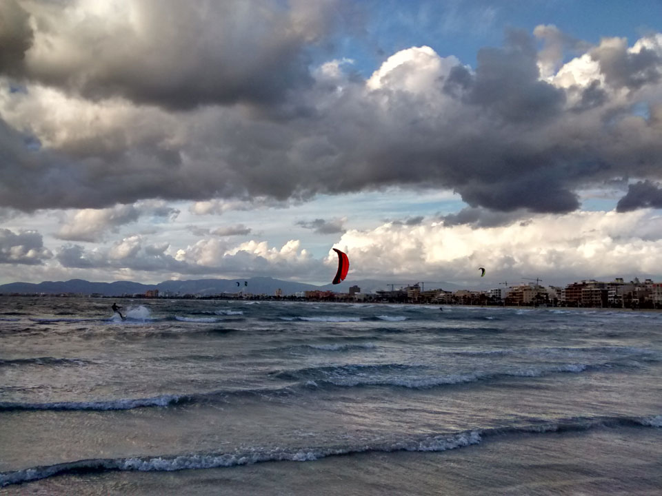 Der letzte richtige Tag hier in S’Arenal. Ich nahm meine Wäsche ab und ging zum Strand. Extrem windig. Die Sonnenschirme wichen den Kite-Segeln. Ein paar Kite-Surfer dreht ihre Runden und konnen auch so manchen Sprung hinlegen. Für einen letzten Badegang war’s mir dann doch zu frisch.