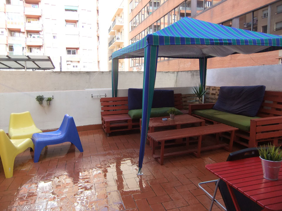 Heute endlich Sonne, Das Hostel hat eine nette Terasse oben und auch die Betten mit Vorhängen scheinen gut.