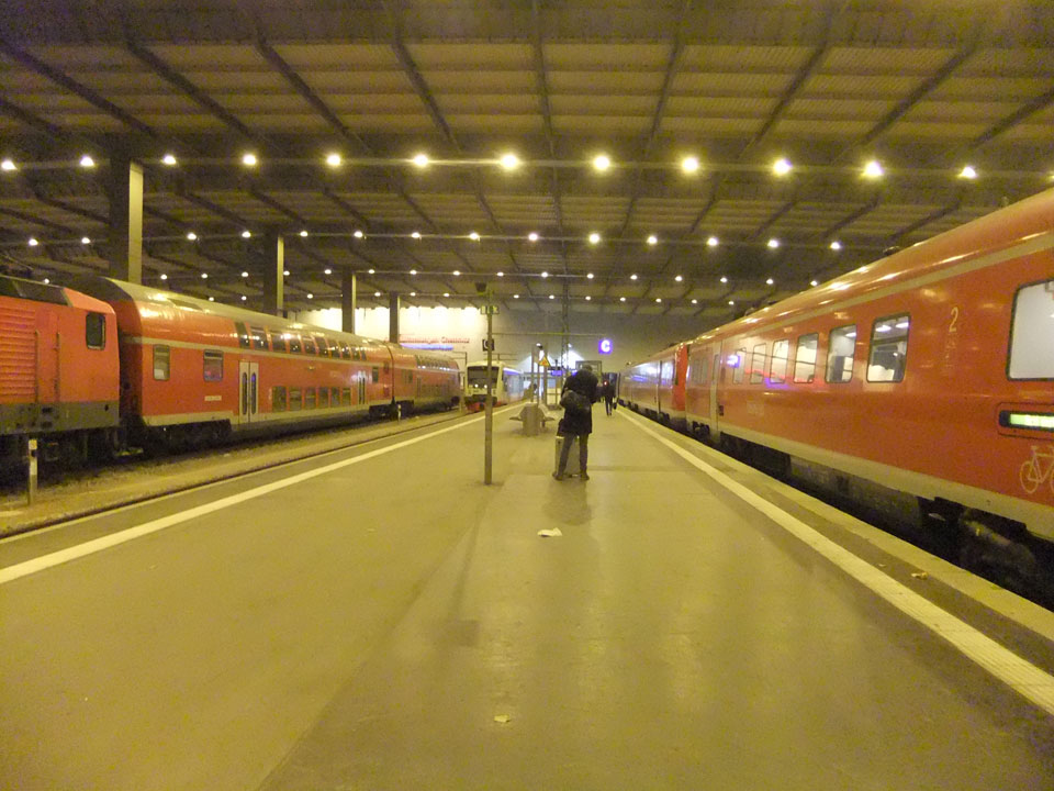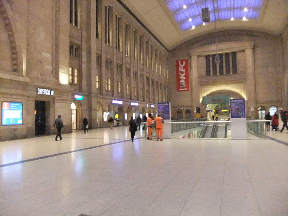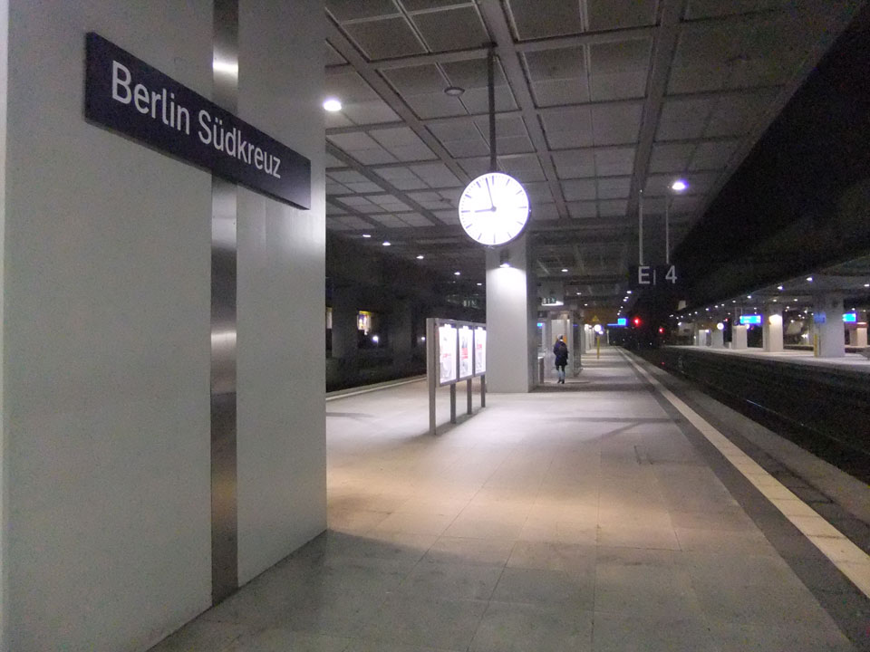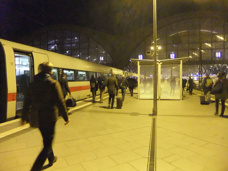 Der Ryanair-Flieger war wohl zu 100% voll. Dann in Schönefeld war’s frisch. Ich wollte mit einer früheren S45 nach Südkreuz fahren, doch die Züge fielen aus. Per Skype rief ein Bekannter an. Etwas Plaudern über Reisen anch Venedig, Barcelona oder Lissabon. Die S-Bahn um 20:21 stand da, fuhr aber erst gegen :26 ab. Ich hatte Bammel wegen meiner kurzen Wartezeit auf den ICE nach Leipzig. Dann auf Südkreuz musste ich aber nur eine Treppe runter un kam so von Bahnsteig 4 auf 11 in kaum einer Minute.