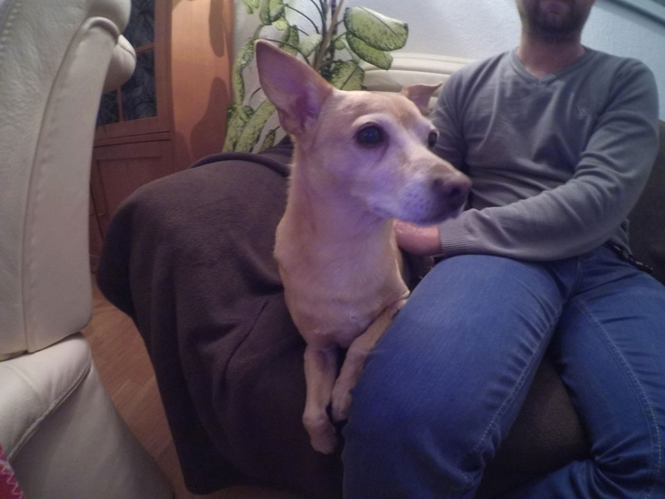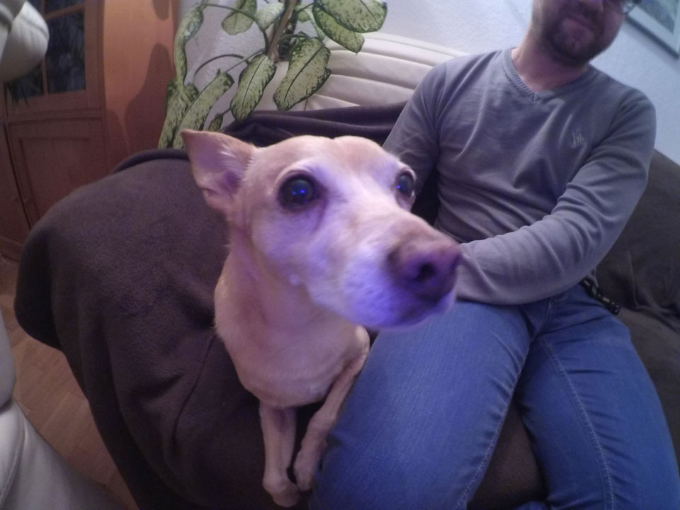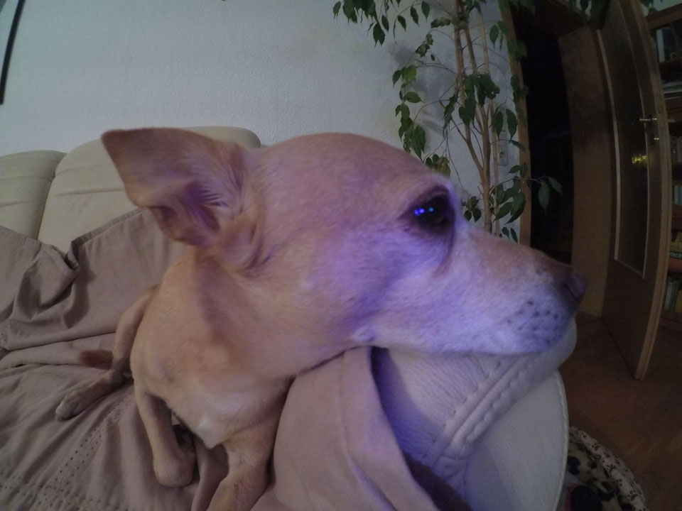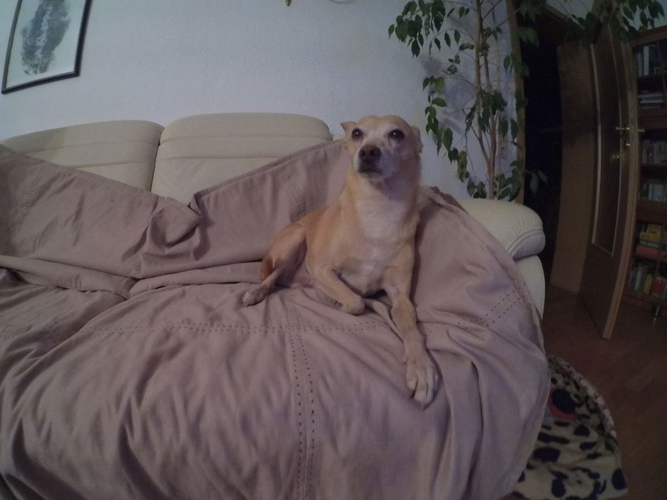 Ein Hündchen zu Besuch. Sehr netter Vierbeiner und so ruhig. Er putzt sich auch gern. Ich hatte dann mit meinen Sachen zu tun – vor allem dem Monitor.