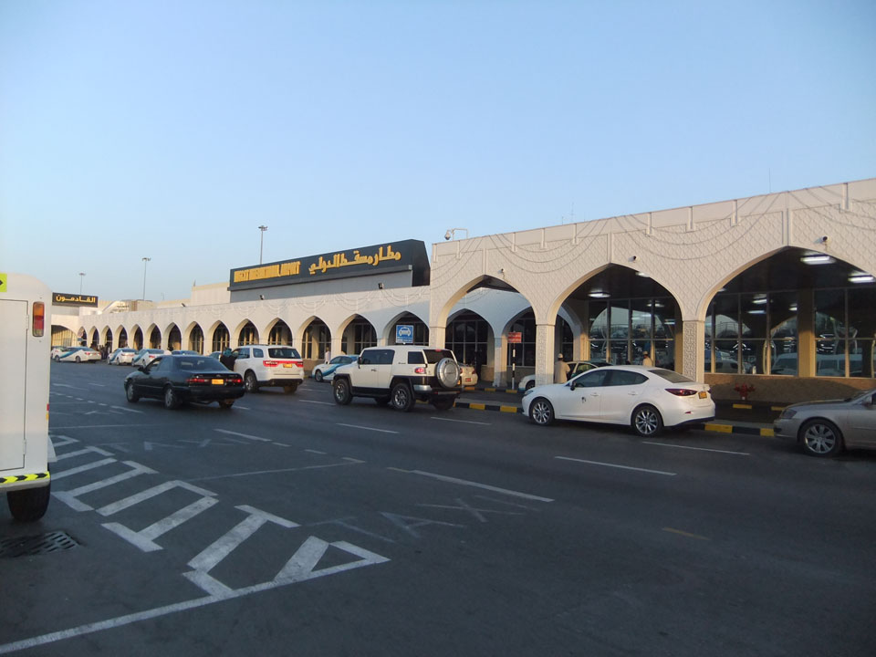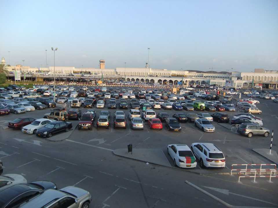 Der Flughafen machte einen eher proviziellen Eindruck. Sonnenaufgang, ein paar Omanische Rials (20 = €50), die als ein Schein rauskamen.