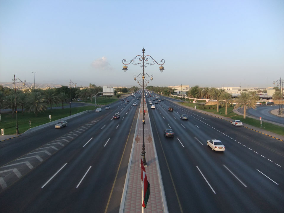 Also über die Brücke und eine weitere Straße dann kamen Minibusse – fragte ich gleich nach „Muttrah“ und sprang rein. Aus dem Radio kam Gebetsgesang und auf den Highways waren unzählige Autos. Eine nette neue Atmosphäre.
