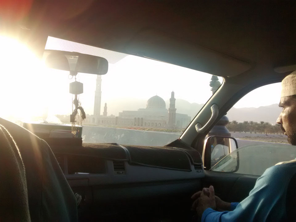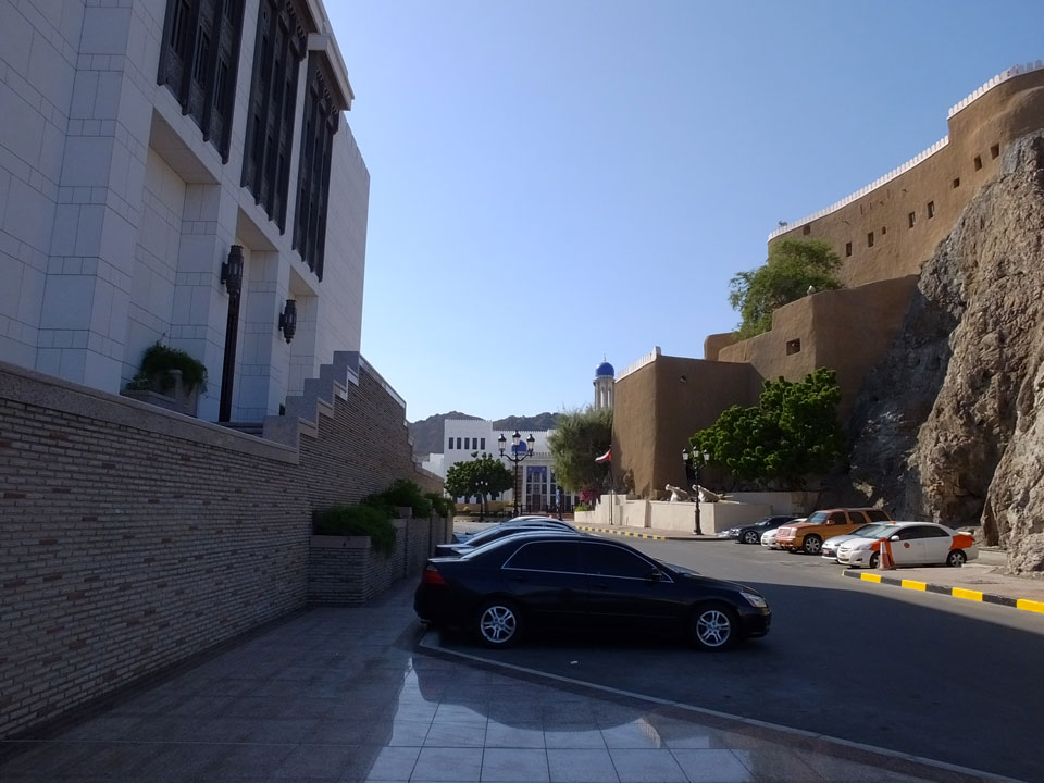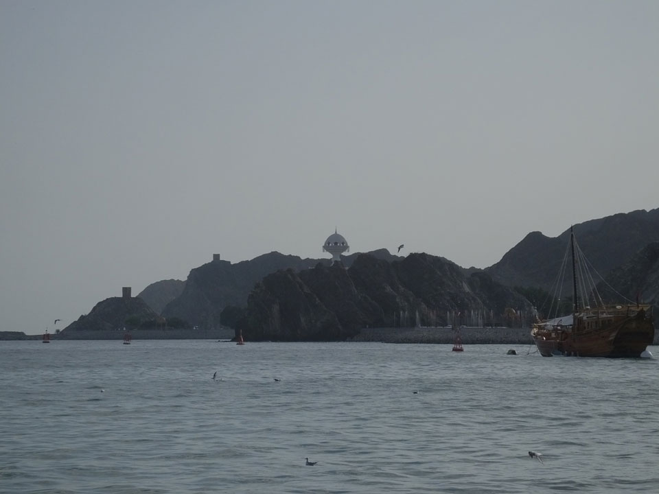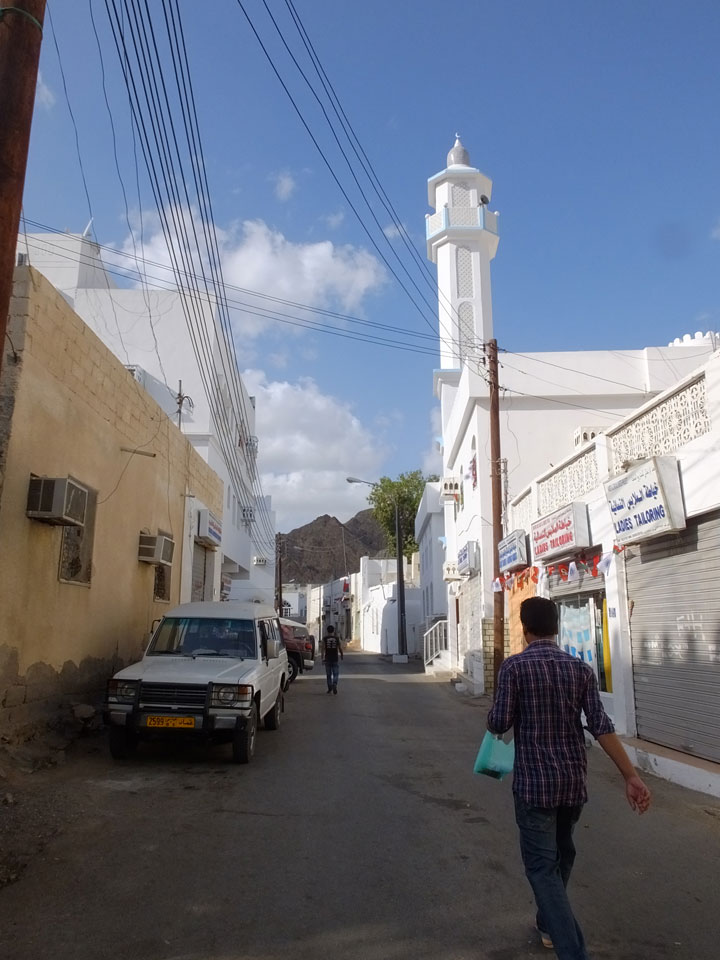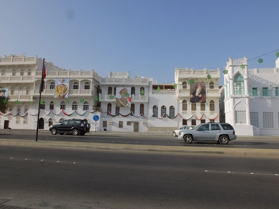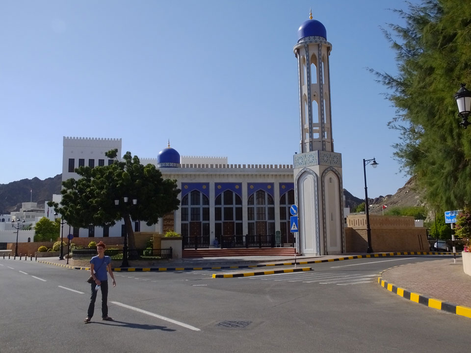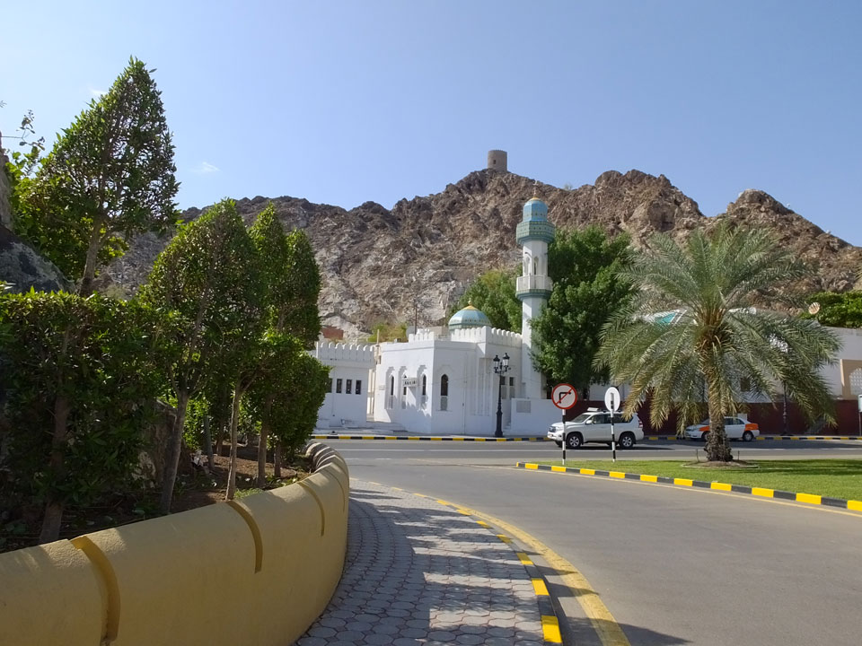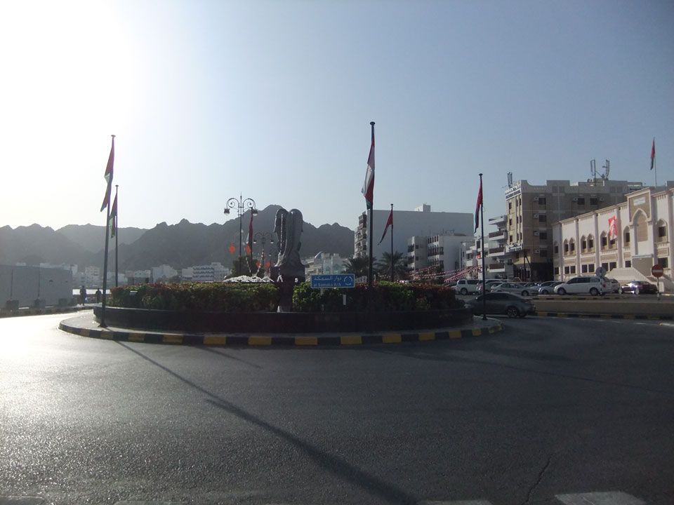 Muscat hat sich angelich in den letzten 40 Jahren radikal verändert. Überall stehen neue Häuser und niemand geht zu Fuß. Jetzt im November bis Februar ist das Klima angenehm – um die 30 Grad. Die neue Moschee sah ich nur im Vorbeifahren, wobei da einige ausstiegen. Im Minibus schienen nur ein paar Arbeiter aus Pakistan, Indien oder Sri Lanka. Benzin billig in diesem recht teuren Land – 0,12 Rials (€0,29) / Liter sah ich, als der Fahrer mal volltankte.