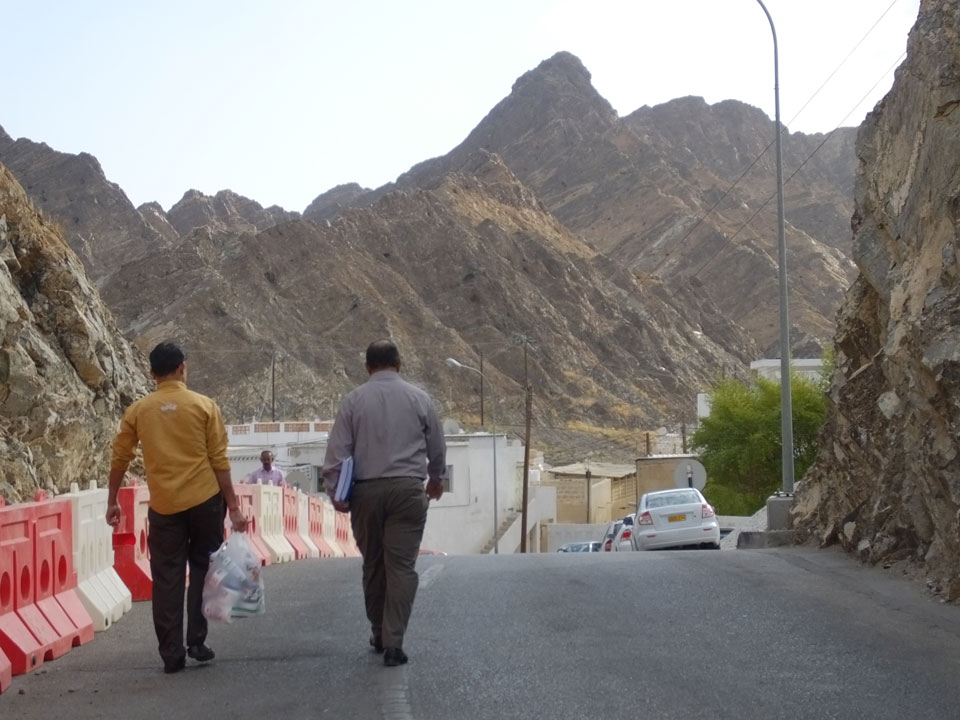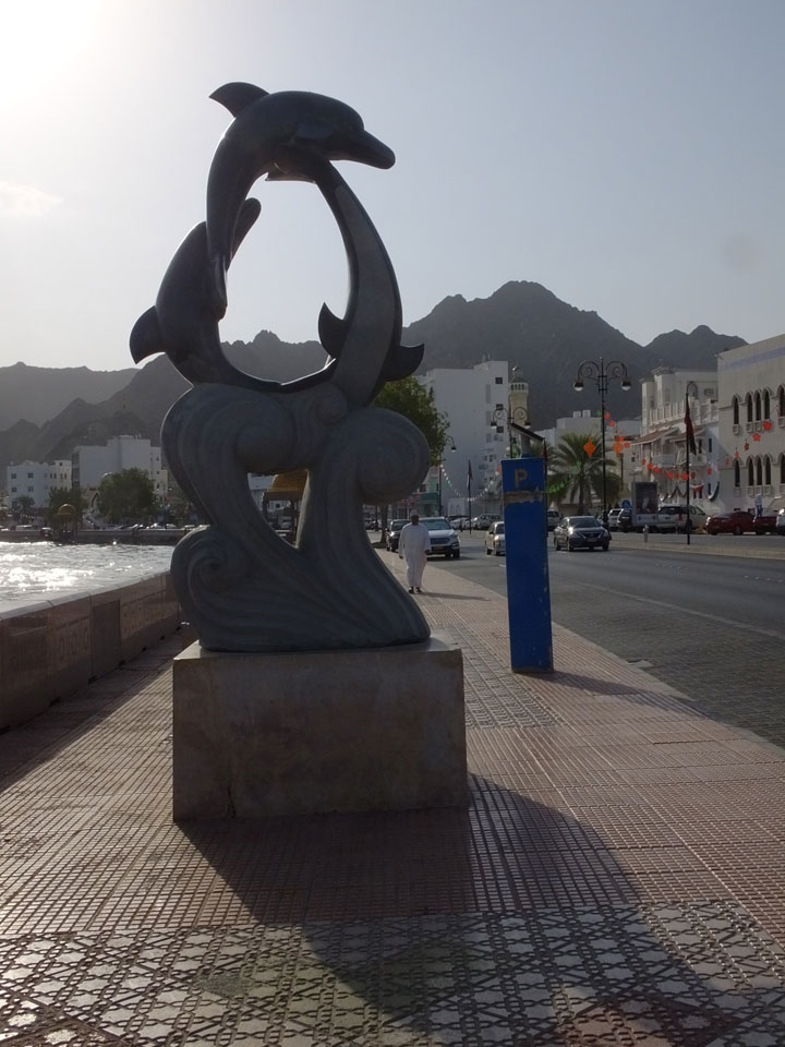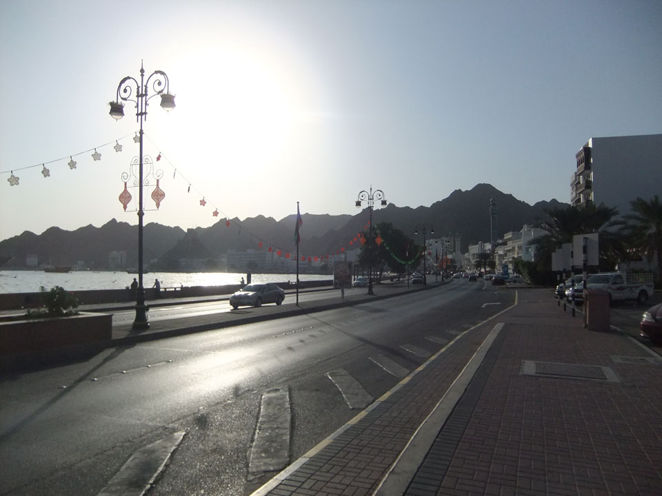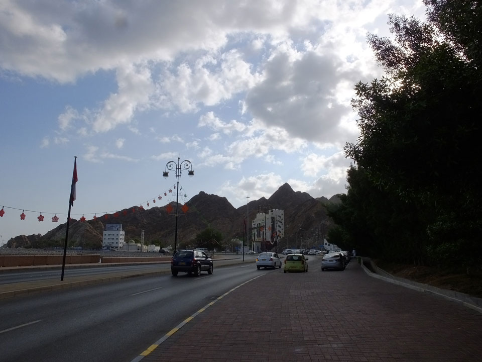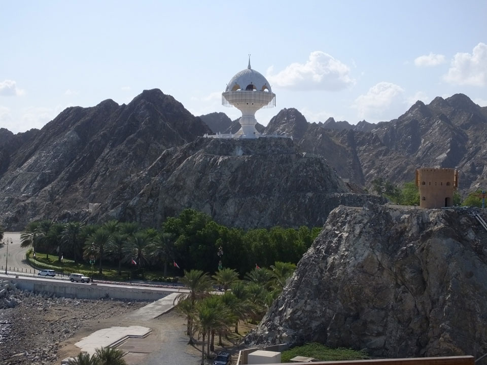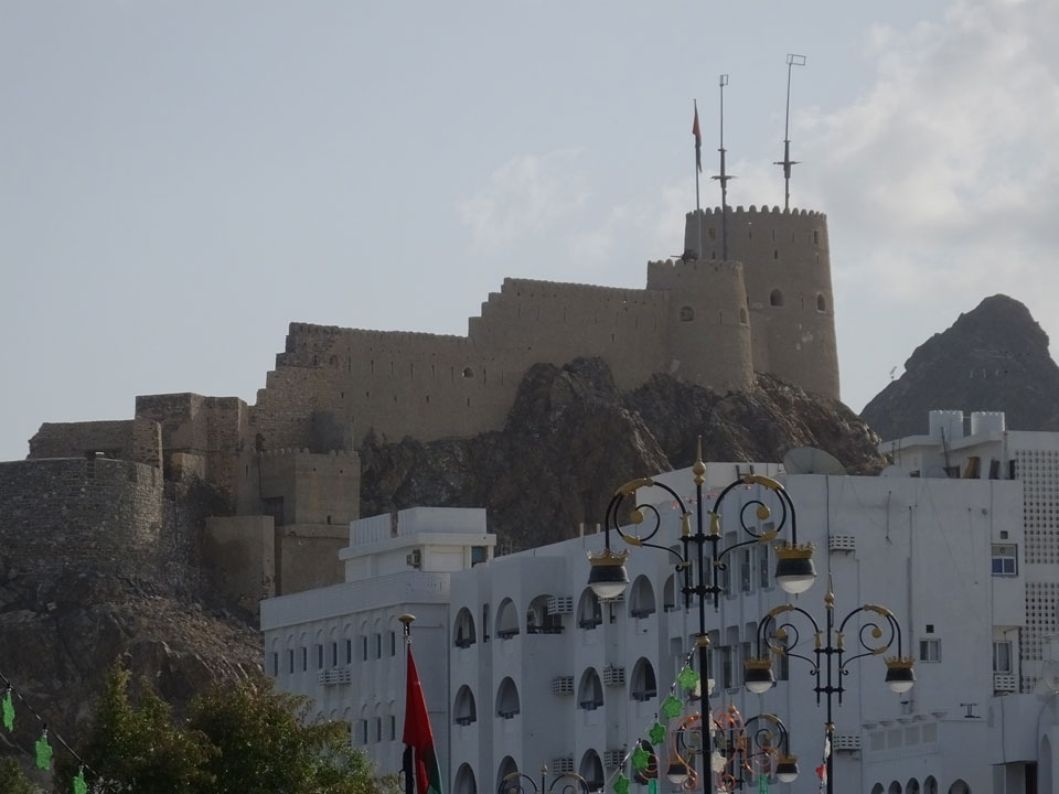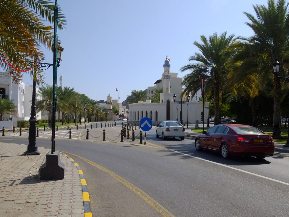 Muscat hat sich angelich in den letzten 40 Jahren radikal verändert. Überall stehen neue Häuser und niemand geht zu Fuß. Jetzt im November bis Februar ist das Klima angenehm – um die 30 Grad. Die neue Moschee sah ich nur im Vorbeifahren, wobei da einige ausstiegen. Im Minibus schienen nur ein paar Arbeiter aus Pakistan, Indien oder Sri Lanka. Benzin billig in diesem recht teuren Land – 0,12 Rials (€0,29) / Liter sah ich, als der Fahrer mal volltankte.