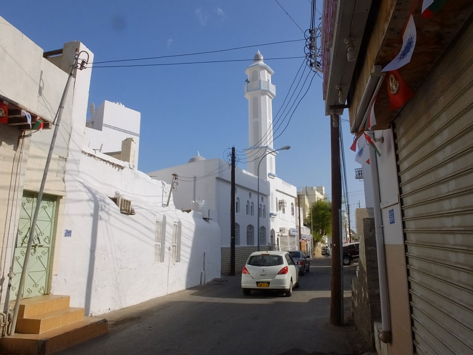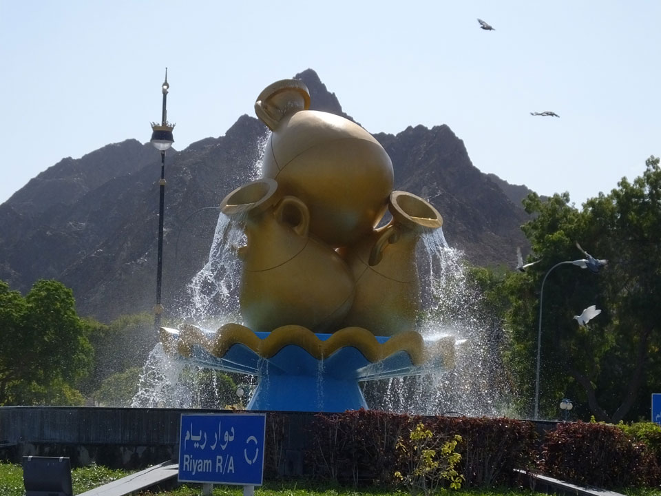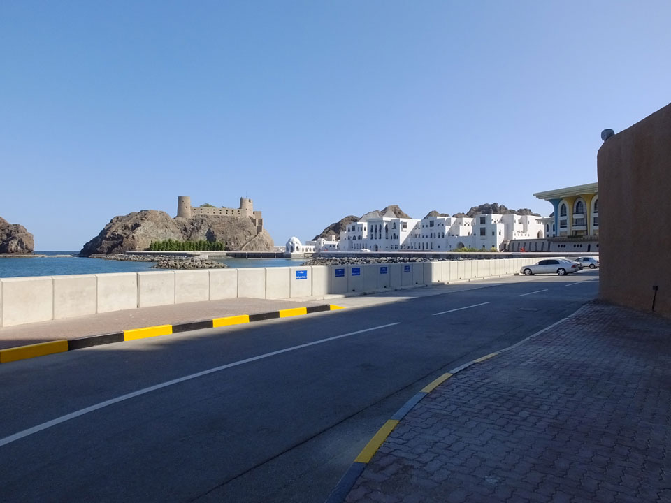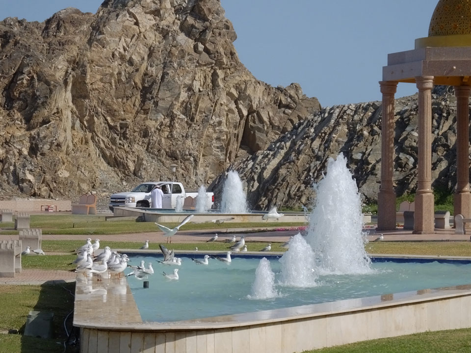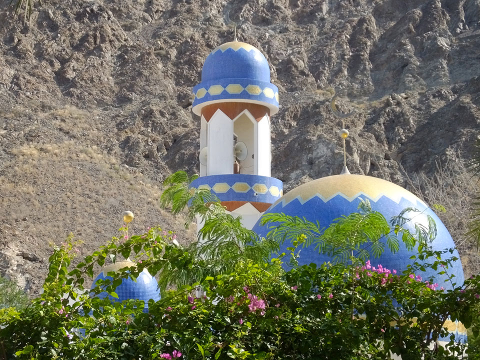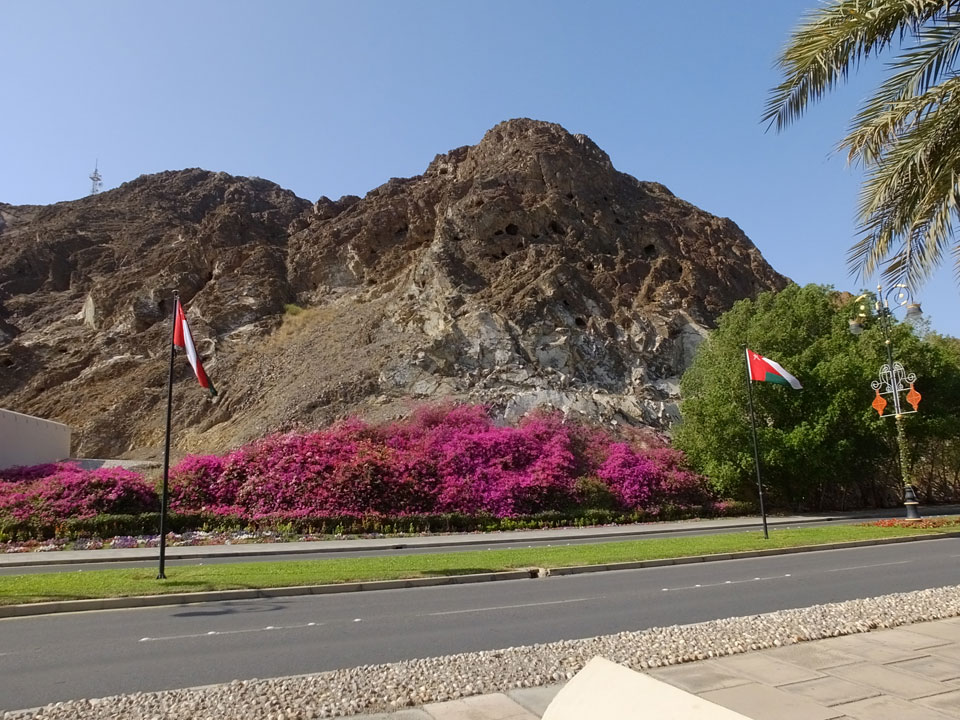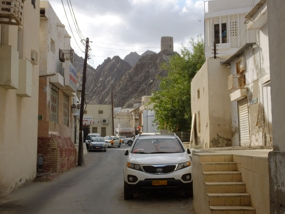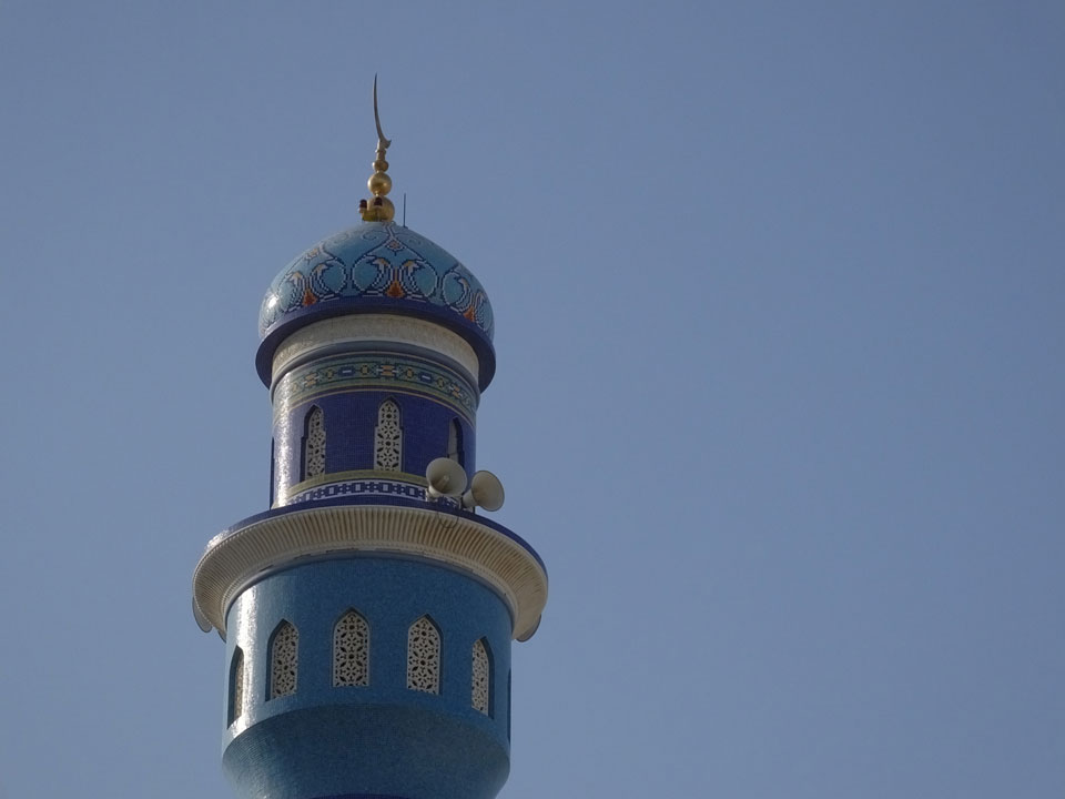 Muscat hat sich angelich in den letzten 40 Jahren radikal verändert. Überall stehen neue Häuser und niemand geht zu Fuß. Jetzt im November bis Februar ist das Klima angenehm – um die 30 Grad. Die neue Moschee sah ich nur im Vorbeifahren, wobei da einige ausstiegen. Im Minibus schienen nur ein paar Arbeiter aus Pakistan, Indien oder Sri Lanka. Benzin billig in diesem recht teuren Land – 0,12 Rials (€0,29) / Liter sah ich, als der Fahrer mal volltankte.