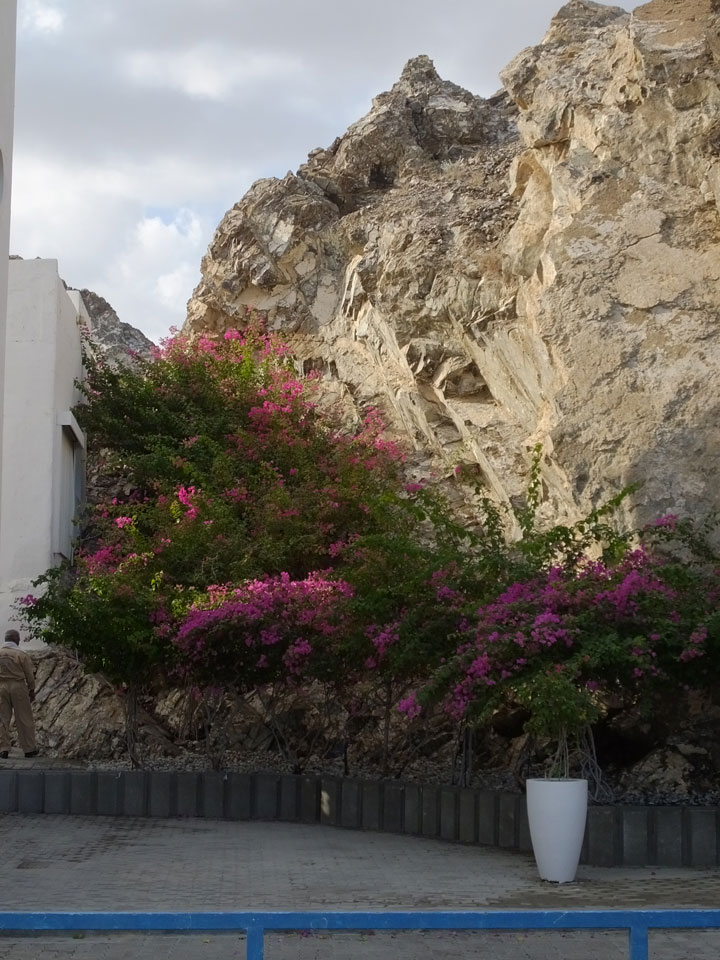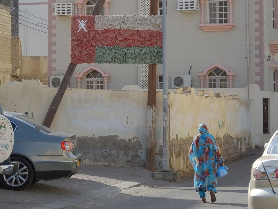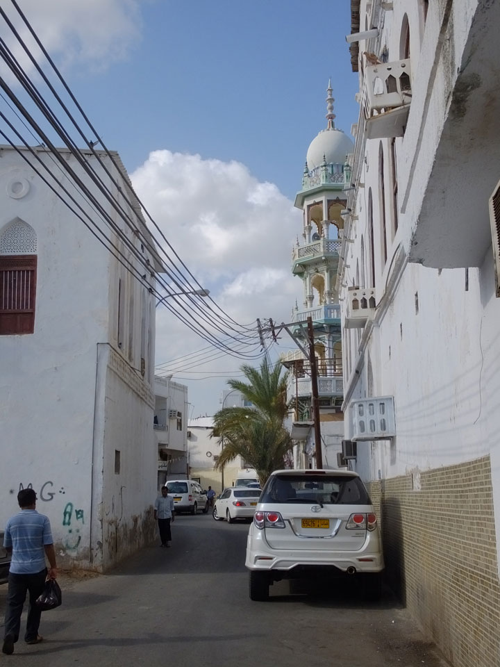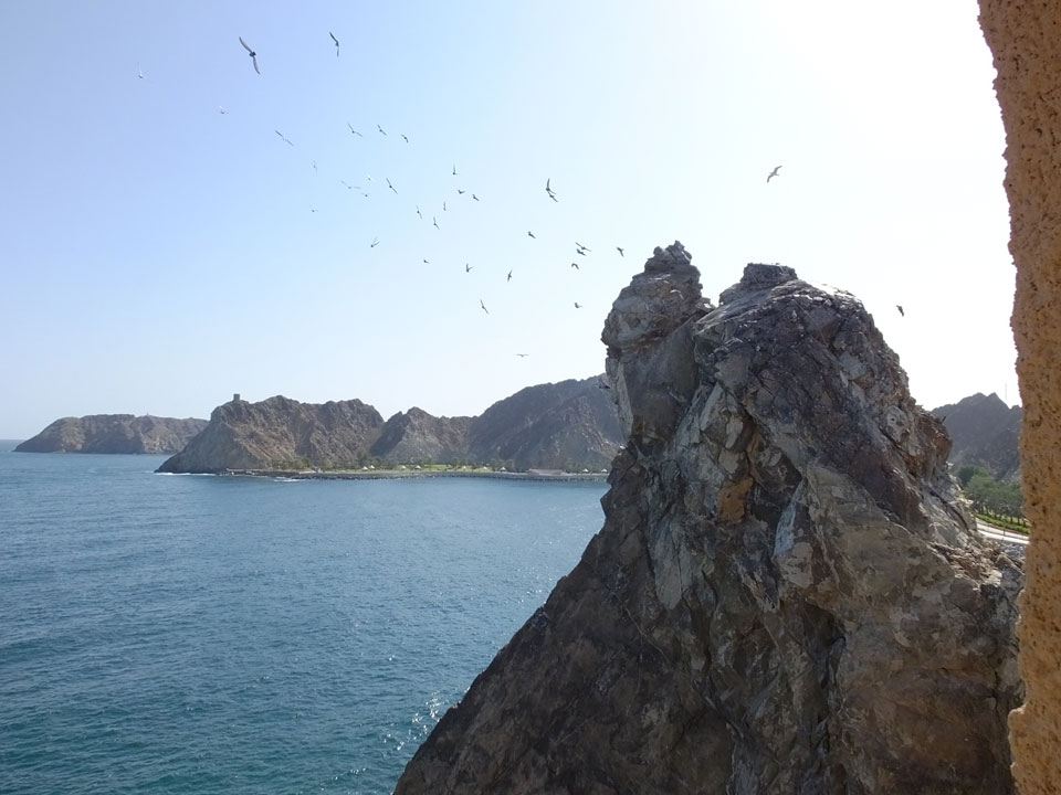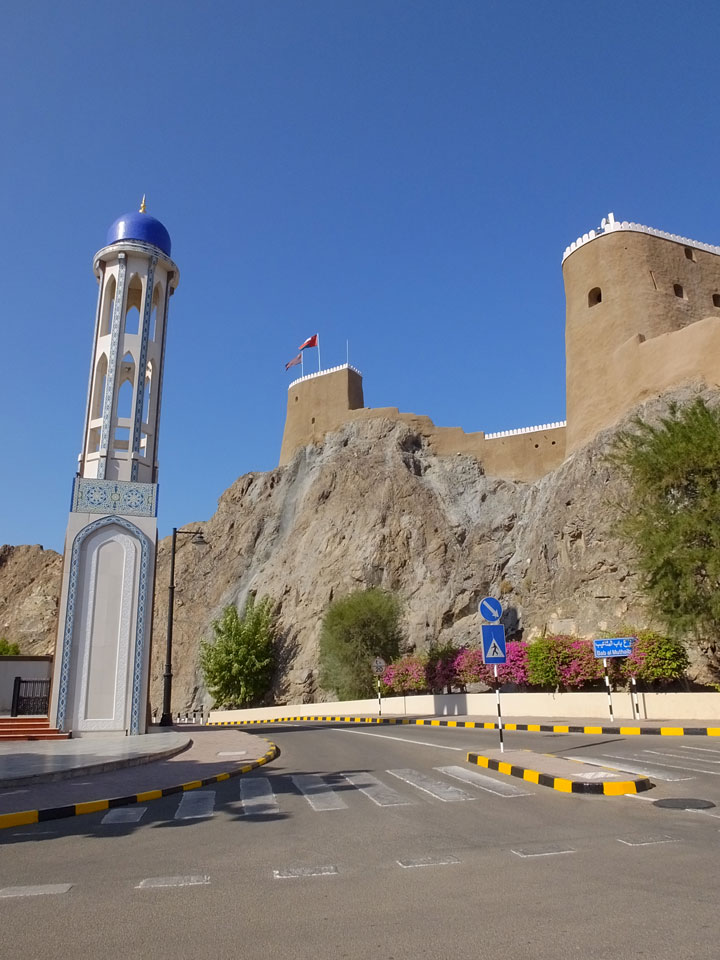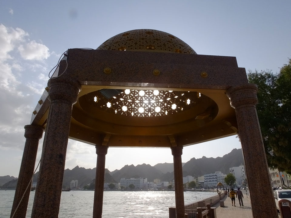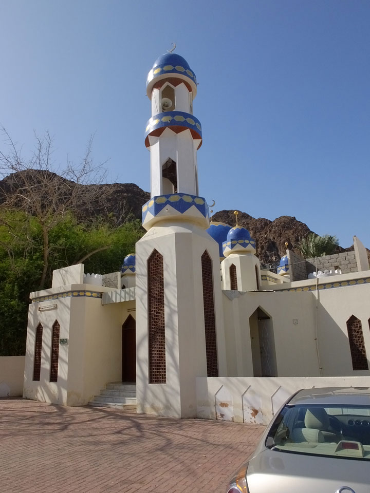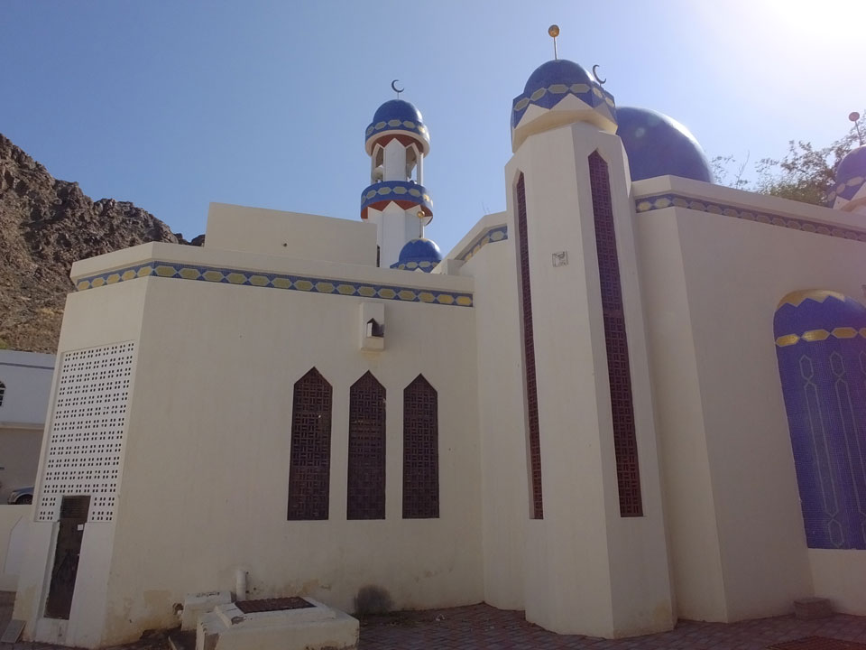 Muscat hat sich angelich in den letzten 40 Jahren radikal verändert. Überall stehen neue Häuser und niemand geht zu Fuß. Jetzt im November bis Februar ist das Klima angenehm – um die 30 Grad. Die neue Moschee sah ich nur im Vorbeifahren, wobei da einige ausstiegen. Im Minibus schienen nur ein paar Arbeiter aus Pakistan, Indien oder Sri Lanka. Benzin billig in diesem recht teuren Land – 0,12 Rials (€0,29) / Liter sah ich, als der Fahrer mal volltankte.