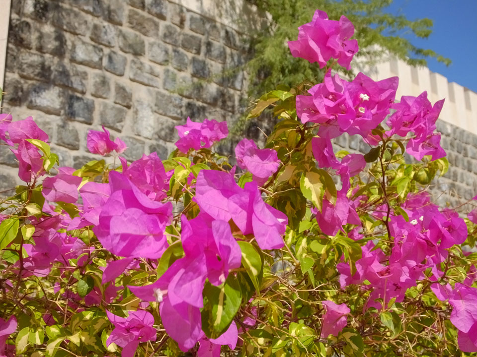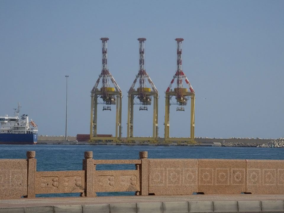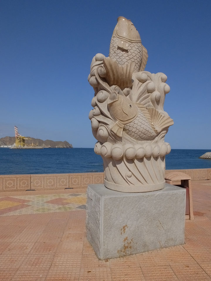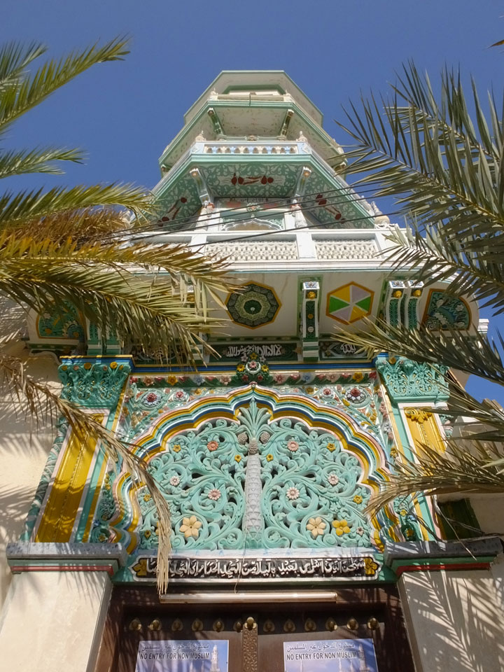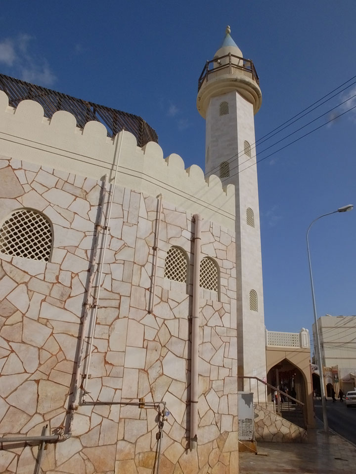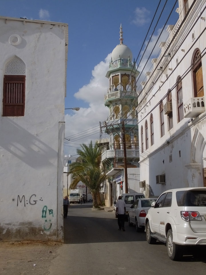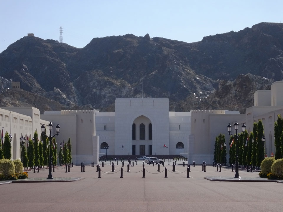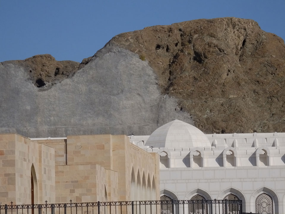 Muscat hat sich angelich in den letzten 40 Jahren radikal verändert. Überall stehen neue Häuser und niemand geht zu Fuß. Jetzt im November bis Februar ist das Klima angenehm – um die 30 Grad. Die neue Moschee sah ich nur im Vorbeifahren, wobei da einige ausstiegen. Im Minibus schienen nur ein paar Arbeiter aus Pakistan, Indien oder Sri Lanka. Benzin billig in diesem recht teuren Land – 0,12 Rials (€0,29) / Liter sah ich, als der Fahrer mal volltankte.