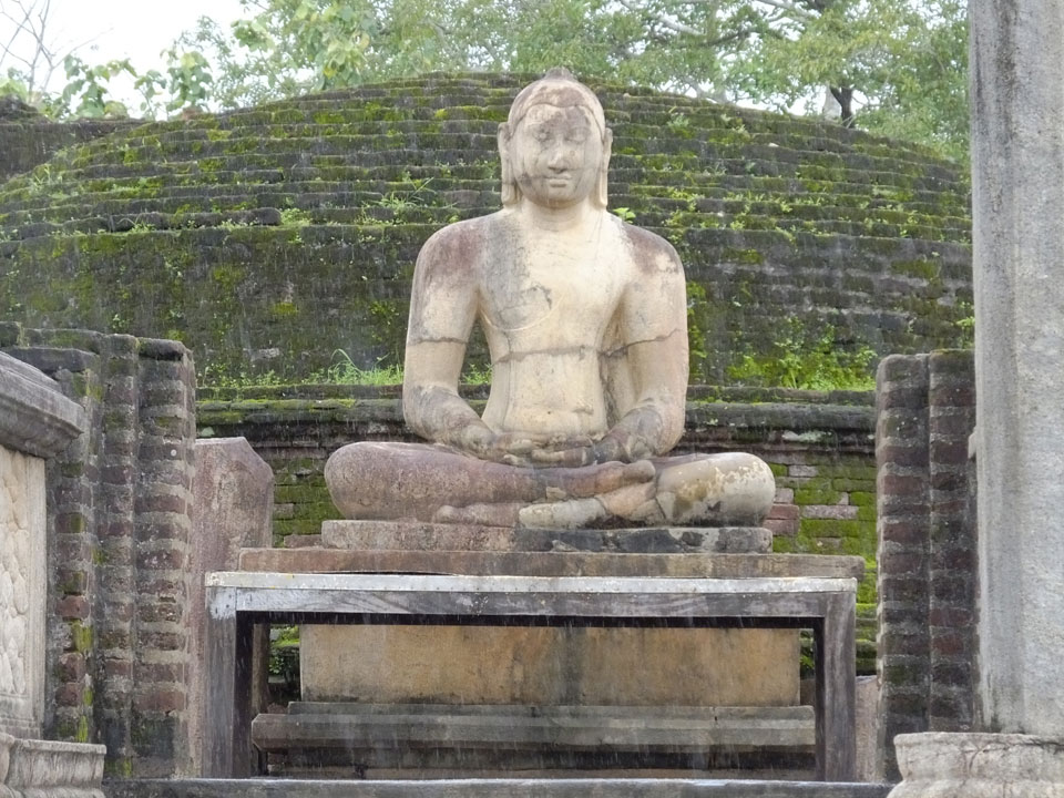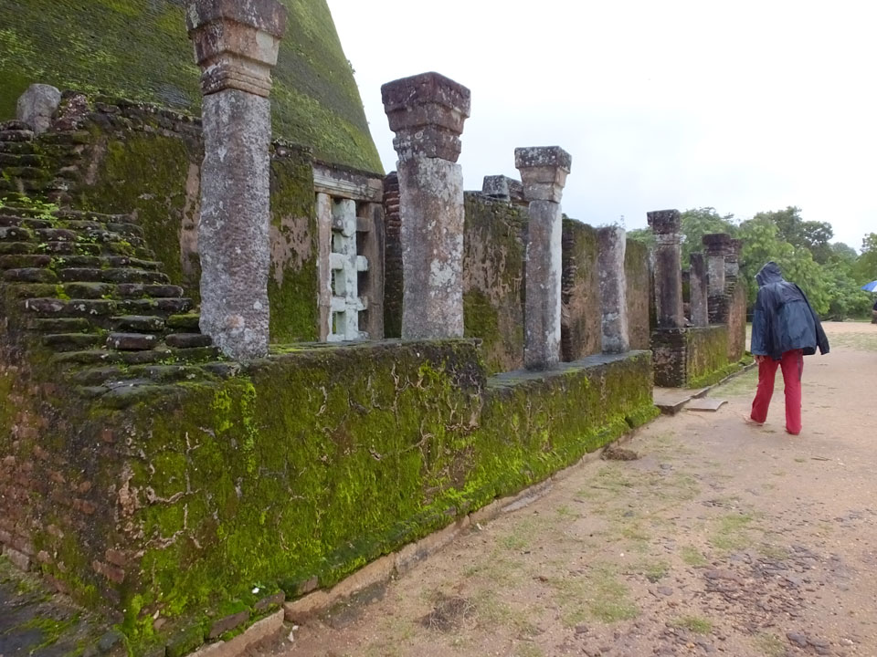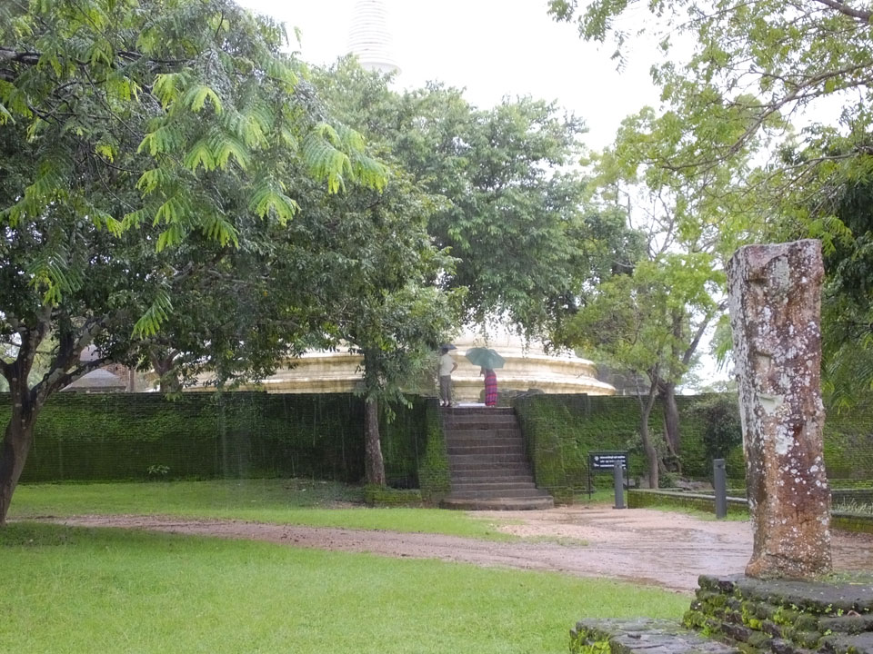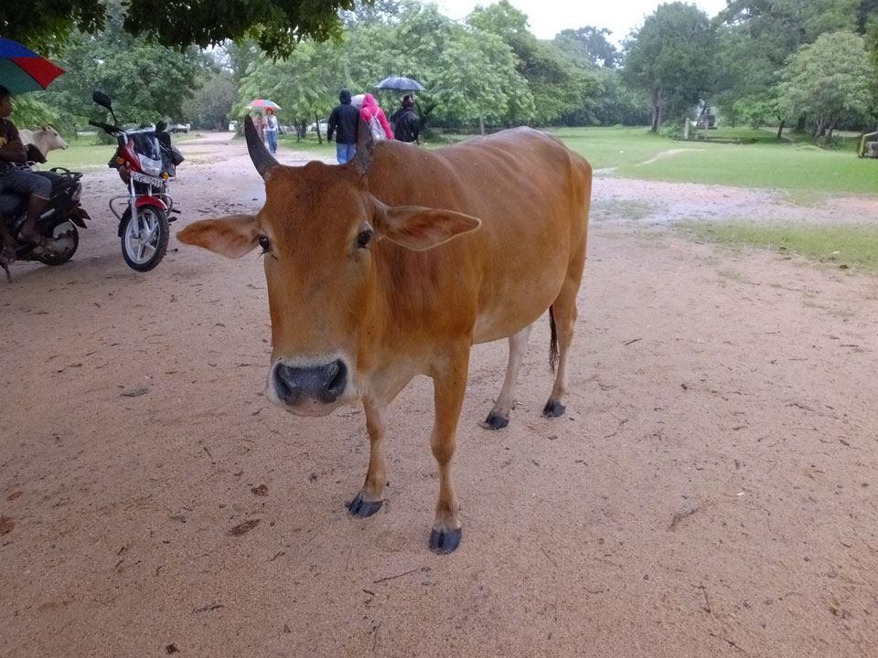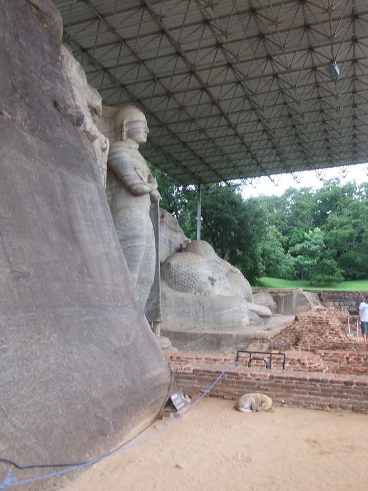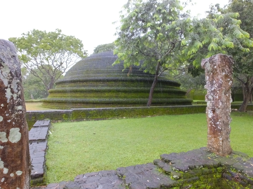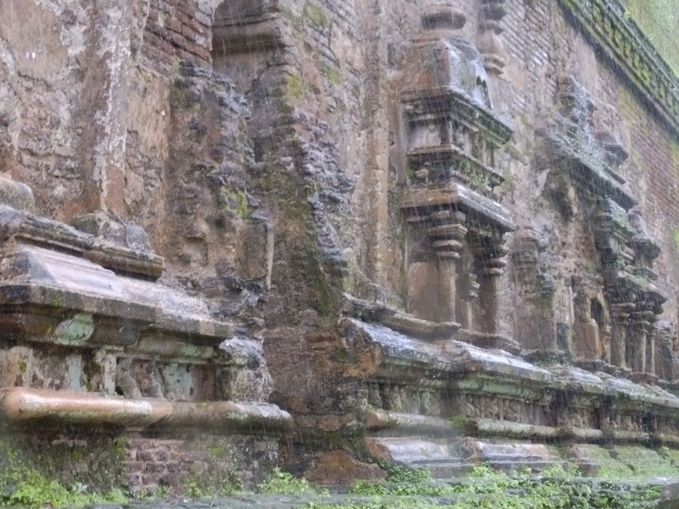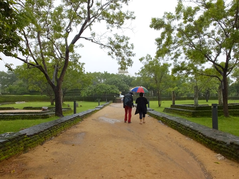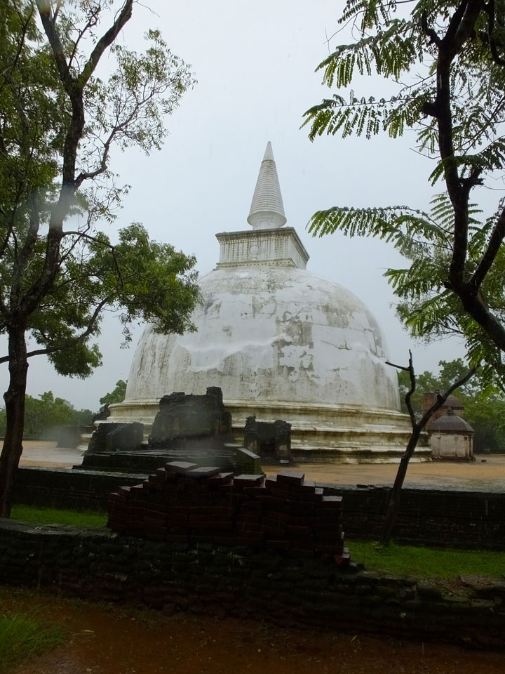Der Regen wurde immer stärker und ich konnte meine Fuji kaum mehr trocken halten. Einen Poncho hatte er mit dabei aber großes Herumknipsen im Monsoon fiel in’s Wasser. Wir drehten mit immer stärkerem Wolkenbruch immer kleinere Runden um die Dagoben und schafften die großen Buddha Fels-Statuen dann auch noch. Zum Glück war ich heute nicht auf dem Fahrrad unterwegs.