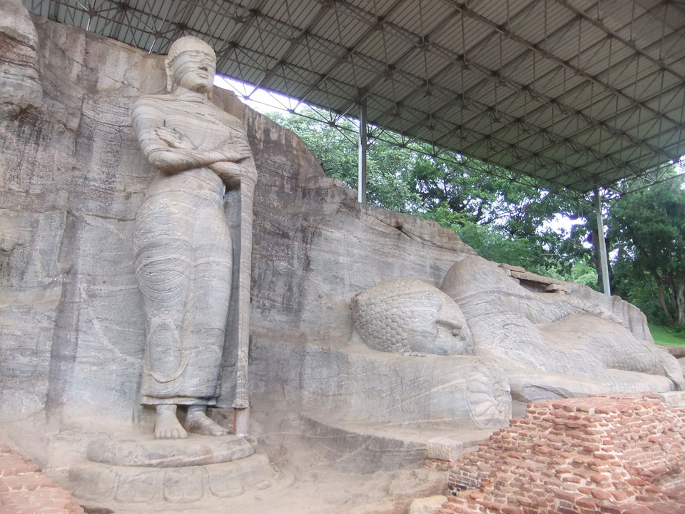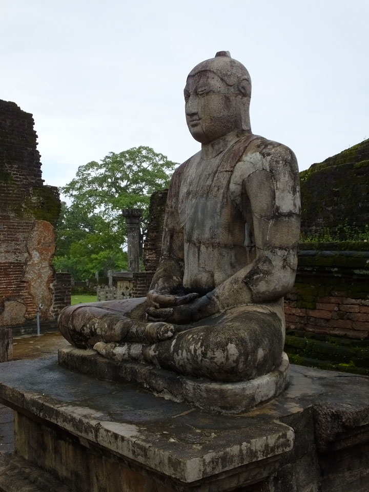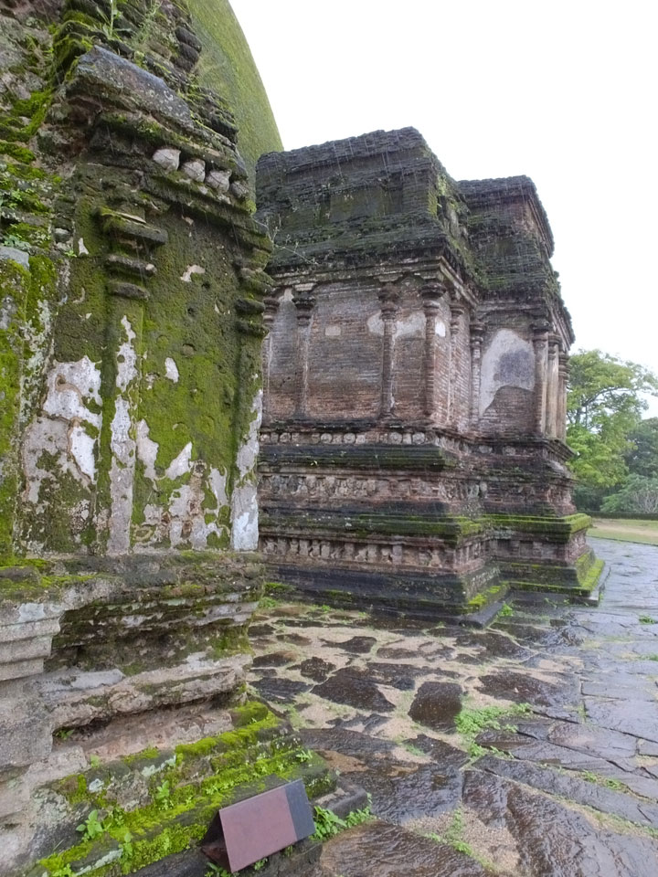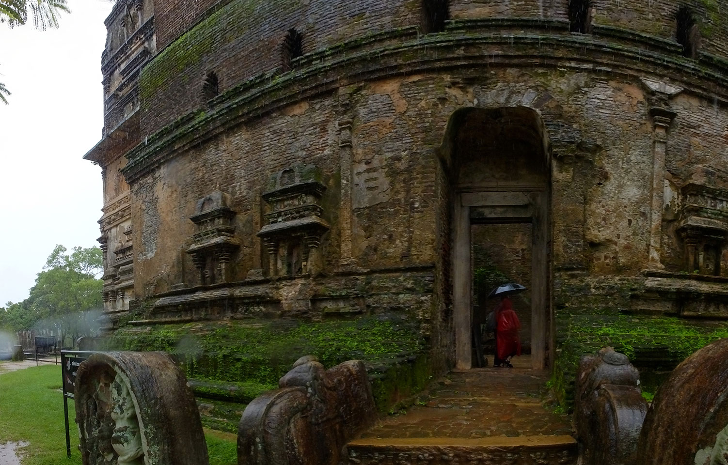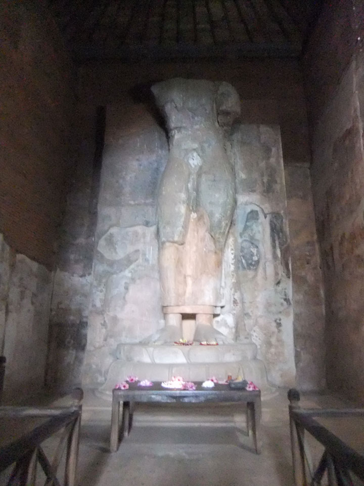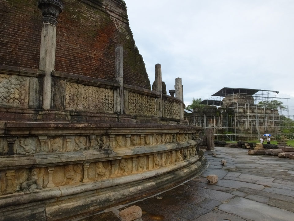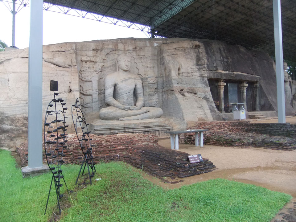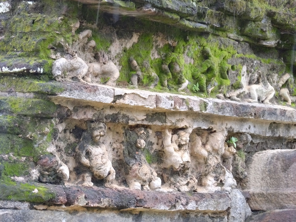 Der Regen wurde immer stärker und ich konnte meine Fuji kaum mehr trocken halten. Einen Poncho hatte er mit dabei aber großes Herumknipsen im Monsoon fiel in’s Wasser. Wir drehten mit immer stärkerem Wolkenbruch immer kleinere Runden um die Dagoben und schafften die großen Buddha Fels-Statuen dann auch noch. Zum Glück war ich heute nicht auf dem Fahrrad unterwegs.