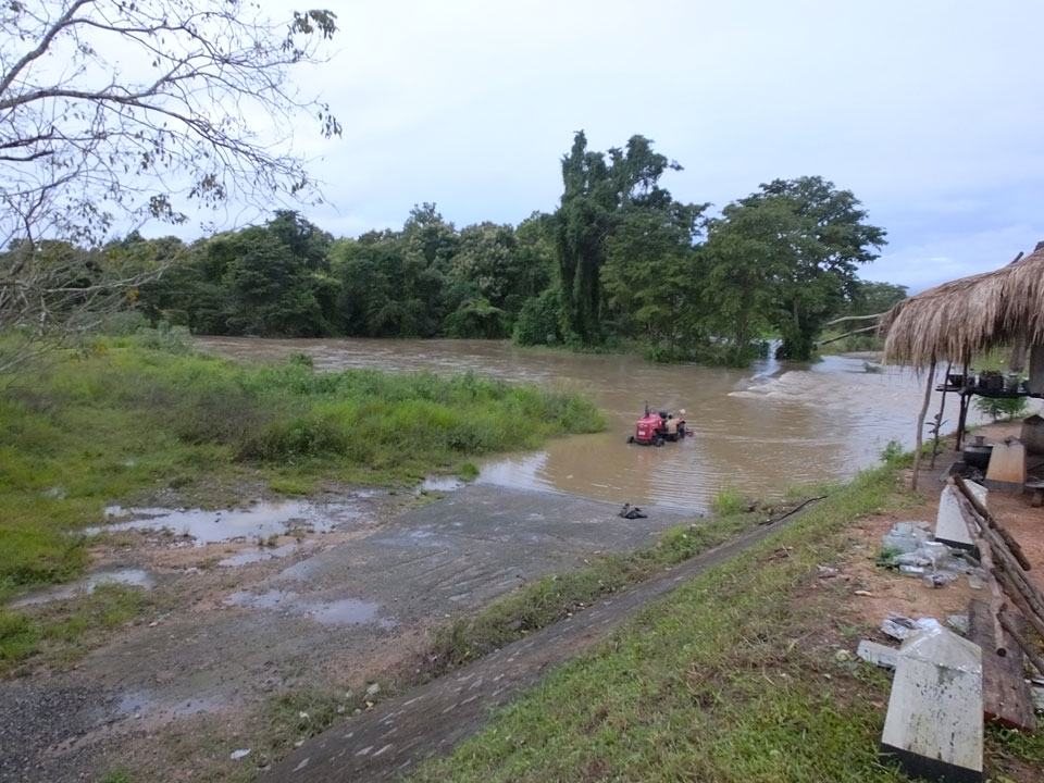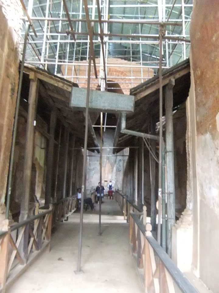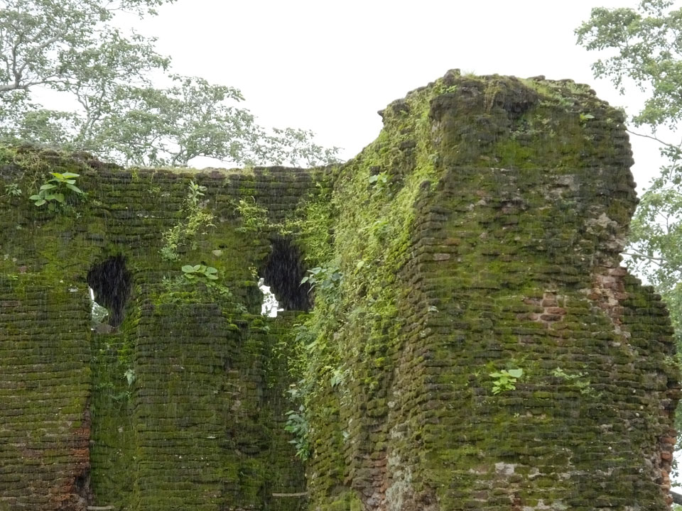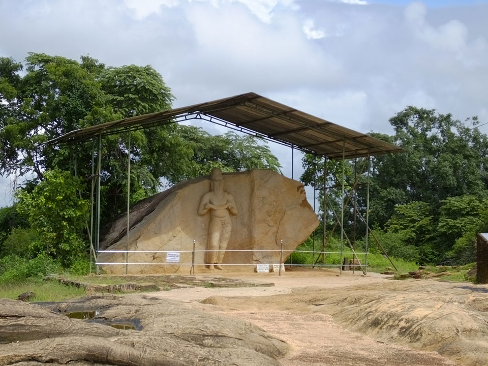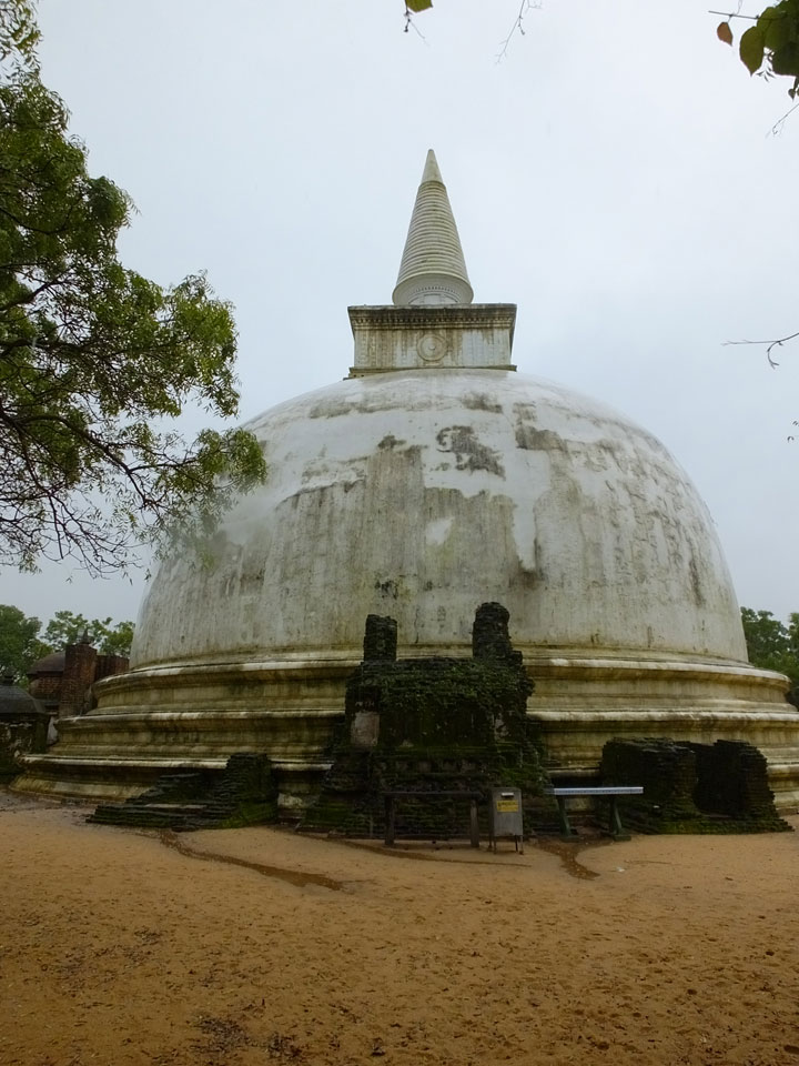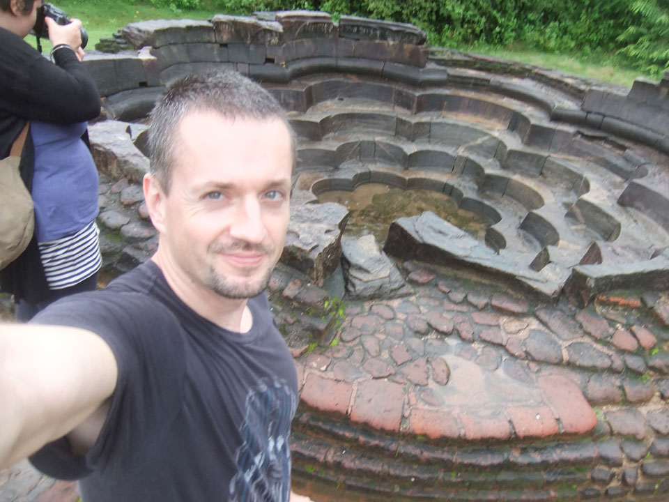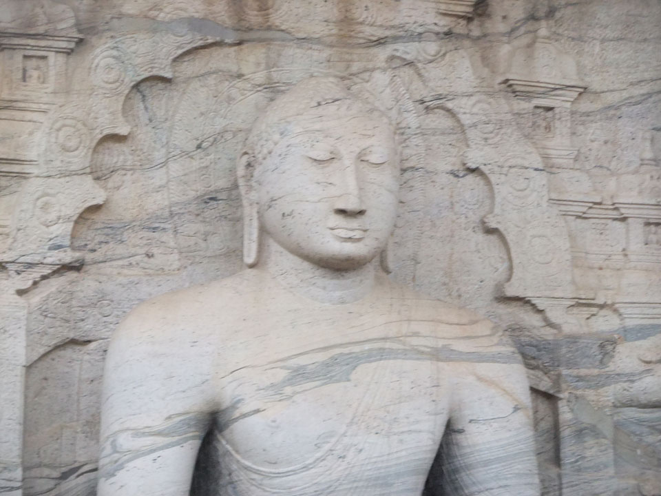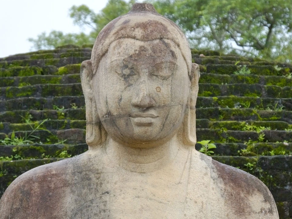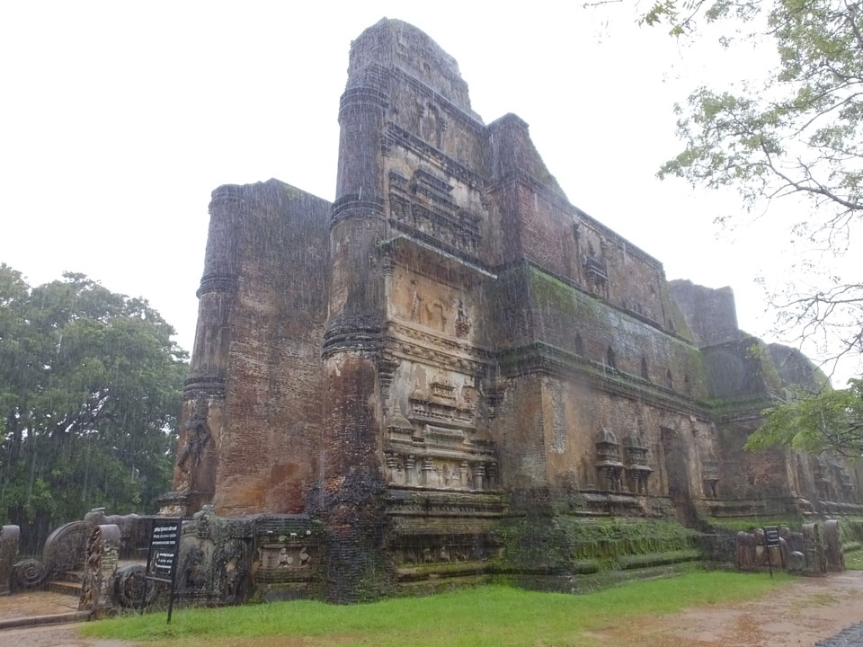 Der Regen wurde immer stärker und ich konnte meine Fuji kaum mehr trocken halten. Einen Poncho hatte er mit dabei aber großes Herumknipsen im Monsoon fiel in’s Wasser. Wir drehten mit immer stärkerem Wolkenbruch immer kleinere Runden um die Dagoben und schafften die großen Buddha Fels-Statuen dann auch noch. Zum Glück war ich heute nicht auf dem Fahrrad unterwegs.