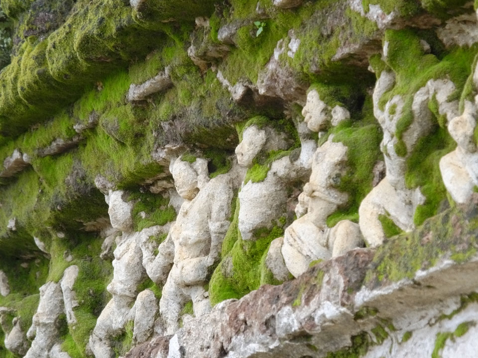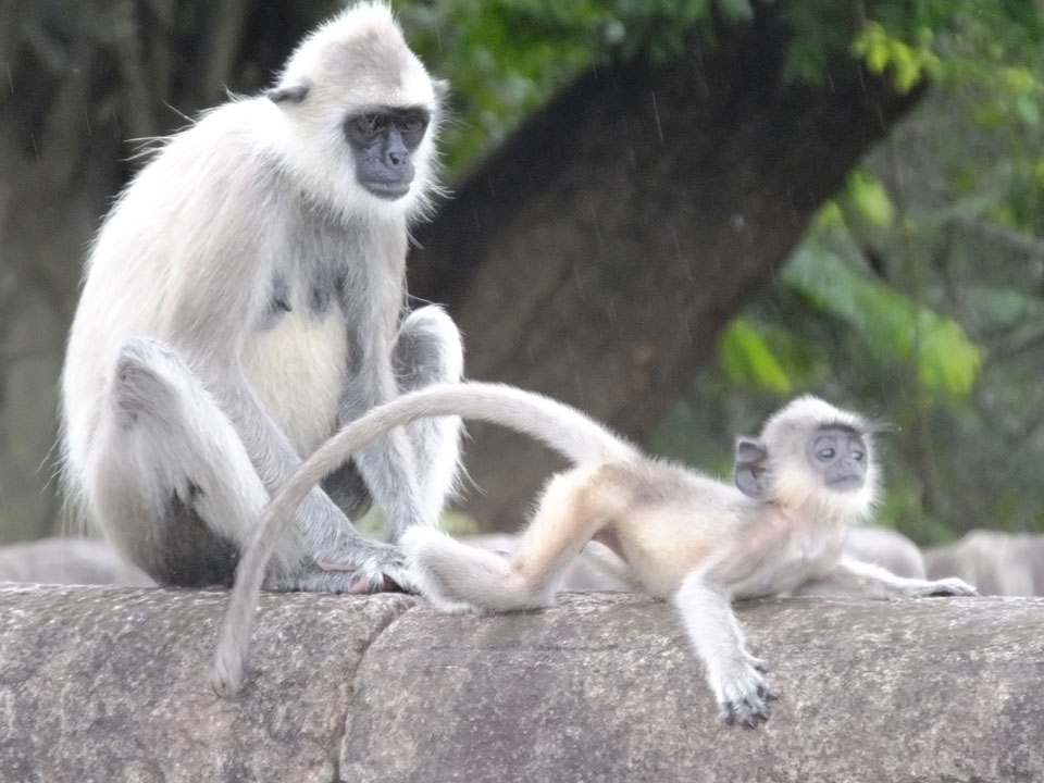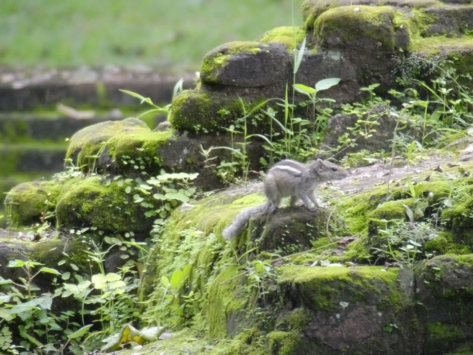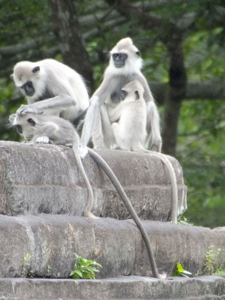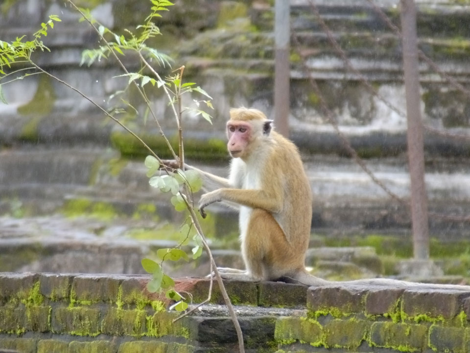 Wir schauten uns Ort zu Ort an, davon gab’s 3 oder 4. Alles ganz nett aber eben nur die Mauern. Im Museum sah man die Modelle, wie es früher mal ausgesehen haben könnte. Draußen dann nach ein paar Stätten und diversen Affen-Photos fing es an zu tröpfeln, dann zu regnen.