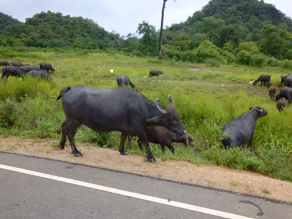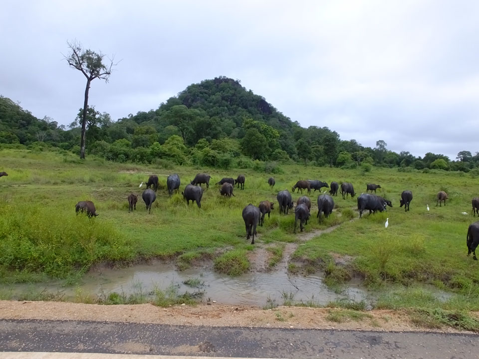Ein kleiner Imbiss zum Mittag und dann auf dem langen Weg irgendwohin, wo auch Elefanten waren. Das war nicht der offizielle Minneriya National Park, doch da müsste man eben auch wieder 2500 LKR Eintritt zahlen. Gestern sagte der Tuktuk-Fahrer, dass man da auch manchmal nur 20 Elefanten sieht.