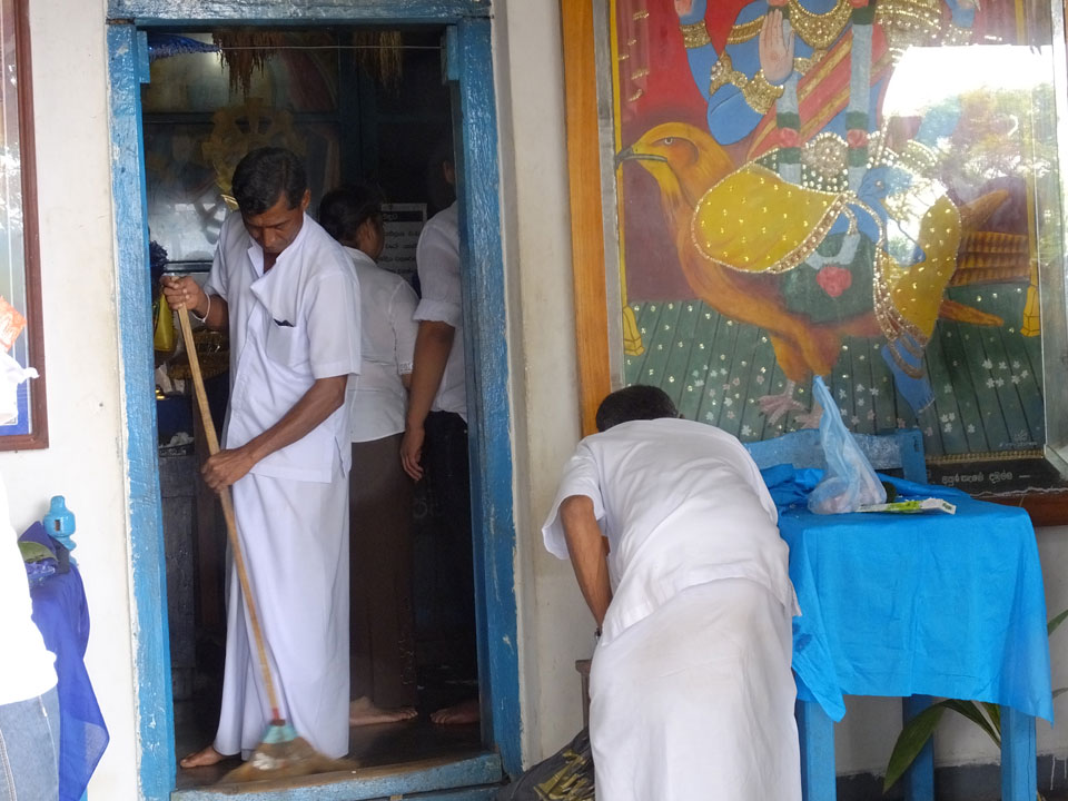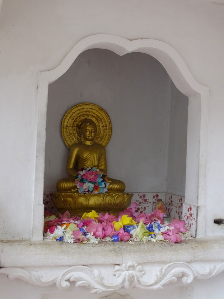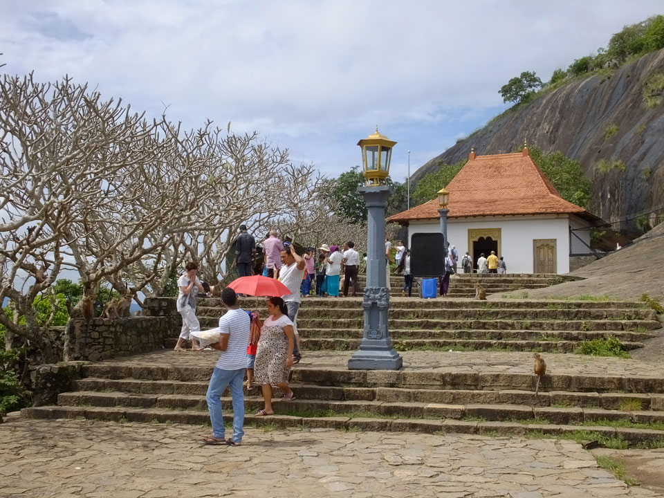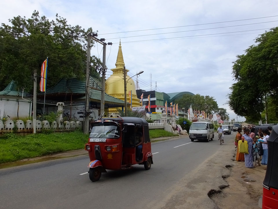 Ich ging zum Golden Temple und schaute dann nach dem Ticket des Rock Temple – 1500 LKR also €10, die ich nicht mehr hatte. Per Tuktuk ging’s zum Gemüseumschlagsplatz, wo der BOC ATM gestern „under maintenance“ war. Heute spukte er Geld aus – 25K und der Tuktuk Fahrer brachte mich zurück. Für 200 LKR also auch OK.