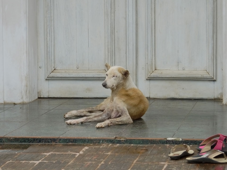 In Kandy dann gegen Abend. Mein Rucksack kam weiß gepudert aus dem Koferraum. Ich nahm ein Tuktuk und fuhr zum Lake Side Hostel (200 LKR). Alles dunkel und ich klingelte. Dann kam doch einer an, machte mir Licht und wir warteten auf den Schlüssel. Ich dachte, ich sei der Einzige hier aber nein – sie waren voll. So bekäme ich das beste Zimmer und ja, ich war zufrieden. Wenn das wirklich für €9/Nacht geht, bin ich zufrieden. Warmes Duschwasser, wenn auch etwas gefährlich gleich neben der Steckdose.