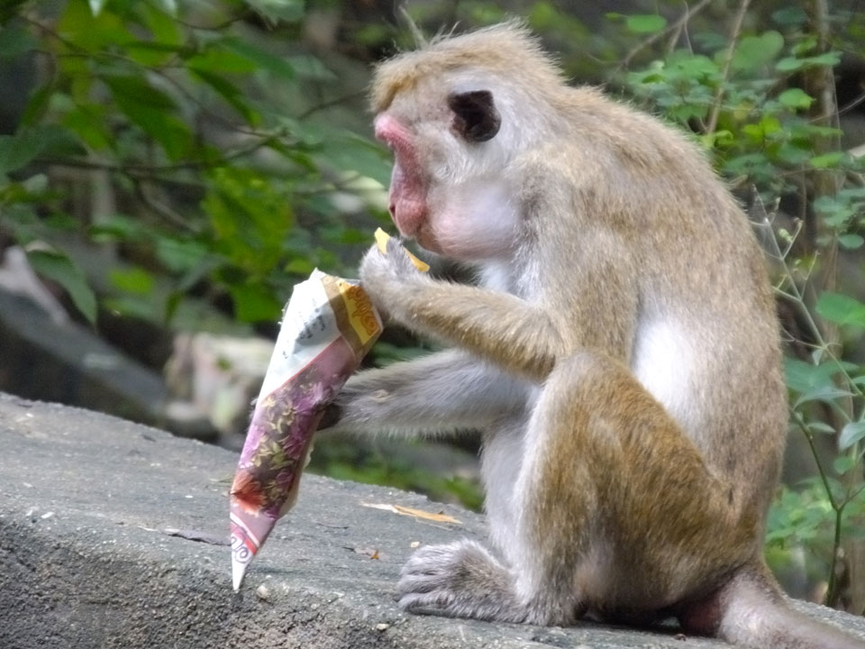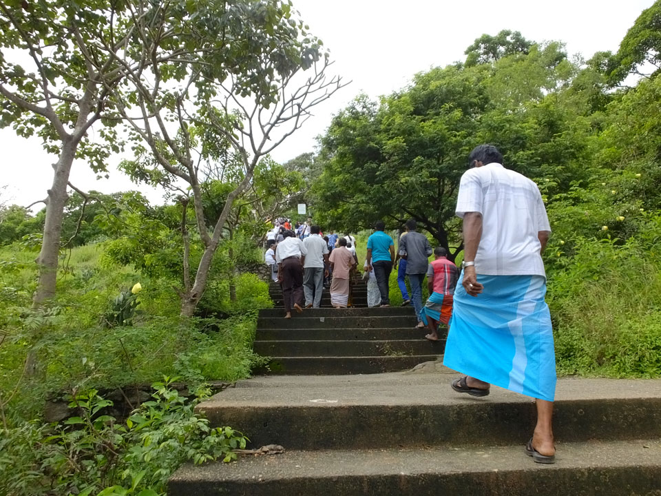 Nach ’ner Stunde ging’s wieder runter, en T-Shirt ließ ich mir doch aufschwatzen, weil mein halbfeuchten Sachen müffeln (500 LKR – €3,50 von €7 runter). Eine schlecht geschälte Mango (€0,33) auf dem Weg zum Gästehaus. Es fing an zu regnen und so wartete ich eine Weile, checkte das Internet und wartete weiter.