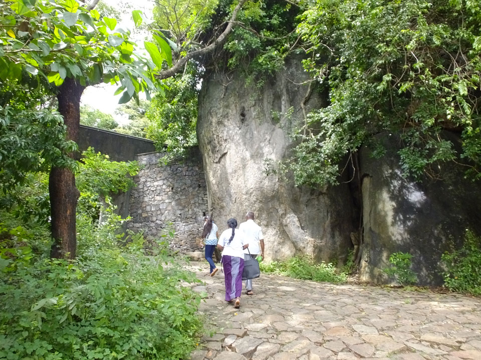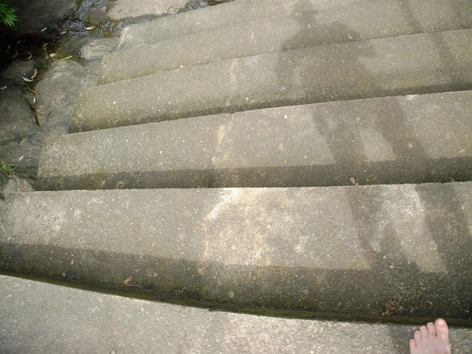 Rauf ging’s auf den Tempel und extremer Hitze und Schwüle. Ich schwitzte wie irre in T-Shirt und Jeans. Barfuß war das auch teilweise nicht so einfach wegen Steinen oder nassen Rutschpartien.
