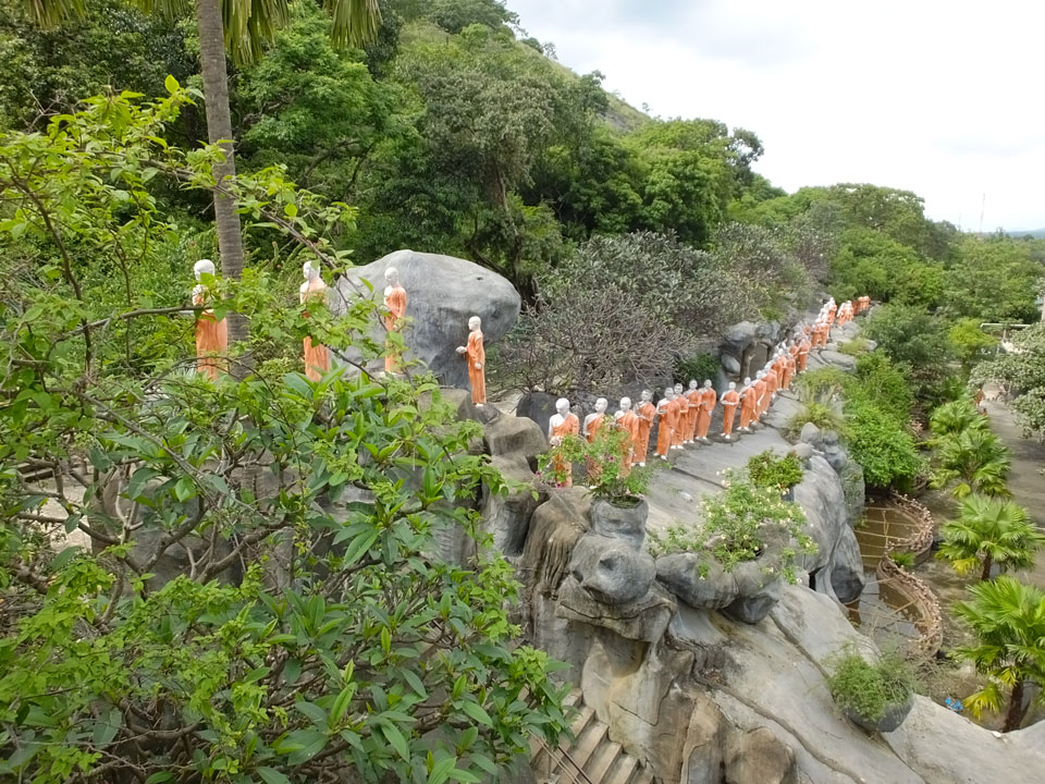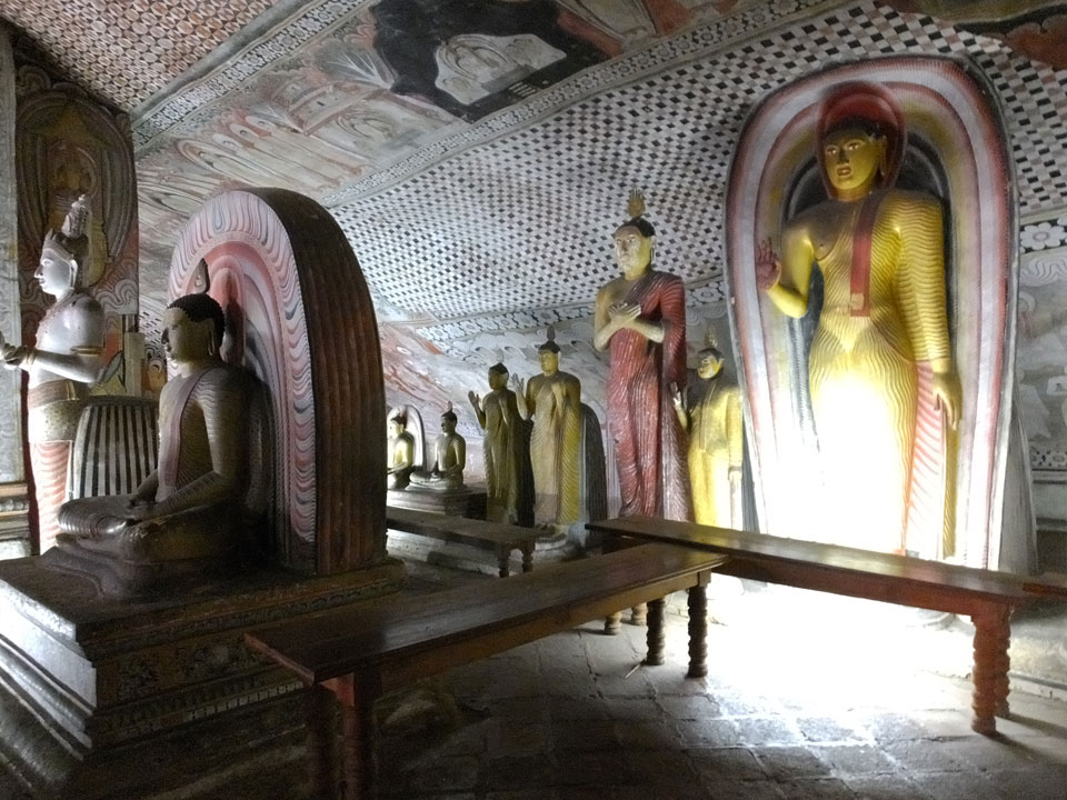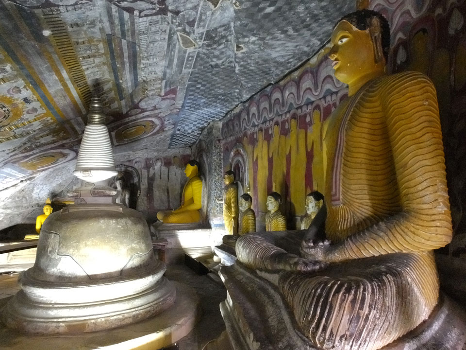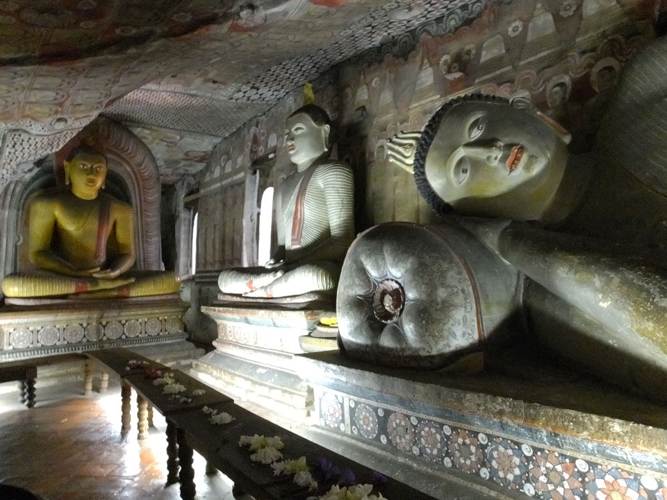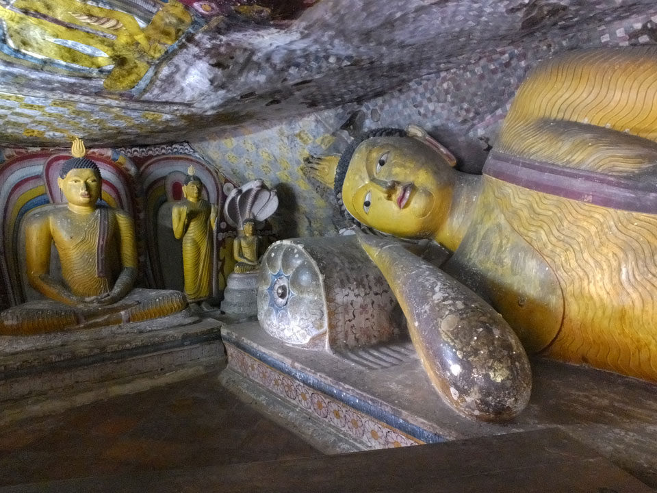 Oben dann im Felsen-Tempel gab’s diverse Höhlen mit allerhand Buddhas. Die Photos sprechen für sich. Alles ganz nett anzusehen aber eigentlich hätten es €5 auch getan.