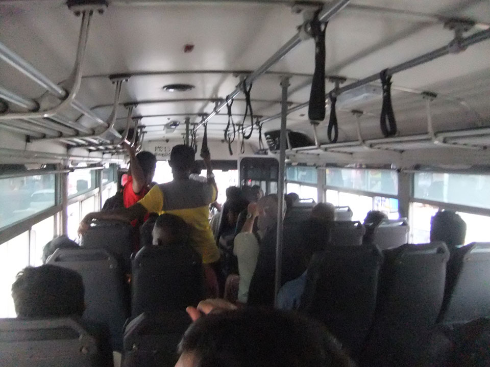 Dann schließlich 14:30 endlich los. Der Besitzer verabschiedete sich freundlich. Gleich an der Straße sollten die Busse nach Kandy fahren und tatsächlich gerade kam einer, ohne dass ich warten musste. Mit den Rucksäcken drinne, verstaute der Kontrolleur den großen dann zum Glück hinten im Kofferraum. Das Ticket 97 – also 100 LKR. Nicht mal einen Euro für über 2h Fahrt.