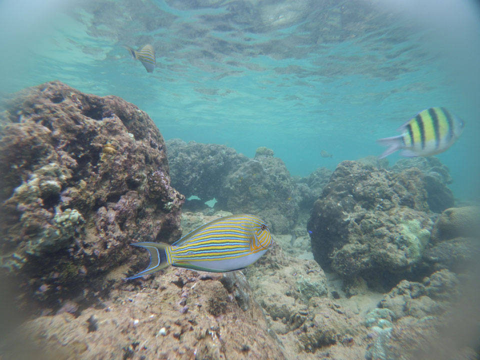 Ich fand eine ruhige Ecke am Strand und chillte dort etwas vor mich hin. Später ging’s dann doch wieder an die populäre Ecke, wo ich heute mal die Theta zu Einsatz brachte. Die nutze ich viel zu wenig. Hier im Wasser mitd en vielen Fischen lohnte sich das mal.