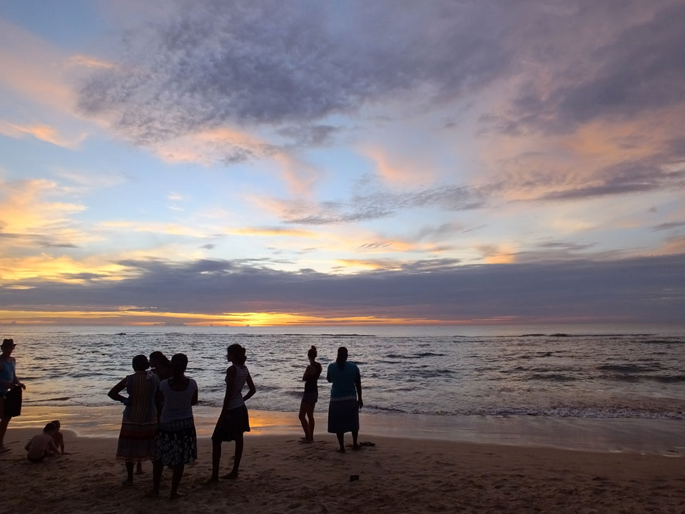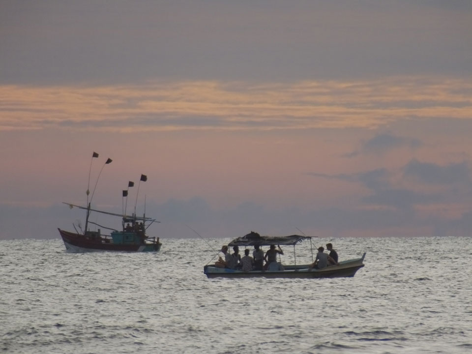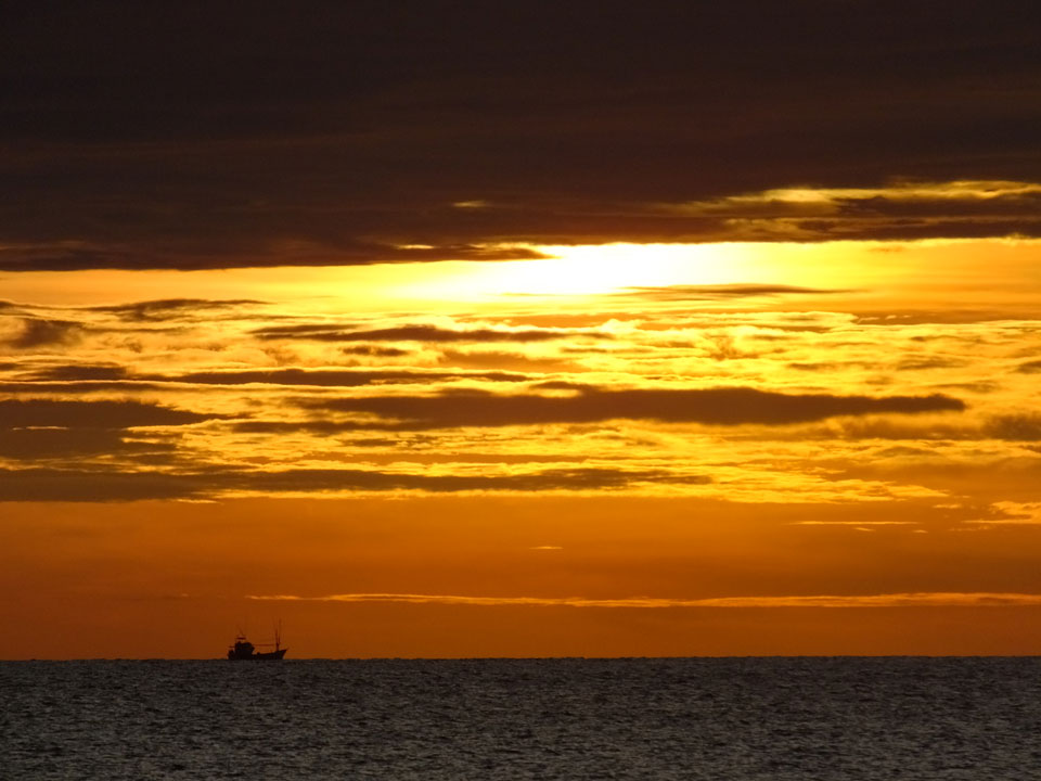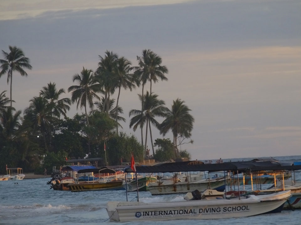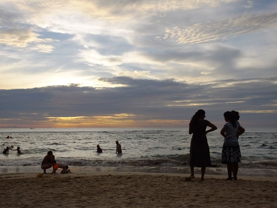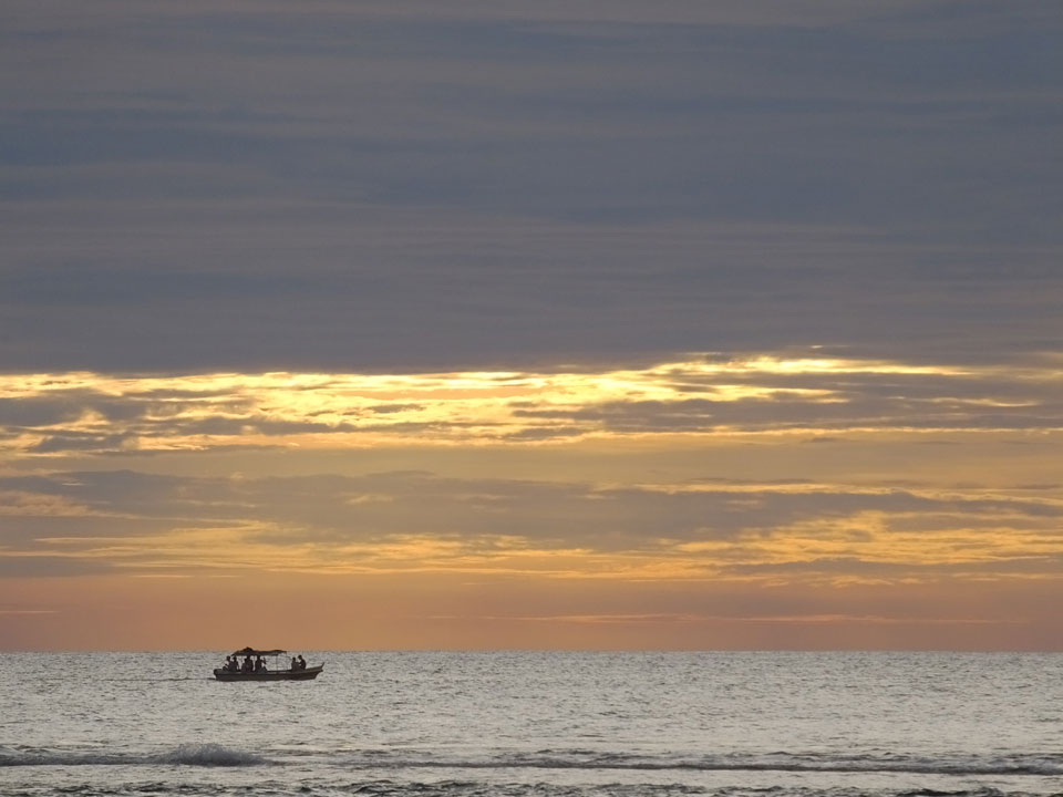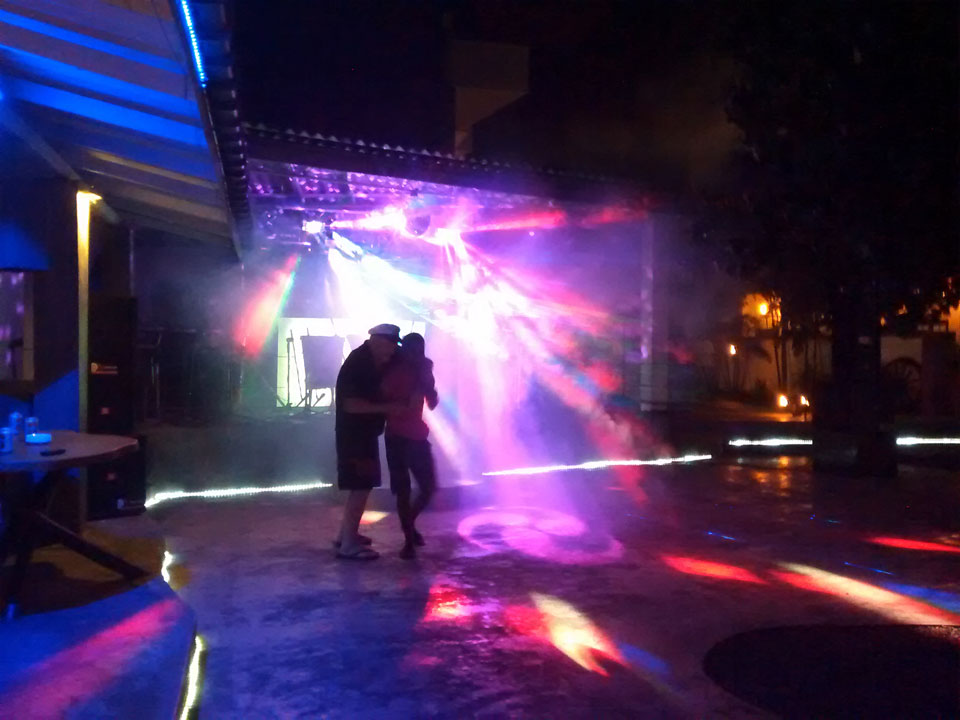 Der Sonnenuntergang war auch nett – ein netter Abschluss. Gutes Abendessen und schließlich mal etwas Nightlife. Mit dem Taxi fuhr ich zum „Vibrations“. Das ist eine Hotelanlage. Gegen 22:00 war da noch wenig los. Ich lag etwas auf Äner Liege und scheckte das Internet. Die Party startete schließlich gegen Mitternacht. Ein paar Bier gingen bei mir, wobei ich da zu vergeizt für echte Drinks war. Die Feuerschlucker kannten scheinbar keinen Schmerz. Einer hielt lange die Zunge brennend für mein Photo. Chili macht’s möglich… Russen hatten auch Spaß, einer drank zu viel und ein Pimp drehte auch die Runde. Interessantes Nachtleben, kurz und gut. Nette Trommler-Show.