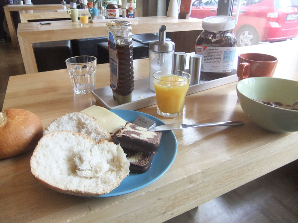 Auschecken und für €4,50 auch noch kurz vor 12 das Frühstücksbuffet. Das lohnte sich, dann schaffte ich meine Sachen in ’nen Spint im Kell und legte los.