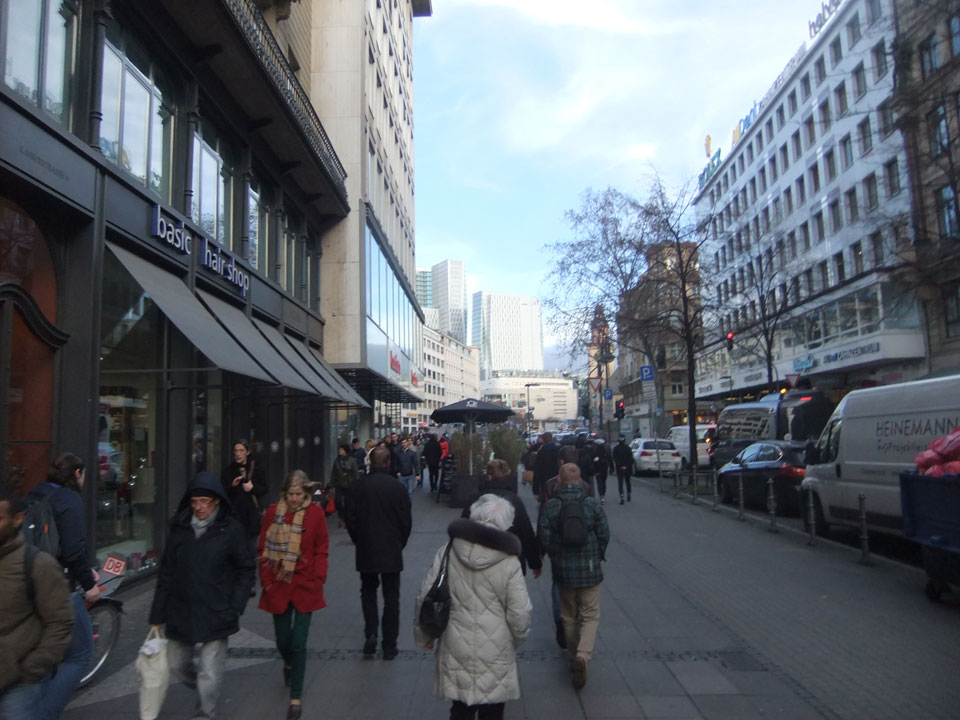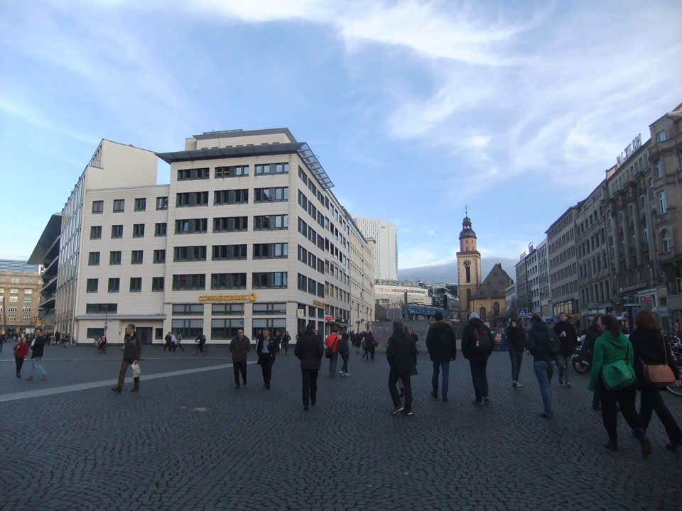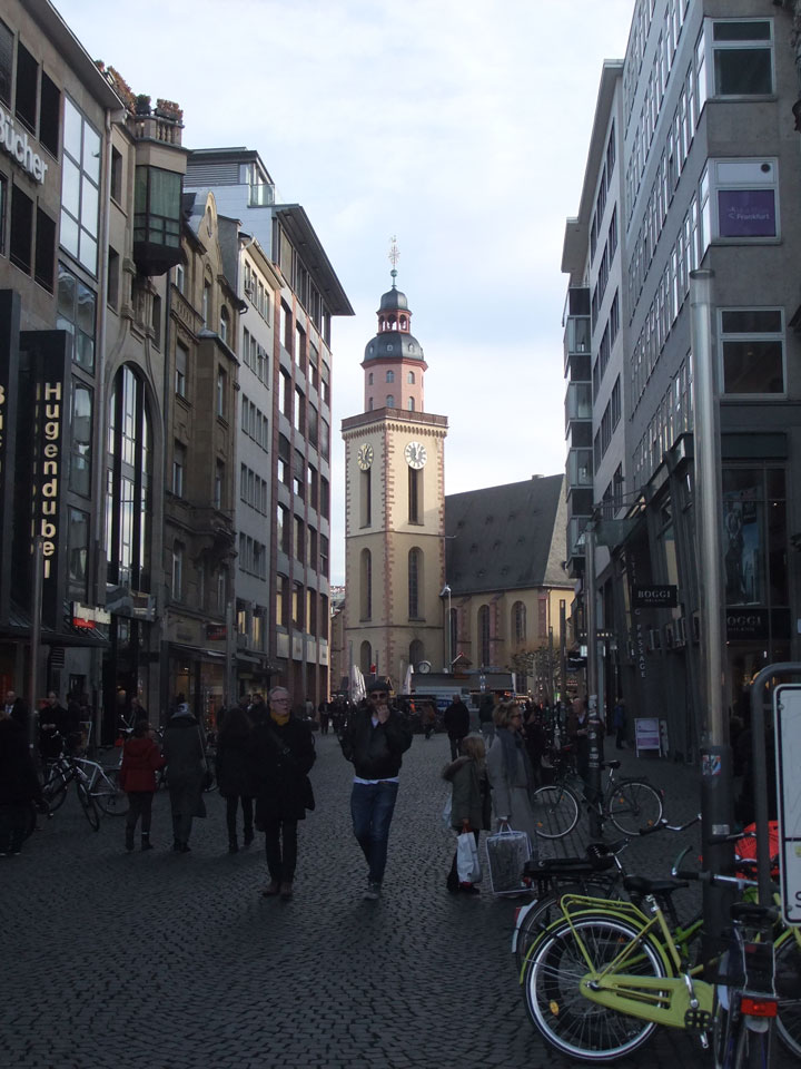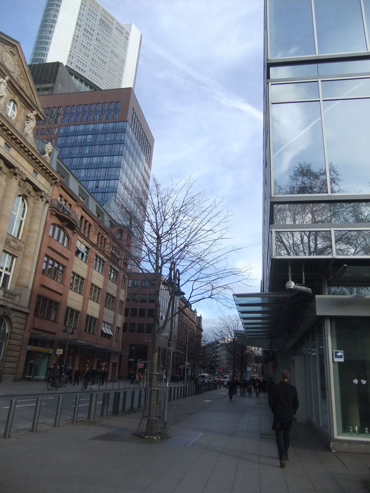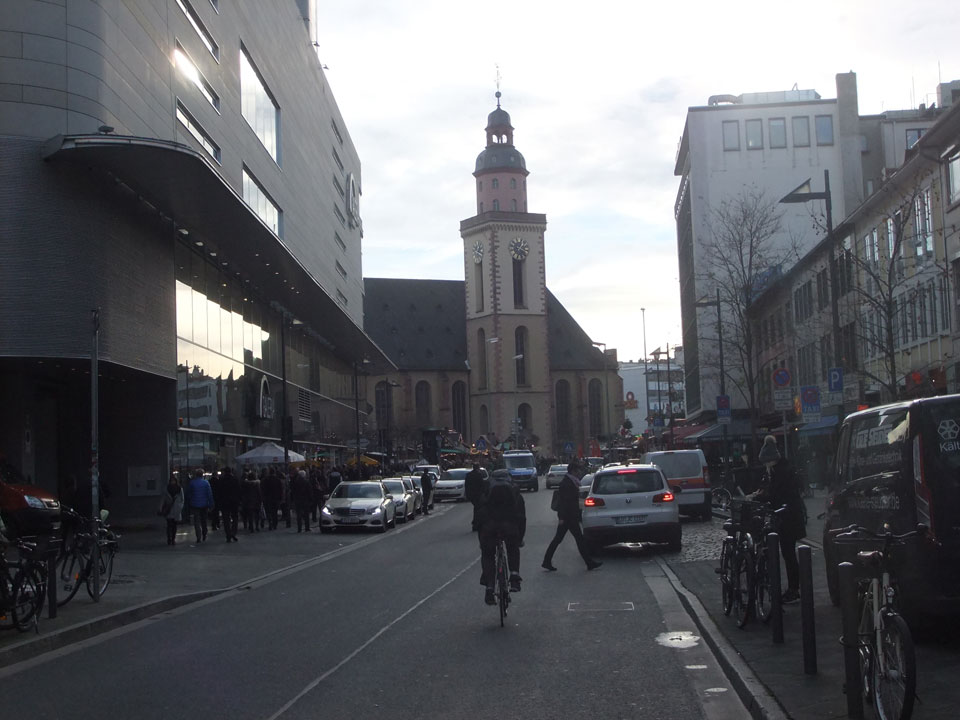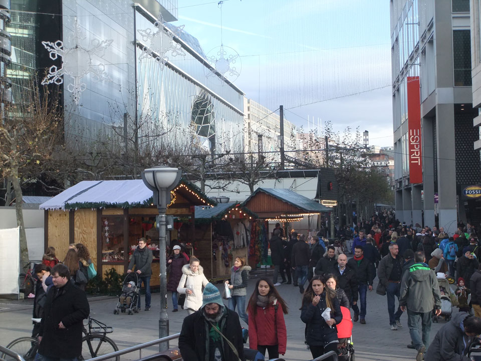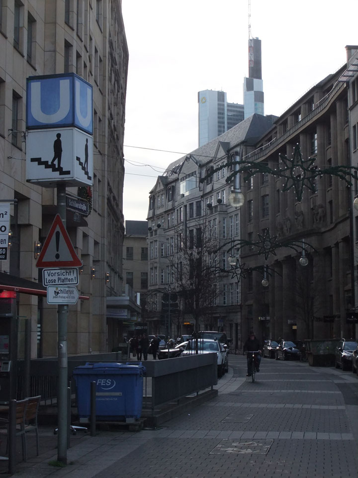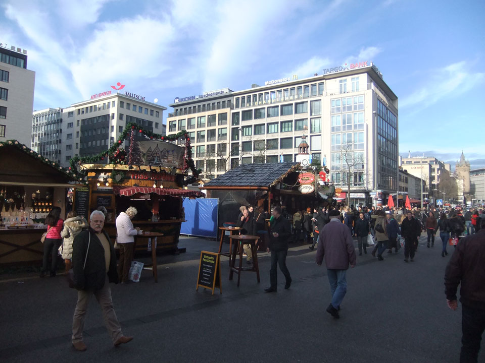 Bei Sonnenschein spazierte ich zum Römer und damit dem Frankfurter Weihnachtsmarkt. Überschaubar aber nett, einige Leute auf den Straßen. Nach eine Runde durch die Gegend holte ich mir eine Currywurst und ging wieder zurück. Frankfurt ist eine ganz nette Stadt. Bunt gemischt.