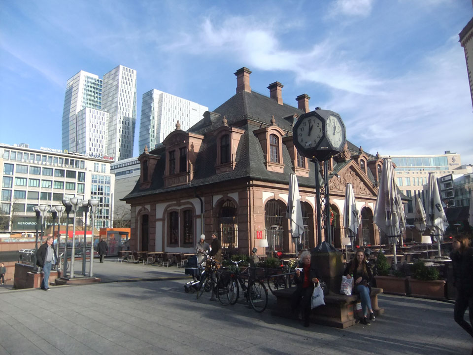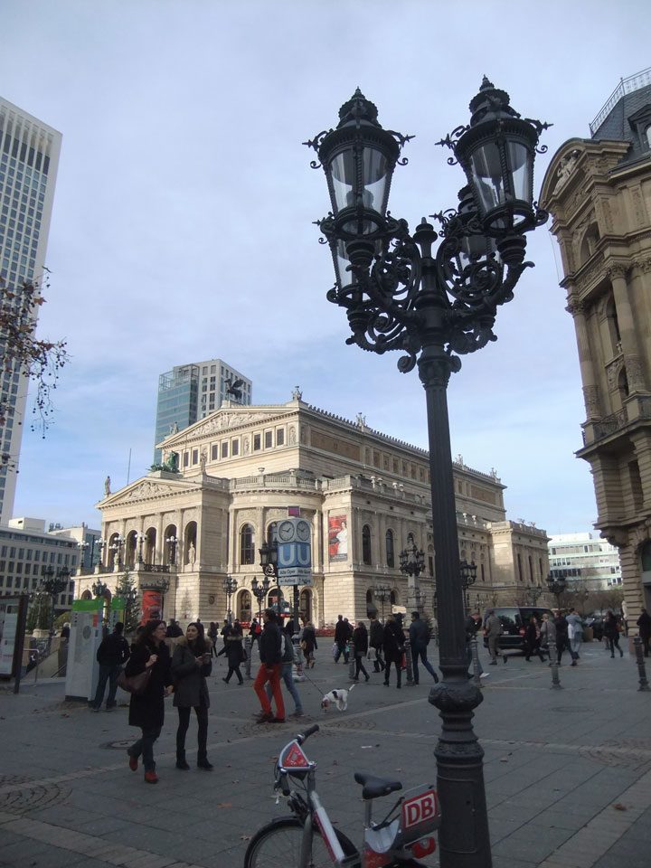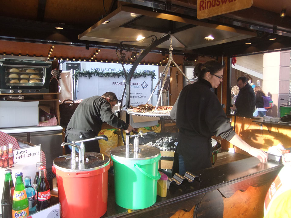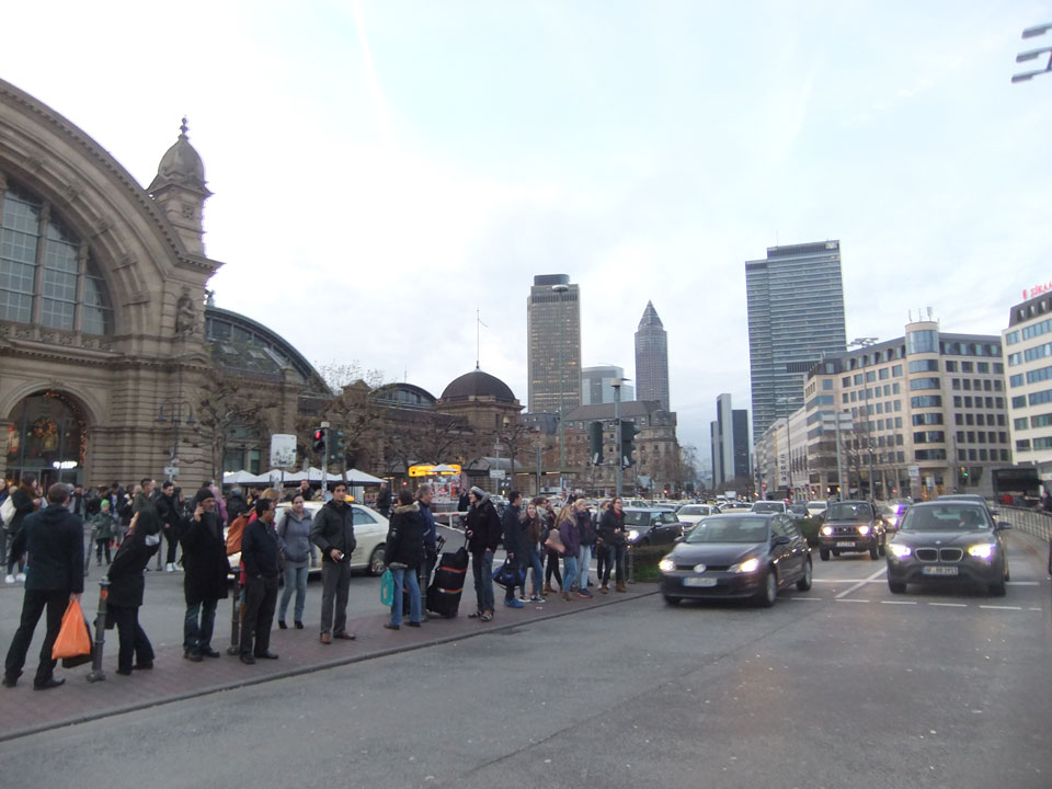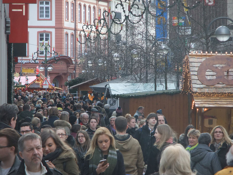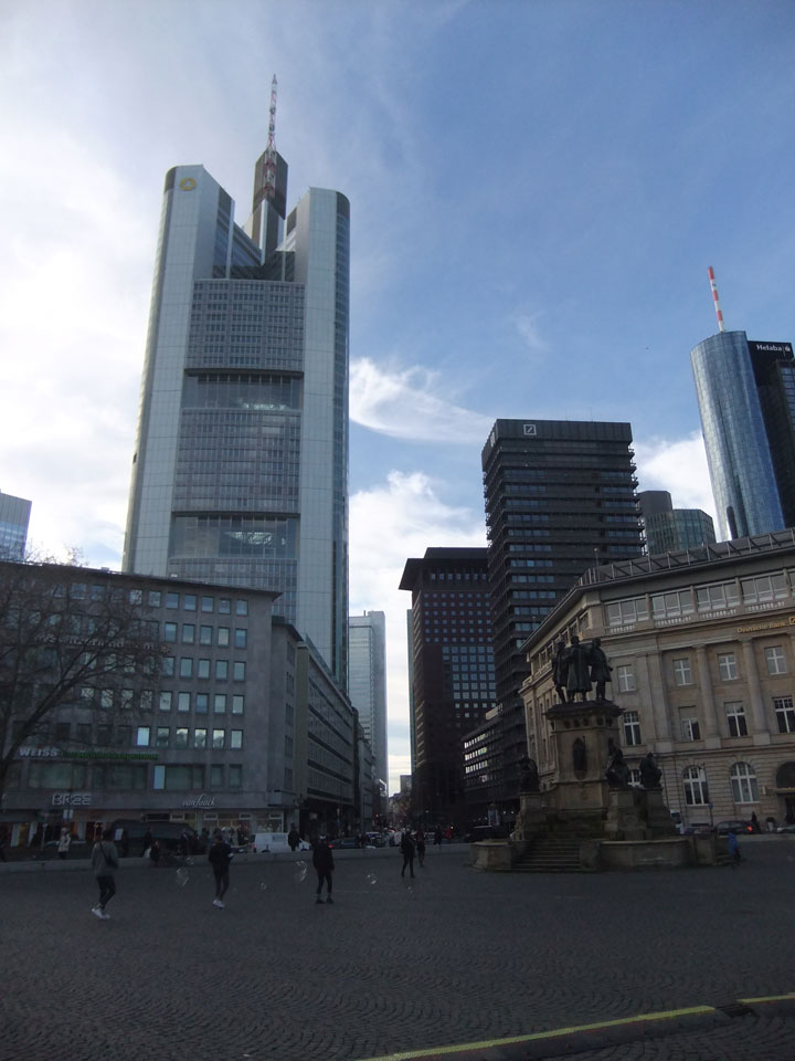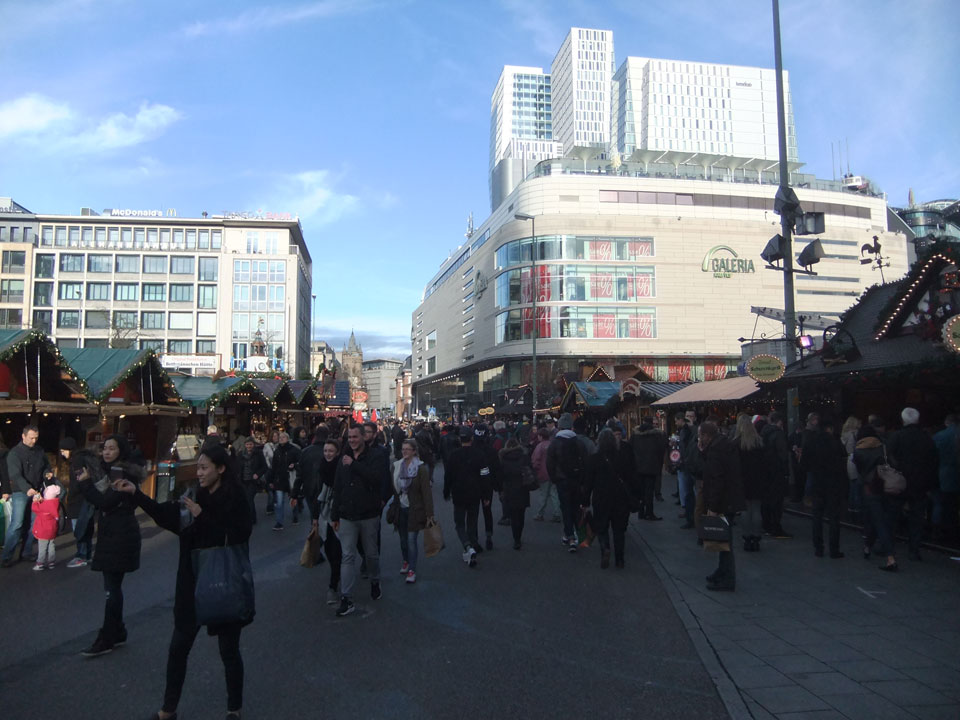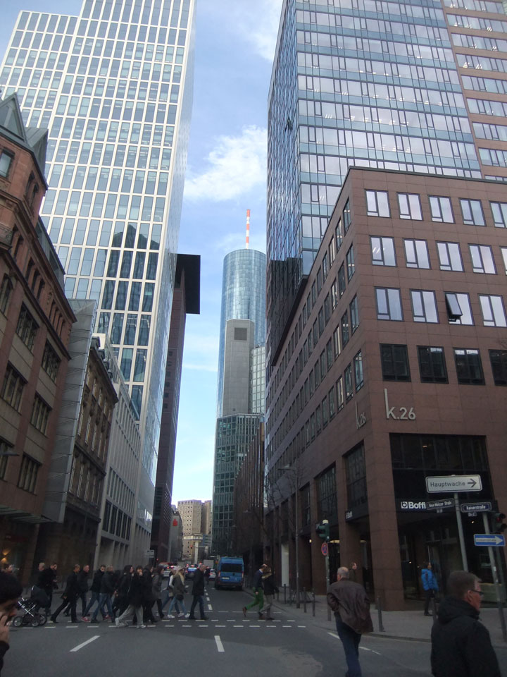 Bei Sonnenschein spazierte ich zum Römer und damit dem Frankfurter Weihnachtsmarkt. Überschaubar aber nett, einige Leute auf den Straßen. Nach eine Runde durch die Gegend holte ich mir eine Currywurst und ging wieder zurück. Frankfurt ist eine ganz nette Stadt. Bunt gemischt.