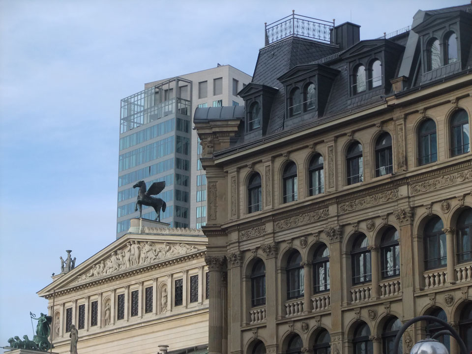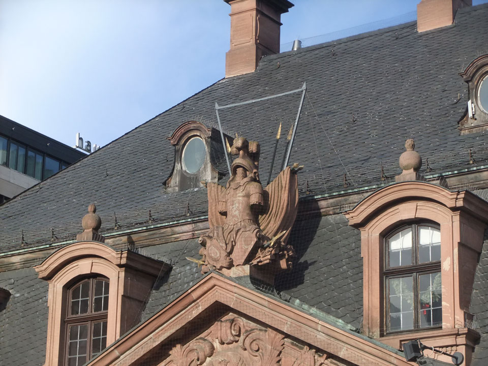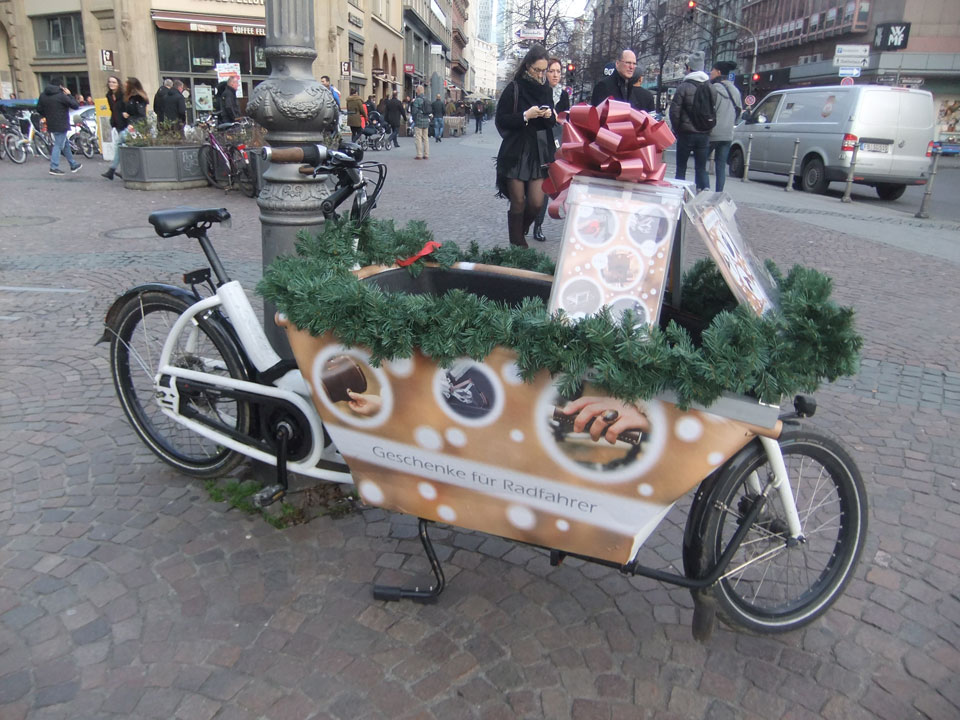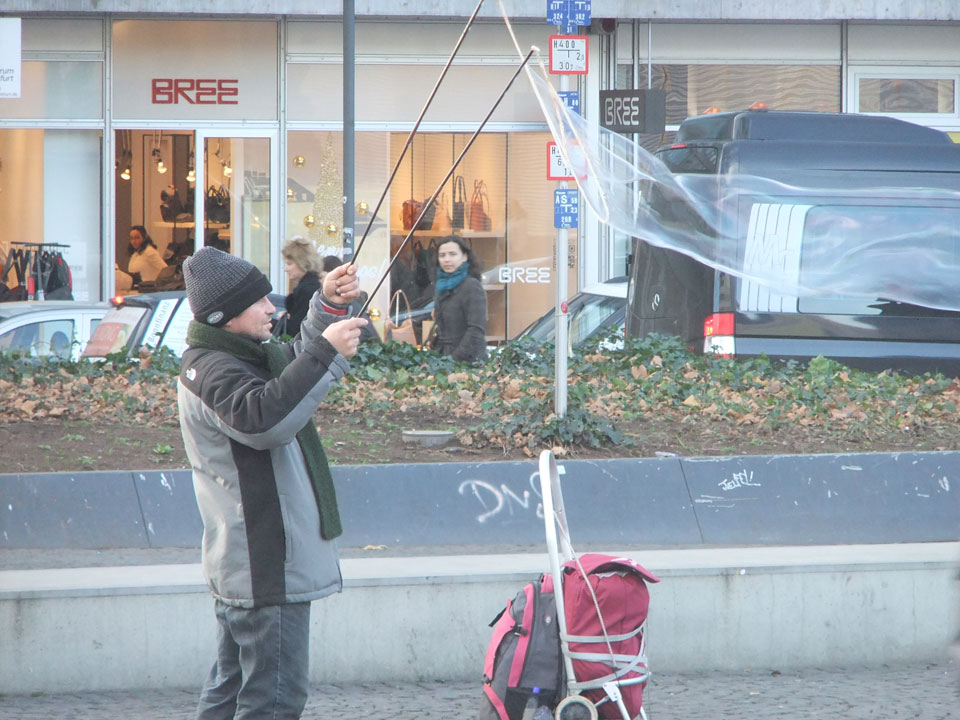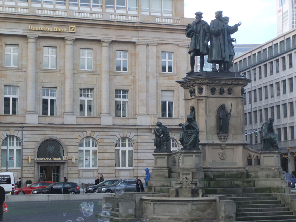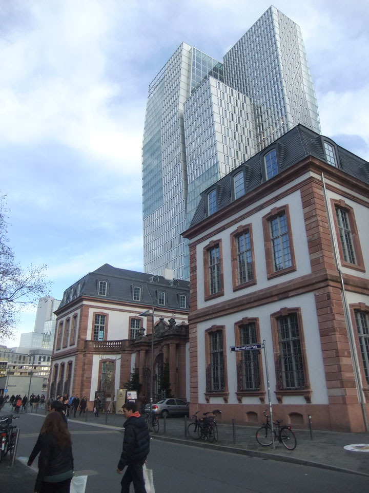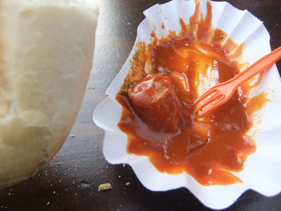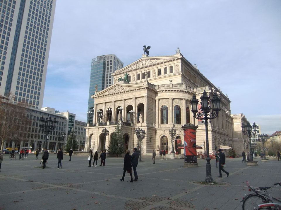 Bei Sonnenschein spazierte ich zum Römer und damit dem Frankfurter Weihnachtsmarkt. Überschaubar aber nett, einige Leute auf den Straßen. Nach eine Runde durch die Gegend holte ich mir eine Currywurst und ging wieder zurück. Frankfurt ist eine ganz nette Stadt. Bunt gemischt.