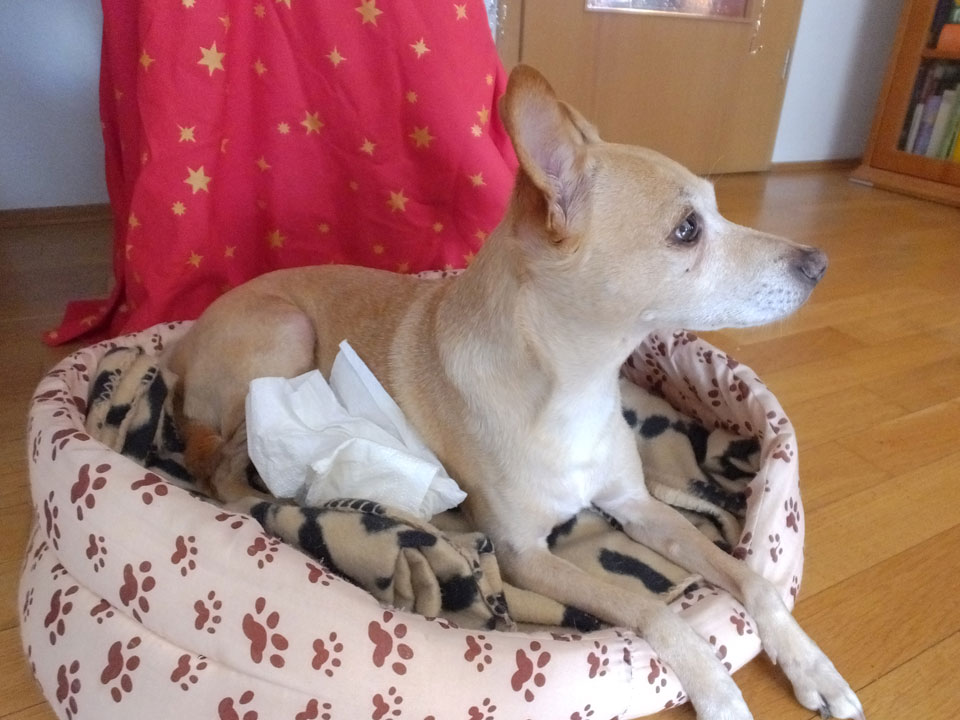 Der Hund tröpfelte heute etwas nach einem kleinen Problem, hüpfte aber trotzdem gut herum. Nachmittags ging’s zum Kaffee zur Tante. Dort war eine Katze.